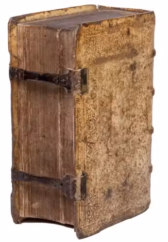 Contemporary or slightly later annotations in Latin on the front and back endpapers, a 17th-century owner's inscription on the title page. The boards are somewhat rubbed and soiled, affecting the clarity of the blind-tooling on the back board. The work is slightly browned throughout, the lower corners of leave 265 and 266 in part 1 are torn, without affecting the text, contemporary and later annotations in the margins of some of the leaves in both brown and red ink, both parts without the final blank leaf. Otherwise in good condition. BM STC German, p. 87; VD16 B 2637 (8 copies in German libraries); cf. Thieme/Becker I, pp. 410-413; not in Darlow & Moule; USTC.