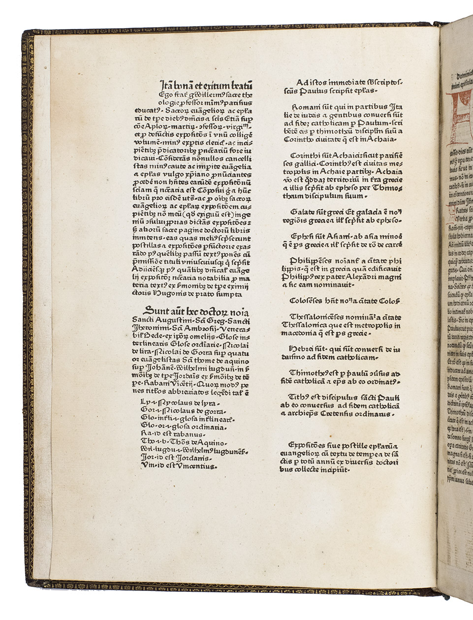 With several contemporary manuscript notes With some minor scratches, scuffs and scrapes on the boards and spine. Otherwise in very good condition and nearly untrimmed, with tranchefiles in most leaves and occasionally part of a deckle on the fore-edge. Bod-inc G326; Borm Incunabula Guelferbytana 1263; BSB-Ink H-151; Finger: Düsseldorf 501-504; Goff G662; Goff, "The Postilla of Guillermus Parisiensis", in: Gutenberg-Jahrbuch, 1959, pp. 73-77, item 23; GW 11981; Hain 8246; Hartig: Paderborn 309-310; IDL 2184; ISTC ig00662000; Langer, "Von der Mora und deren Jahrzahl in der Postilla des Guillermus Parisiensis", in: Gutenberg Jahrbuch, 1971, pp. 82-90, at p. 86; Pell 5635; Polain CBB Suppl 4406; Šimáková-Vrchotka 894; VK 532; Voulliéme 692; cf. BMC I, p. 196 (1482 Zell ed.).