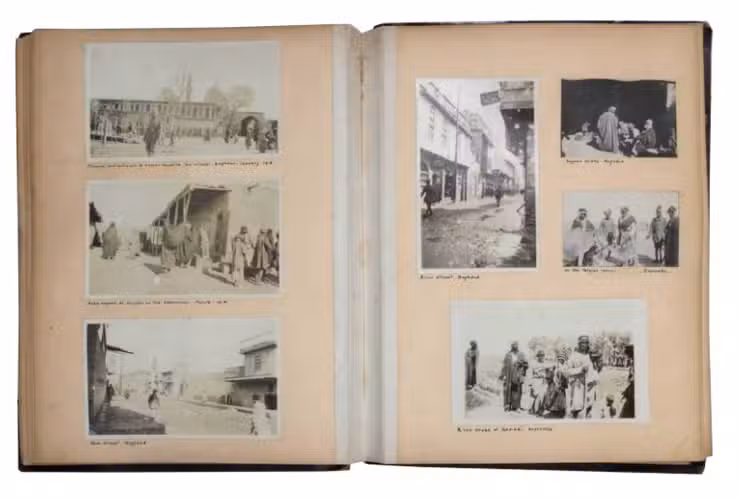 The first half of the photos show middle class life in Edwardian England. The second, and more interesting half of the photos are snap shots that appear to have been taken by a British officer and include military subjects, scenes of Baghdad and the Euphrates, and views of the Bosporus.