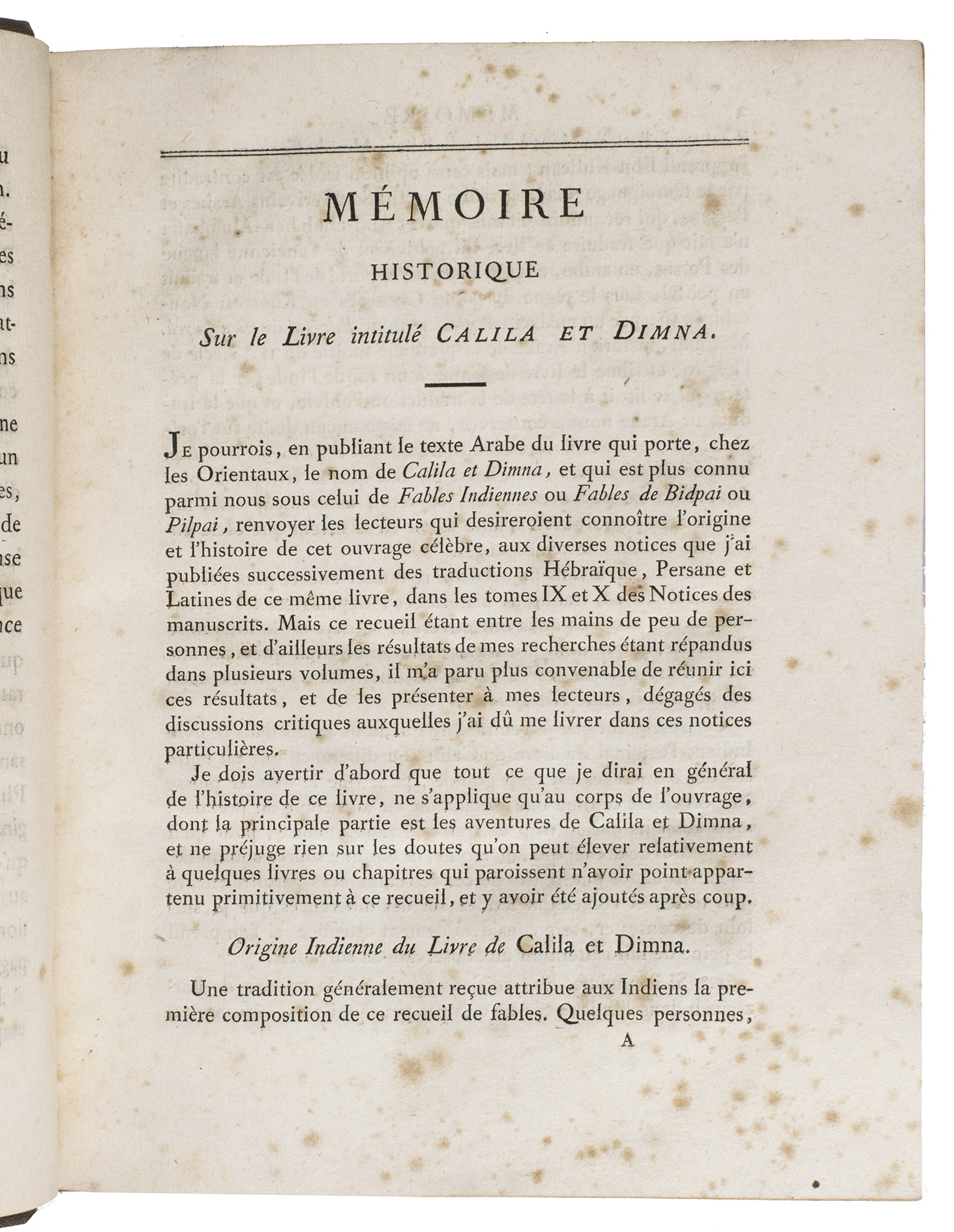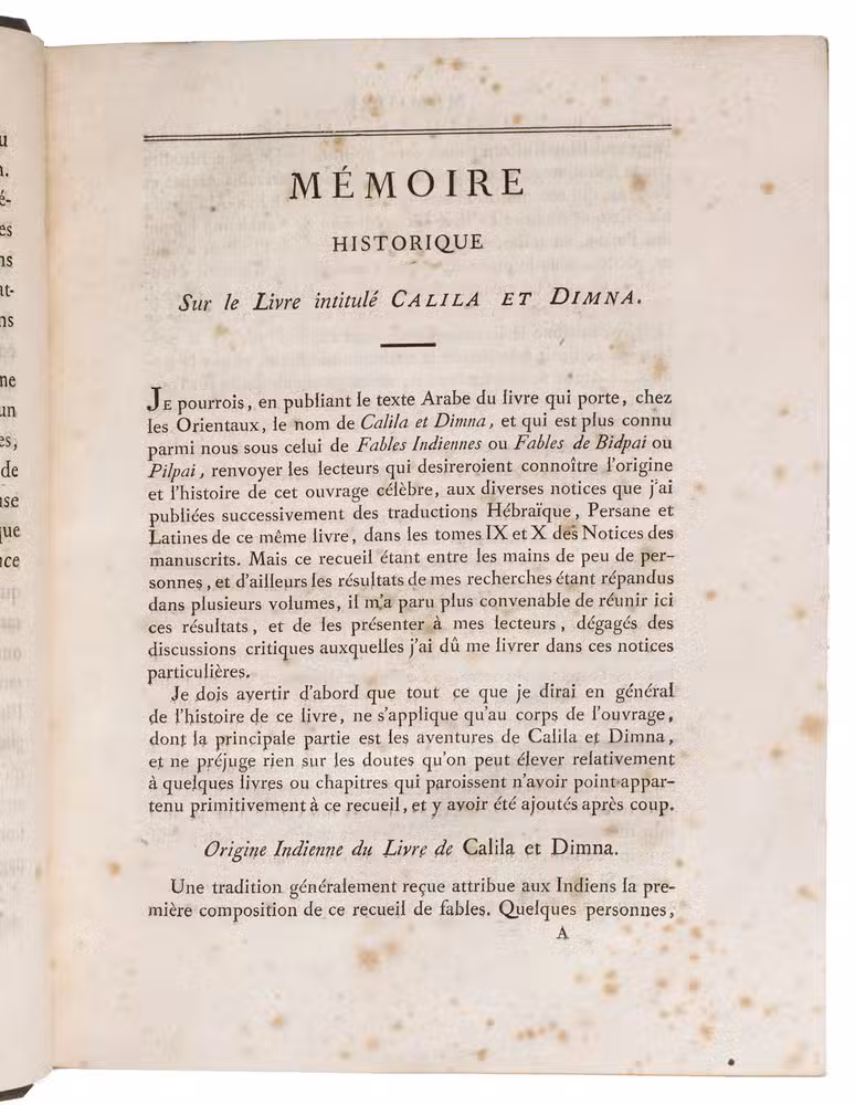 [KALILA WA DIMNA]. SILVESTRE DE SACY, Antoine Isaac (editor).