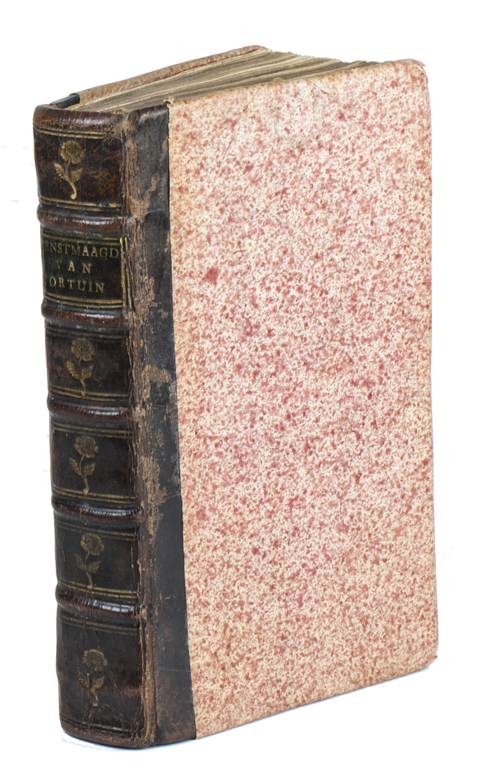 Amsterdam, Steven van Esveldt, 1754. 8vo. With engraved frontispiece. Contemporary mottled half calf, gold-tooled spine, later endpapers. [4], 360 pp