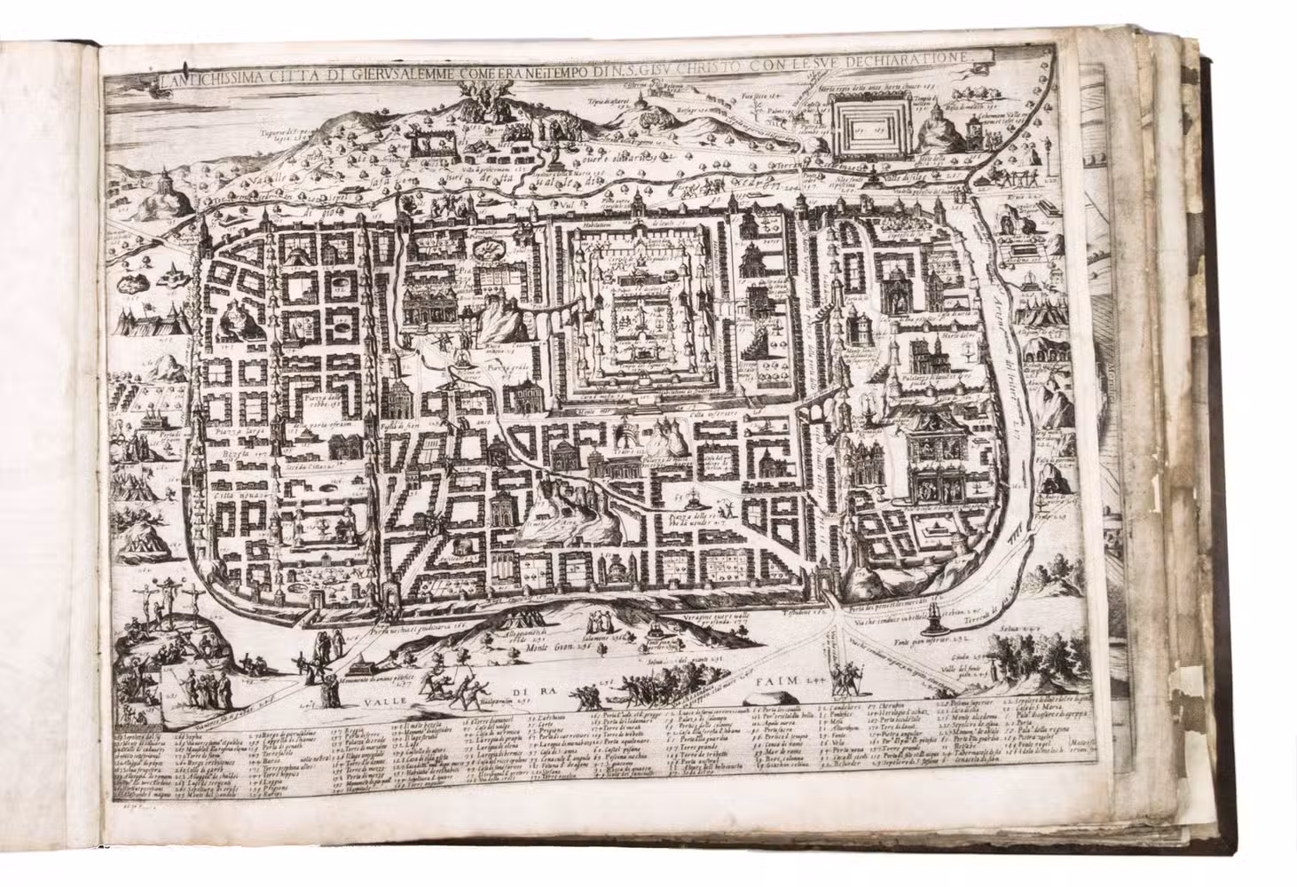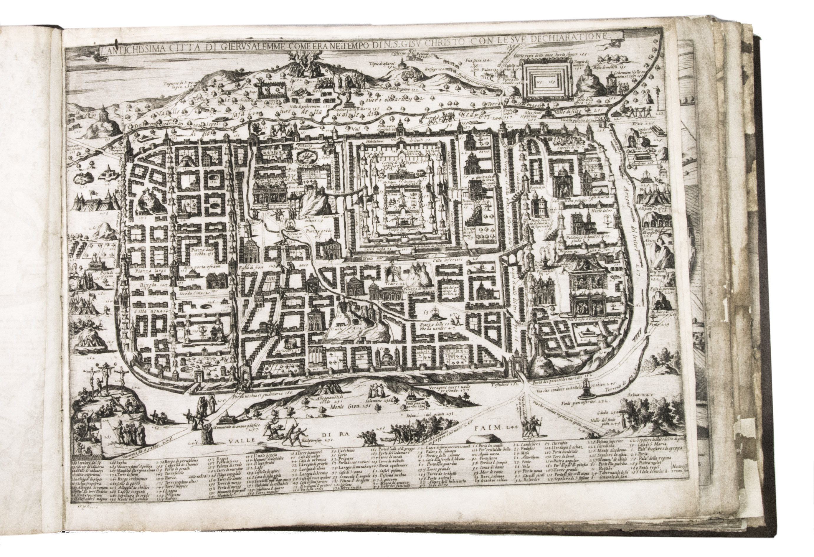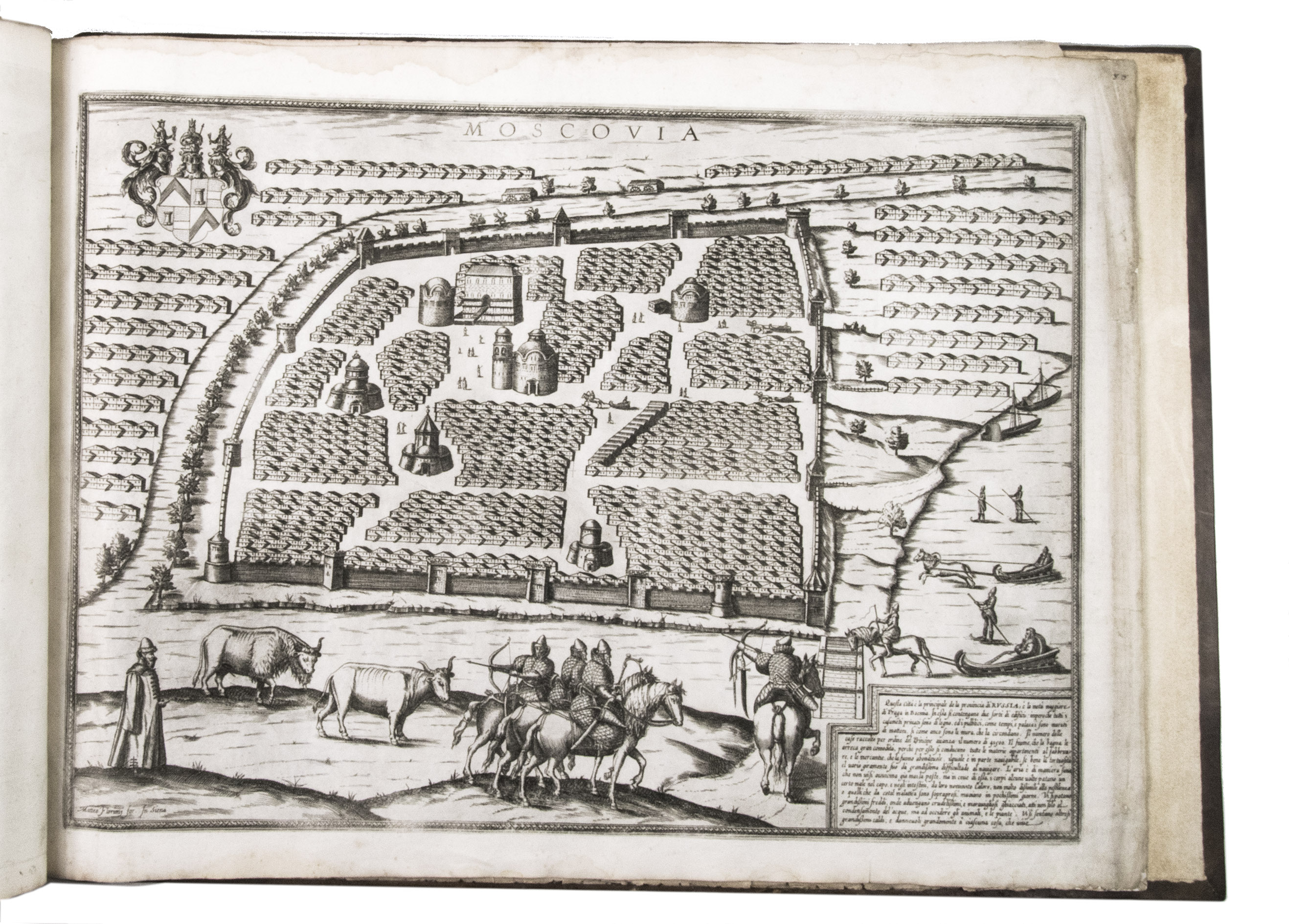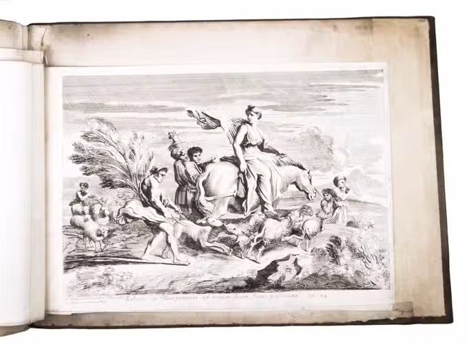 The album further contains 32 engraved city plans, mostly of Italian towns, although a few foreign cities are also included; one of the rarest is the view of Moscow, which is also included here. The collection ends with a (incomplete) series of 11 etchings of landscapes and biblical scenes.