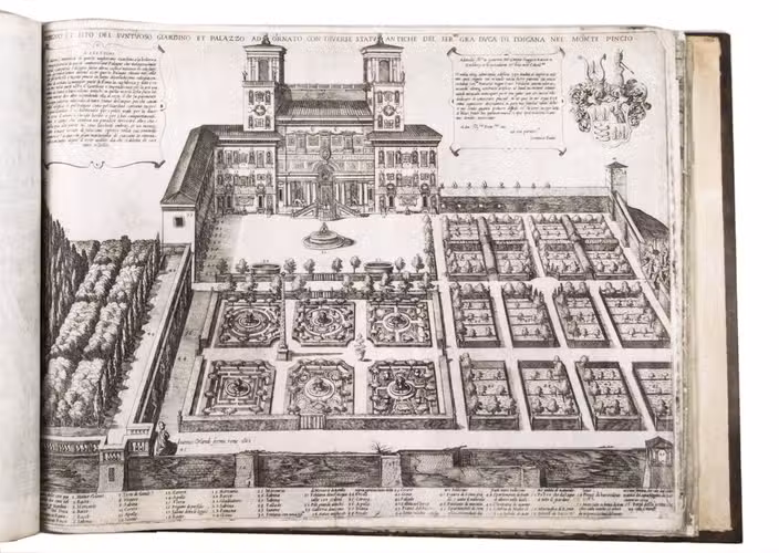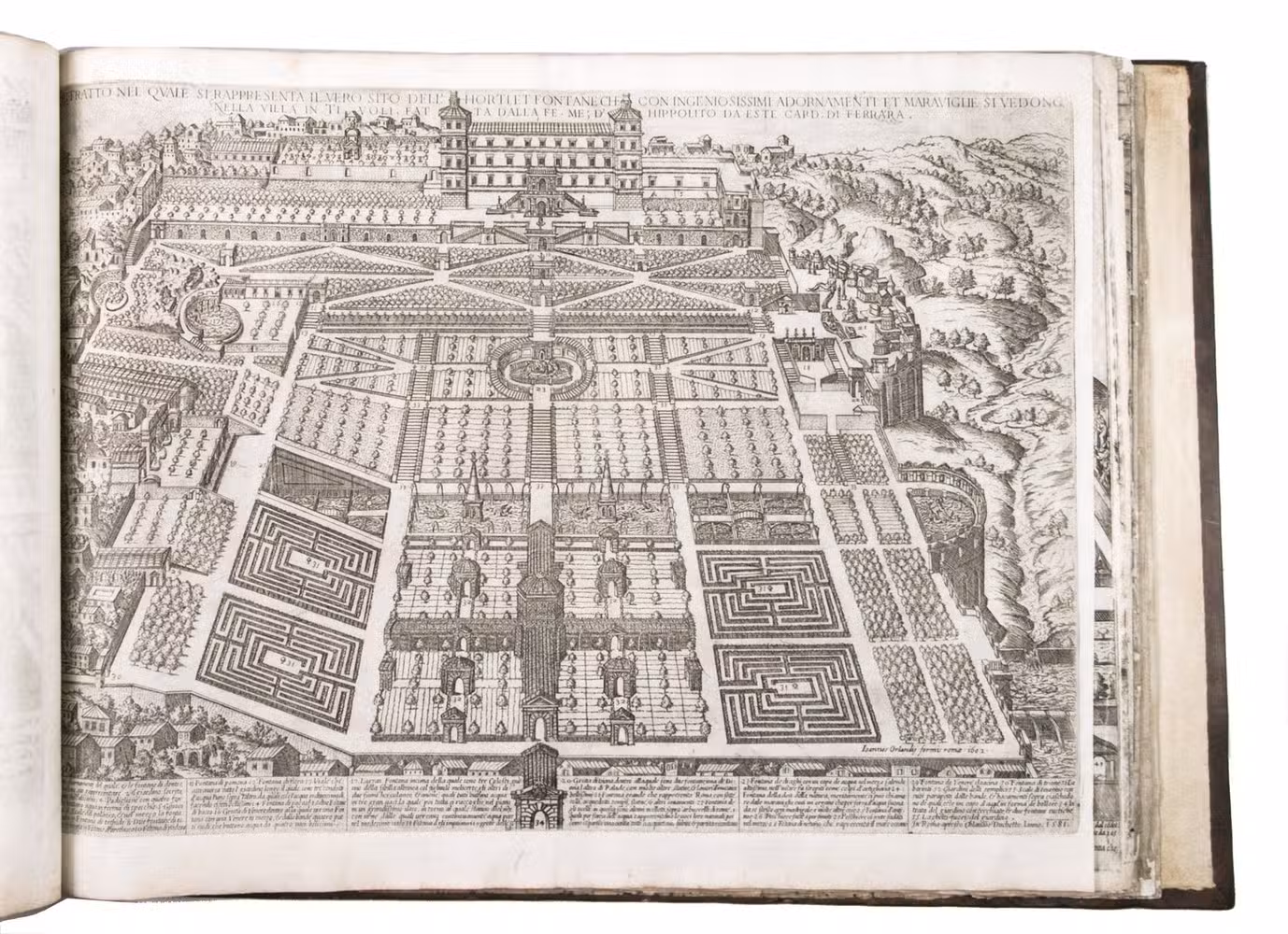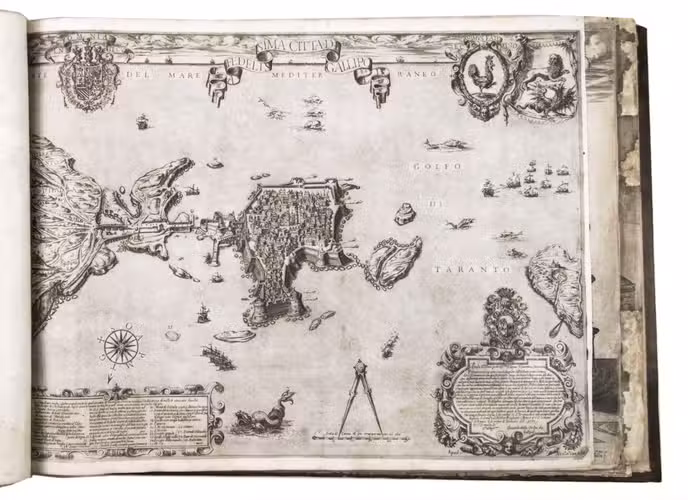 With the bookplate of Louis Routy de Charodon, seigneur de Grésigny and Charodon (1710-1794) on the front pastedown, and remnants of another bookplate above. The boards are somewhat scratched and stained, the spine shows traces of use, the edges of the boards have been professionally restored and the boards have been lengthened to fit the maps. The maps are slightly browned, some are slightly foxed, the first few maps have been mounted onto 17th-century leaves, the longer maps are somewhat soiled on the fore edge, three maps are restored at the fore edge and one at the bottom edge, some maps have been cut slightly short. Otherwise in good condition. Cf. Parshall, P., "Antonio Lafreri's "Speculum Romanae magnificentiae"", in: Print Quarterly, vol. 23 (1), 2006, pp. 3-28.