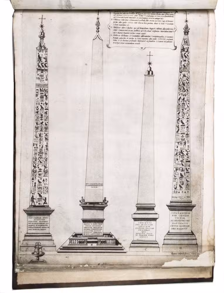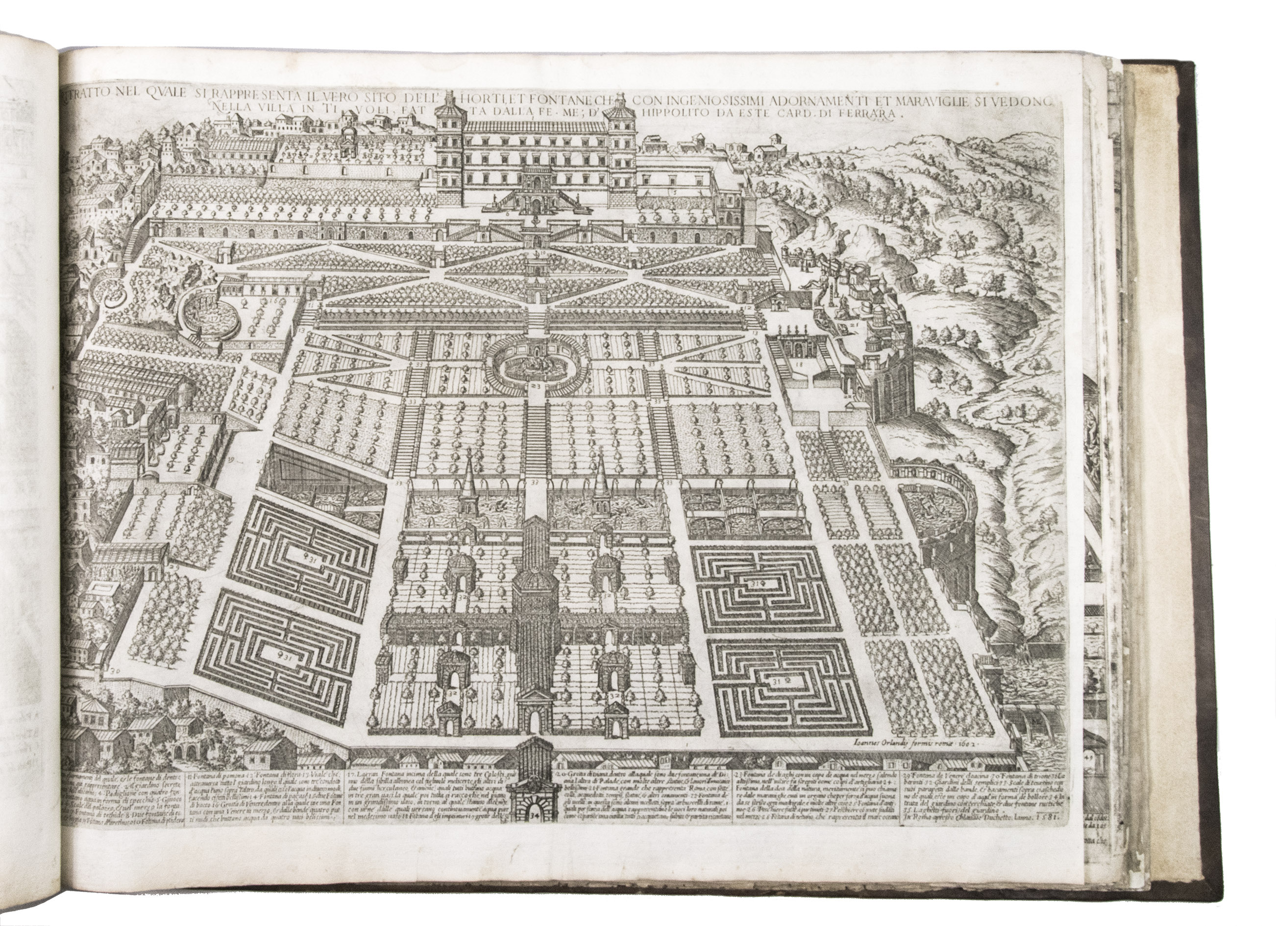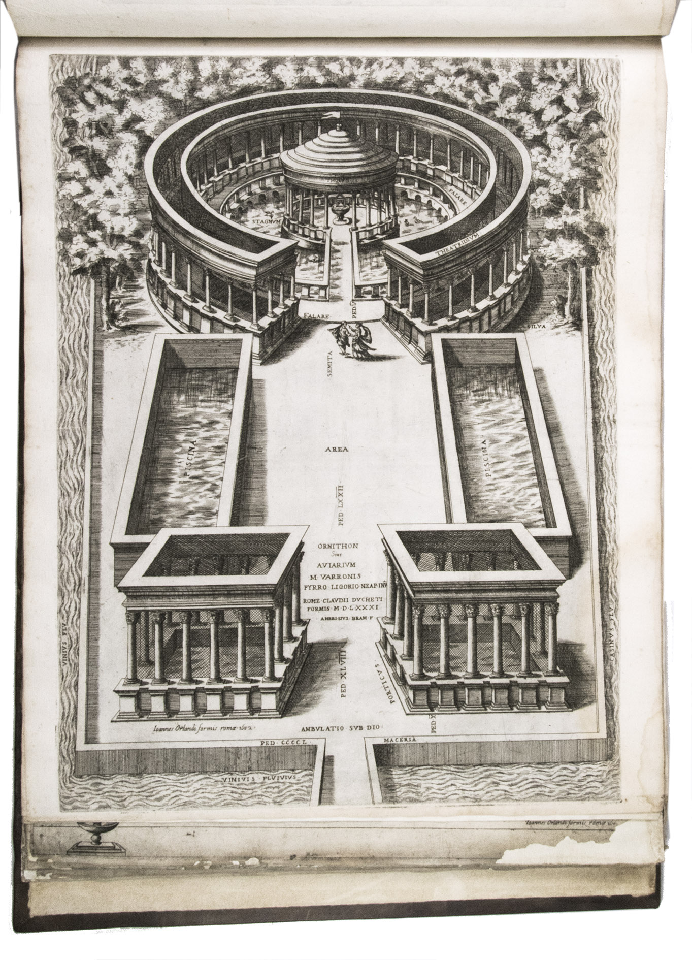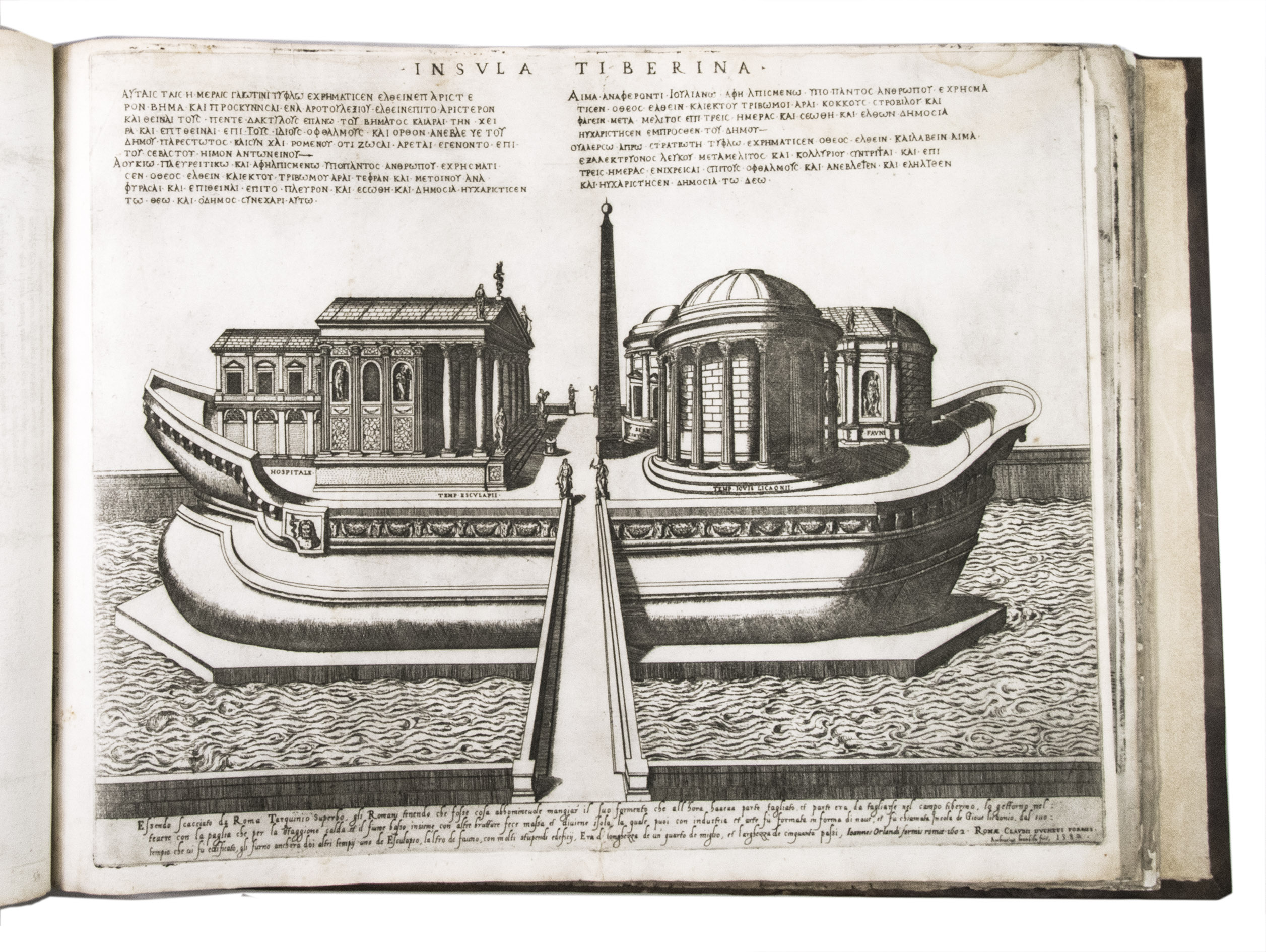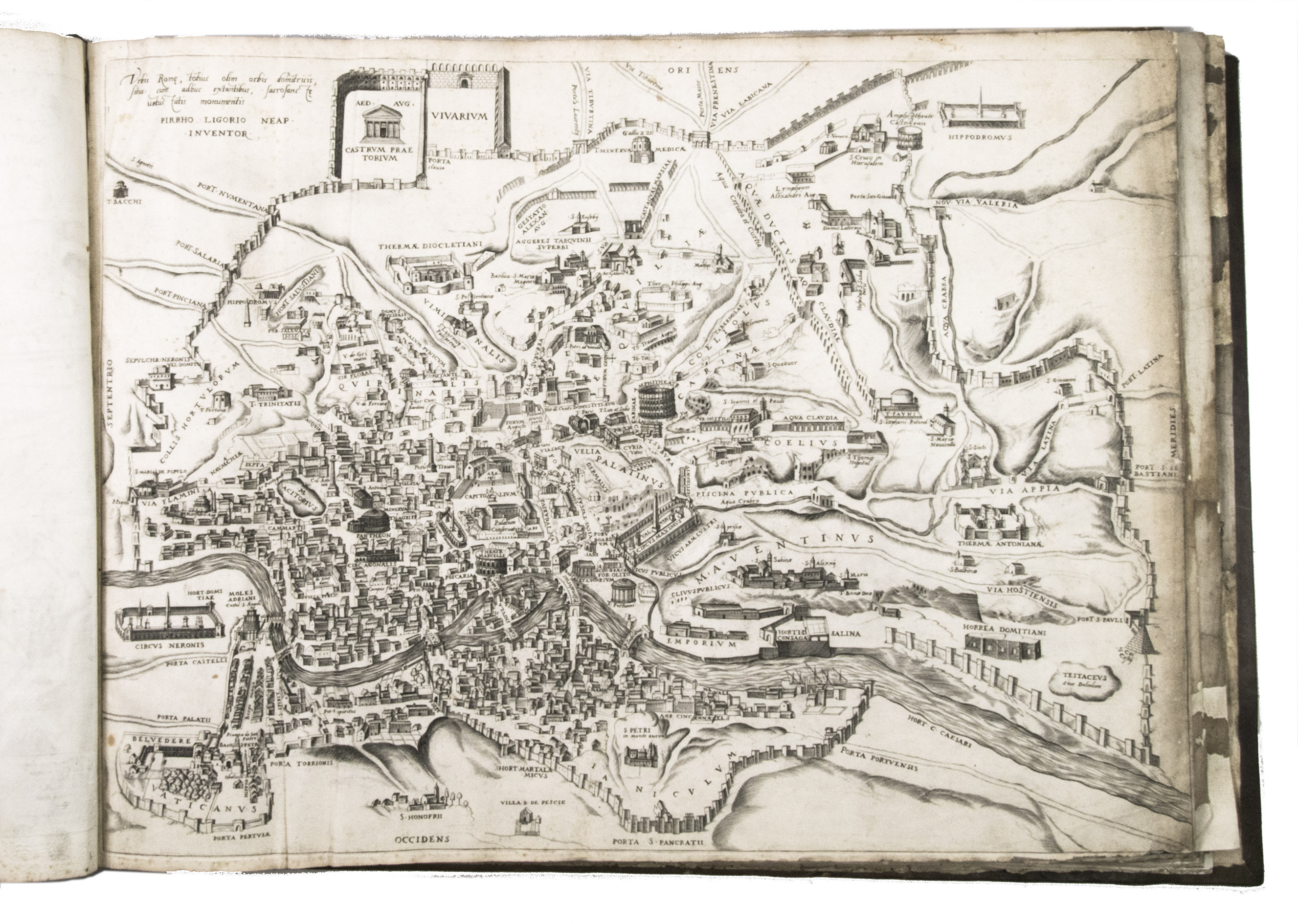 In the middle of the 16th century, Italy was the centre of map production and distribution in Europe. This industry primarily took place in Venice and Rome. The most notable of the publishers in Rome was Lafreri. His most important and most popular work is the Speculum Romanae magnificentiae, a collection of plans an views of Rome's monuments; no two copies of the Speculum are the same. The present collection contains more than thirty plates from the Speculum. When Lafreri died, his nephew Claudio Duchetti inherited the company. He continued to produce the Speculum plates, but often made small adjustments, and signed his own name at the bottom. Most of the Speculum plates in the present album are by Duchetti. After his death, the copperplates were sold to other publishers, such as Giovanni Orlandi (before 1590-after 1640), who reissued them. The majority of the plates in the present album were printed by Orlandi in 1602.