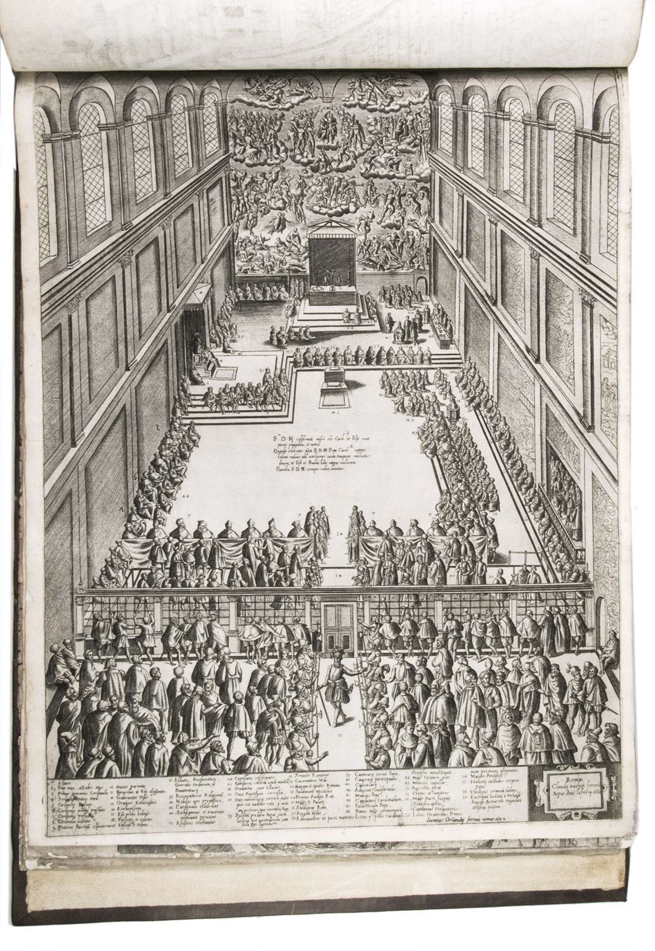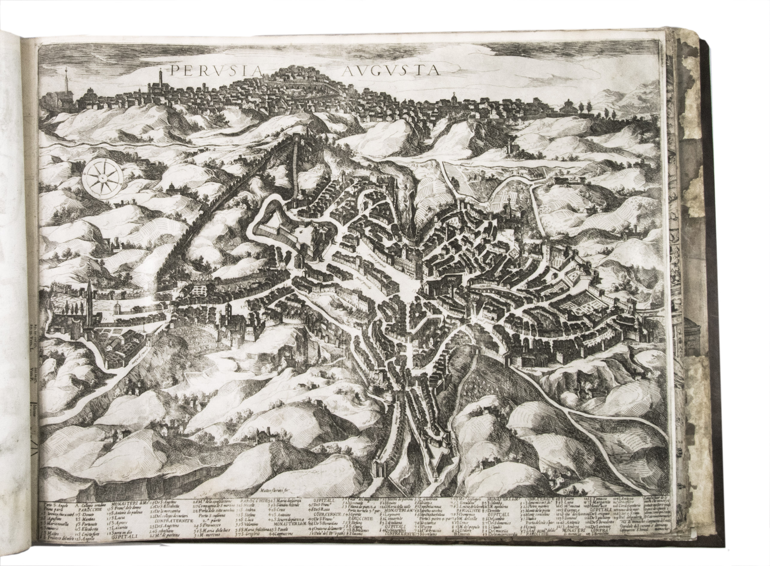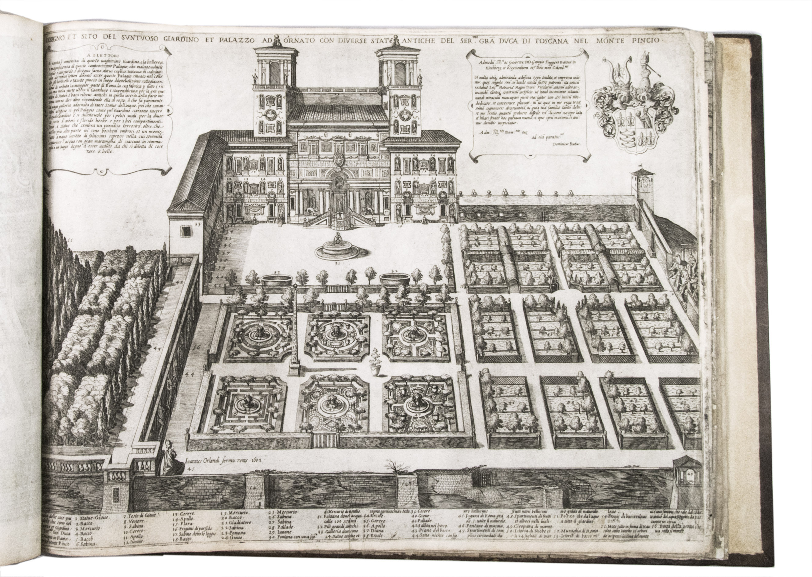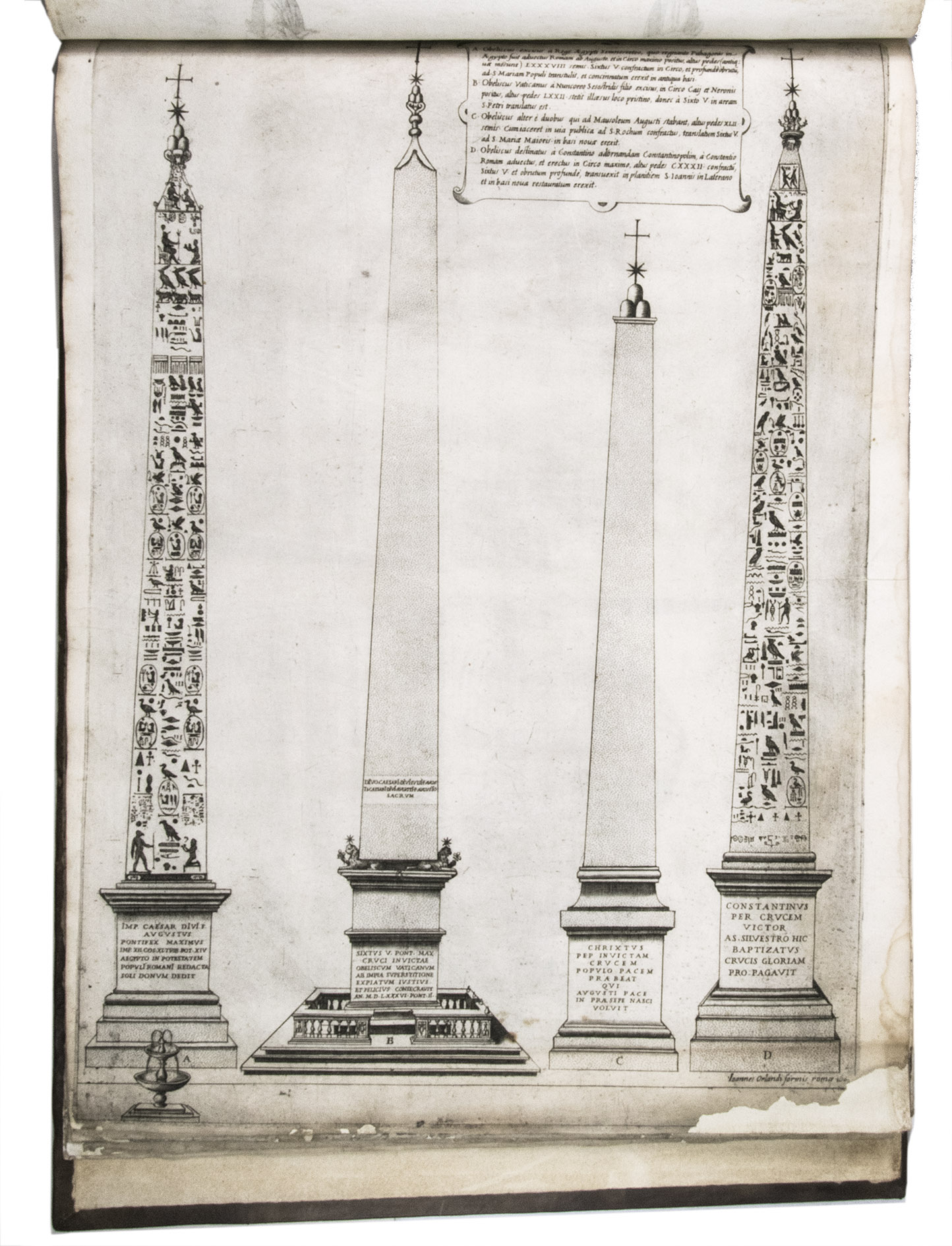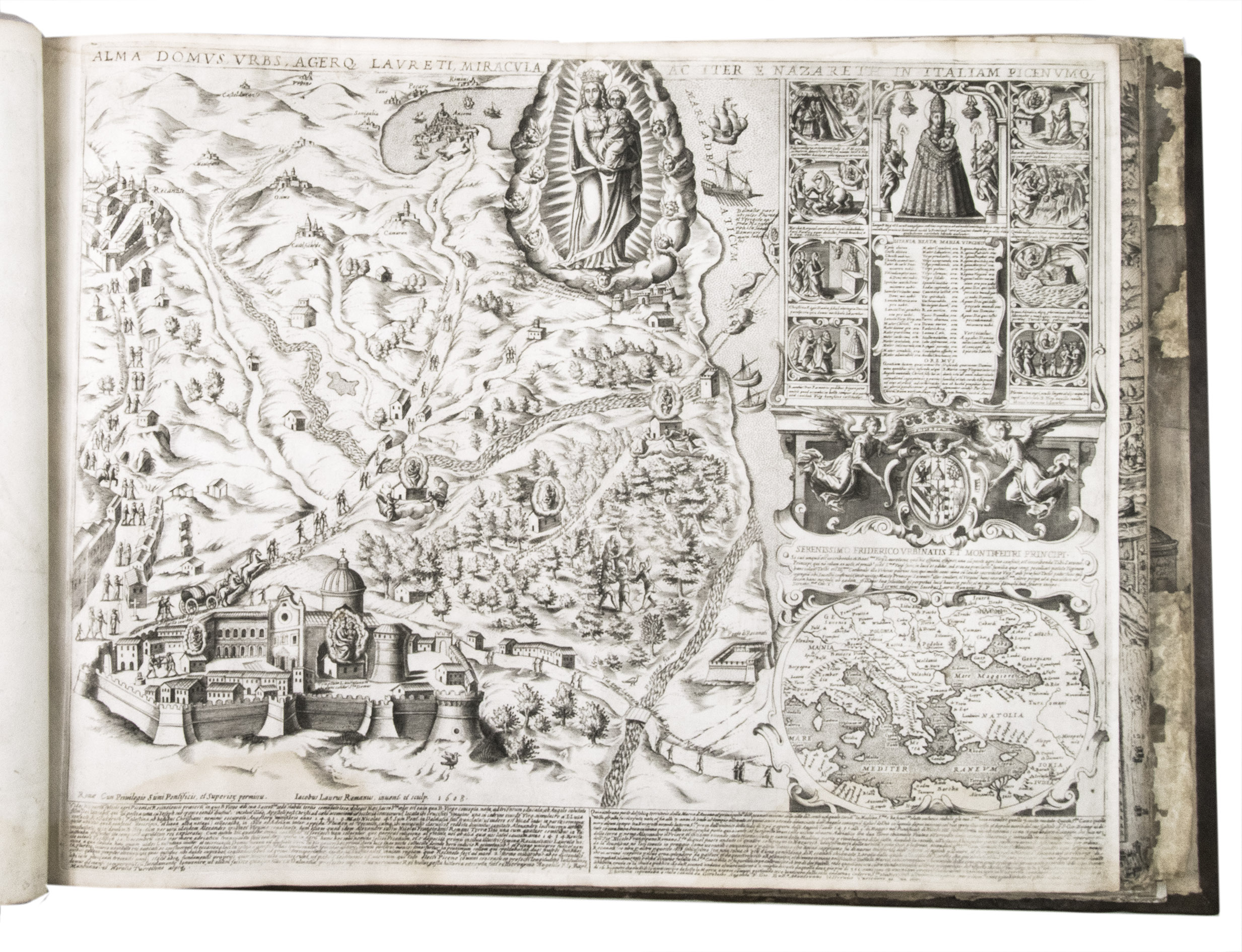 In the middle of the 16th century, Italy was the centre of map production and distribution in Europe. This industry primarily took place in Venice and Rome. The most notable of the publishers in Rome was Lafreri. His most important and most popular work is the Speculum Romanae magnificentiae, a collection of plans an views of Rome's monuments; no two copies of the Speculum are the same. The present collection contains more than thirty plates from the Speculum. When Lafreri died, his nephew Claudio Duchetti inherited the company. He continued to produce the Speculum plates, but often made small adjustments, and signed his own name at the bottom. Most of the Speculum plates in the present album are by Duchetti. After his death, the copperplates were sold to other publishers, such as Giovanni Orlandi (before 1590-after 1640), who reissued them. The majority of the plates in the present album were printed by Orlandi in 1602.