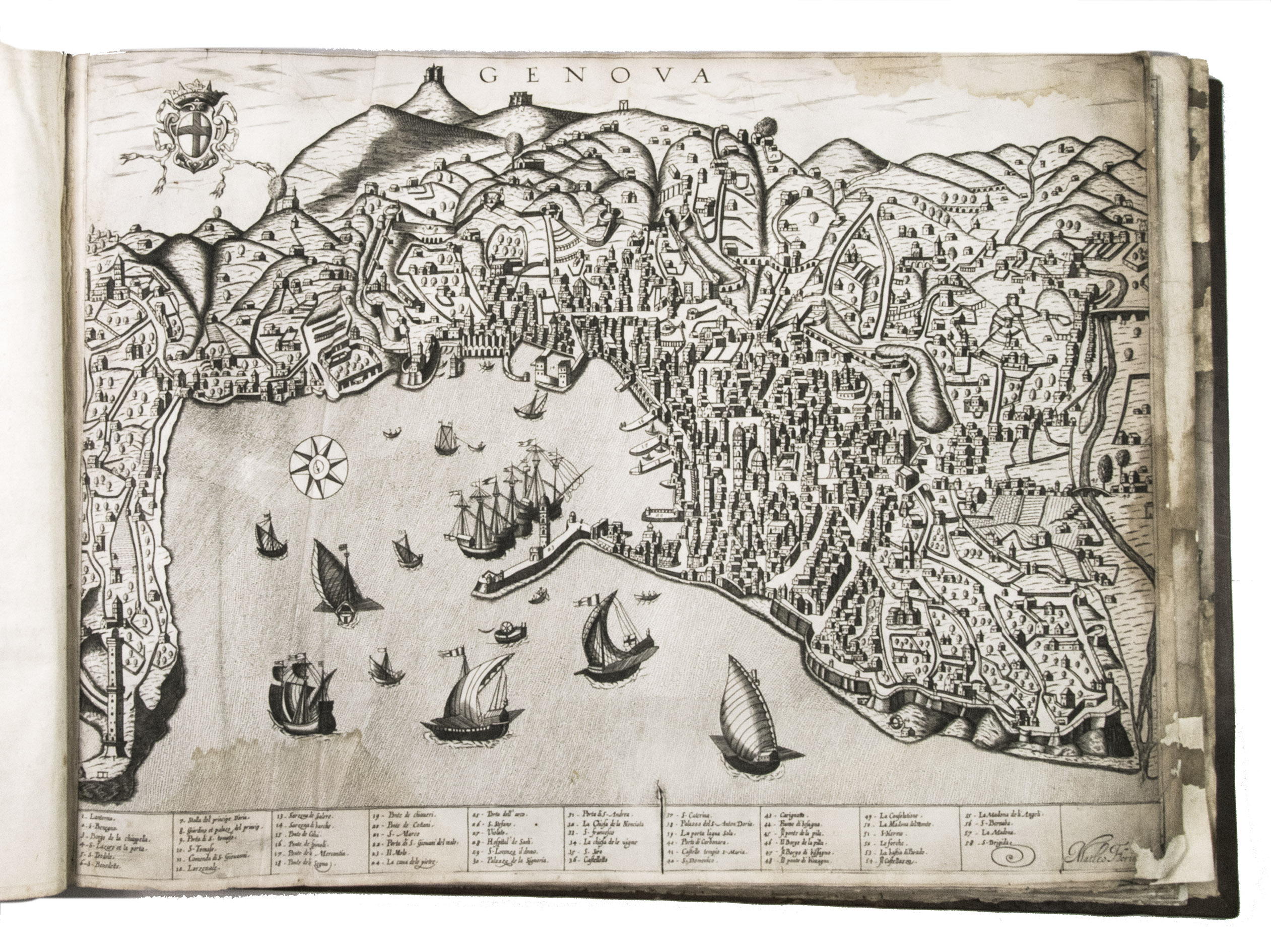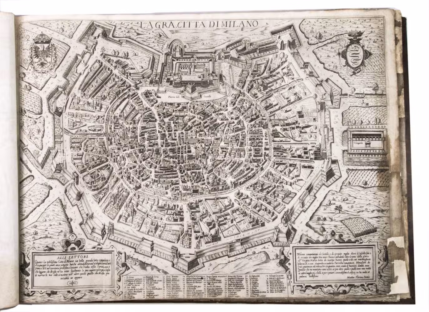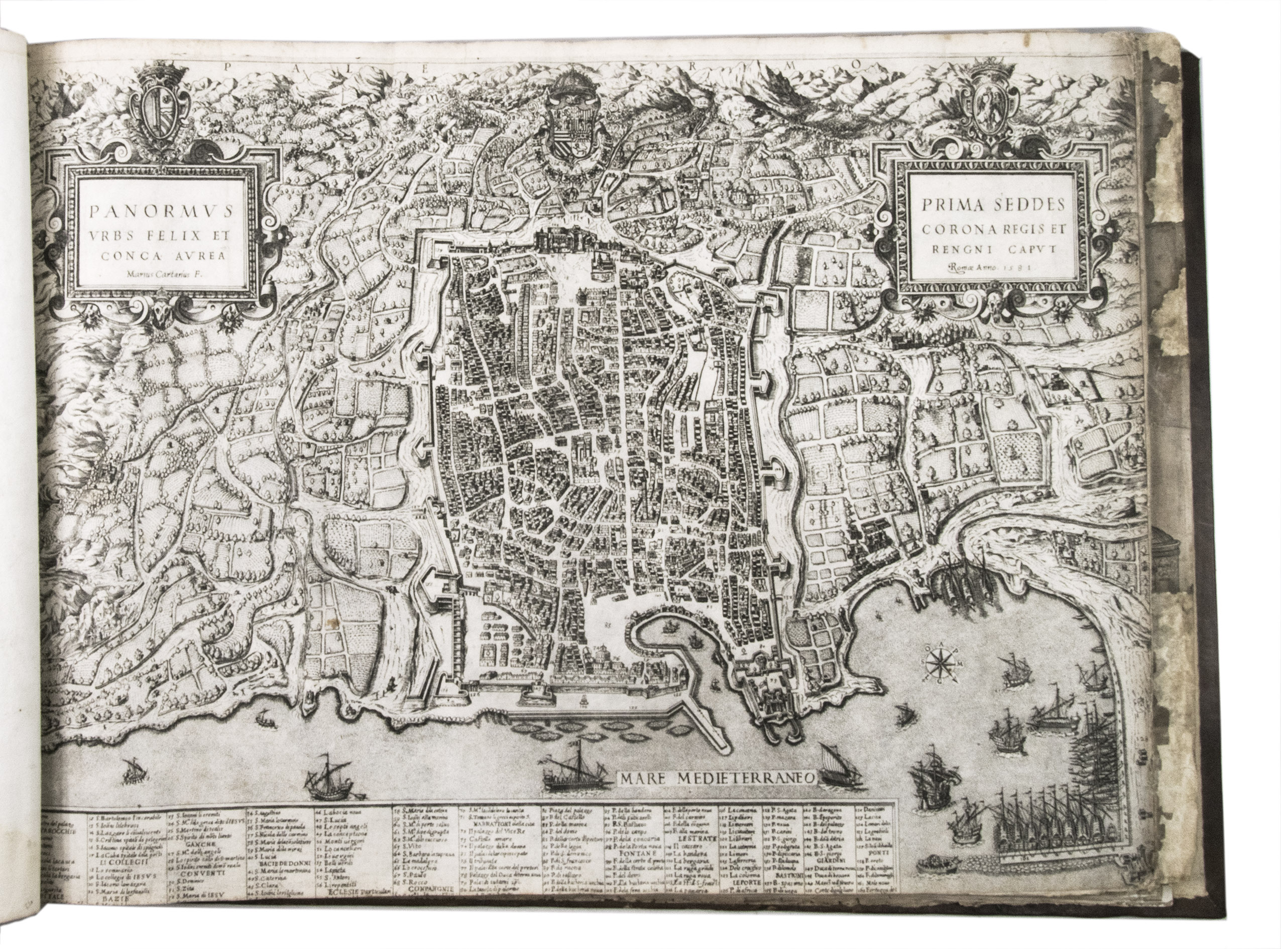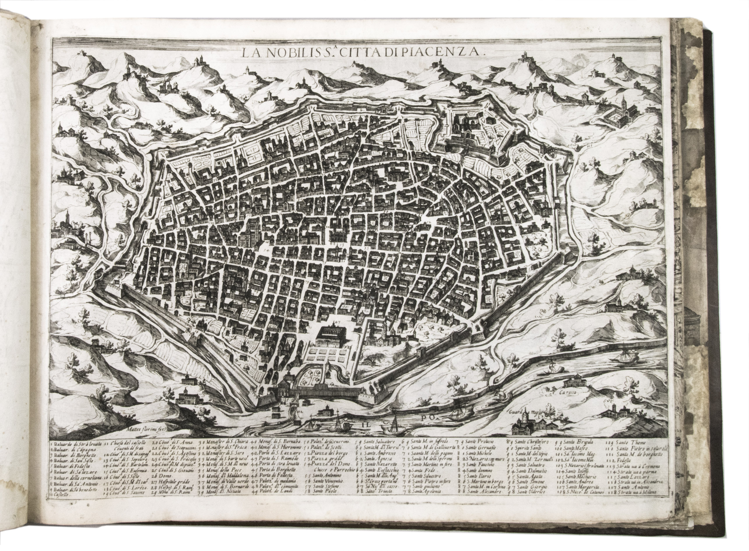 Remarkable album with 77 beautiful examples of 16th-century Italian cartography, all in very fine dark impressions. The collection includes plans of important Italian towns, such as Rome, Venice, Genoa, Naples, Milan, Florence, Palermo, Siena, Bologna, and Pisa, as well as detailed views of individual buildings and monuments in Rome. They are engraved by several cartographers from the school of Antonio Lafreri (1512-1577), primarily Claudio Duchetti (d. 1585), Matteo Florimi (d. 1613), and Lafreri himself. Florimi's works are among the rarest of the Lafreri school map makers, especially his Siena imprints, of which several have here been included.