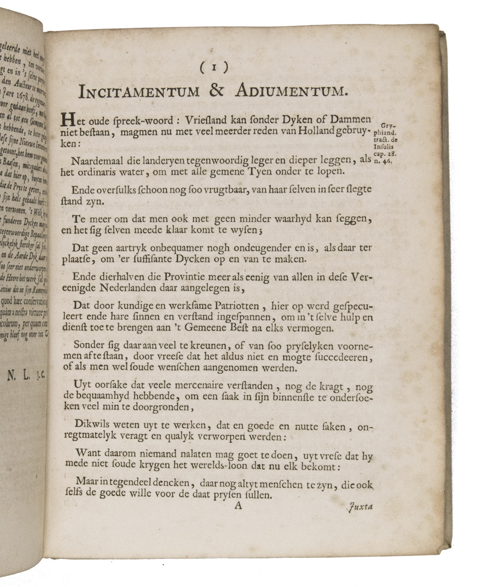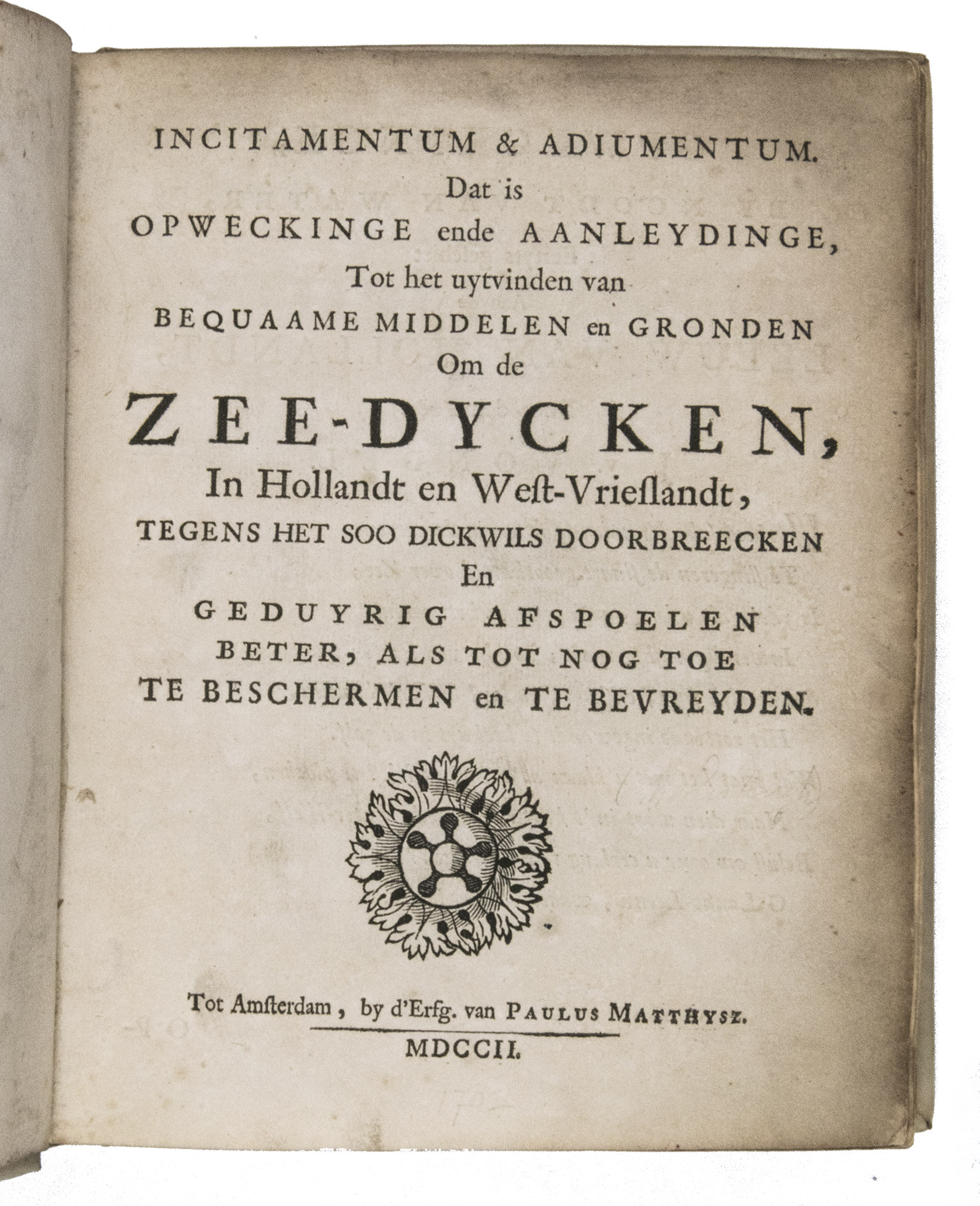 Incitamentum & adiumentum. Dat is Opweckinge ende aanleydinge, tot het uytvinden van bequaame middelen en gronden om de zee-dycken, in Hollandt en West-Vrieslandt, tegens het soo dickwils doorbreecken en geduyrig afspoelen beter, als tot nog toe te beschermen en te bevreyden.