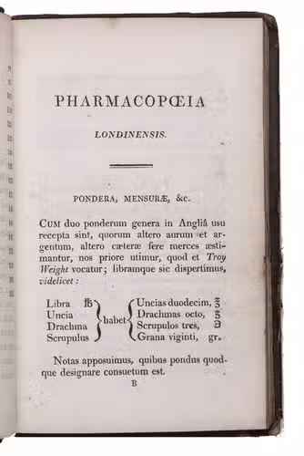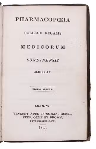 "Editio altera" of the seventh edition of the London pharmacopoeia. The sixth edition of 1788 had been the first edition influenced by enlightenment science, including the adoption of Linnaeus's system of binomial plant nomenclature. In the seventh edition of 1809, more recent insights were incorporated which had often appeared earlier in the Edinburgh and Dublin pharmacopoeias. The modern French chemical nomenclature, based on the work of Lavoisier, was finally incorporated and several other nomenclatures were reviewed and replaced. Nevertheless, the use of nomenclature and weights and the contents of recipes in the pharmacopoeia were heavily criticized. The most outspoken critique came from the London chemist Richard Phillips (1778-1851), who in an 1810 review citized 73 recipes and found 20 ambiguous measurements. Several of Philips's suggestions, as well as those of other commentators, were adopted for a revised edition which appeared in 1815 but nevertheless contained numerous errors. The 1815 edition was reprinted in 1816, 1817, 1818, 1821 and 1823.