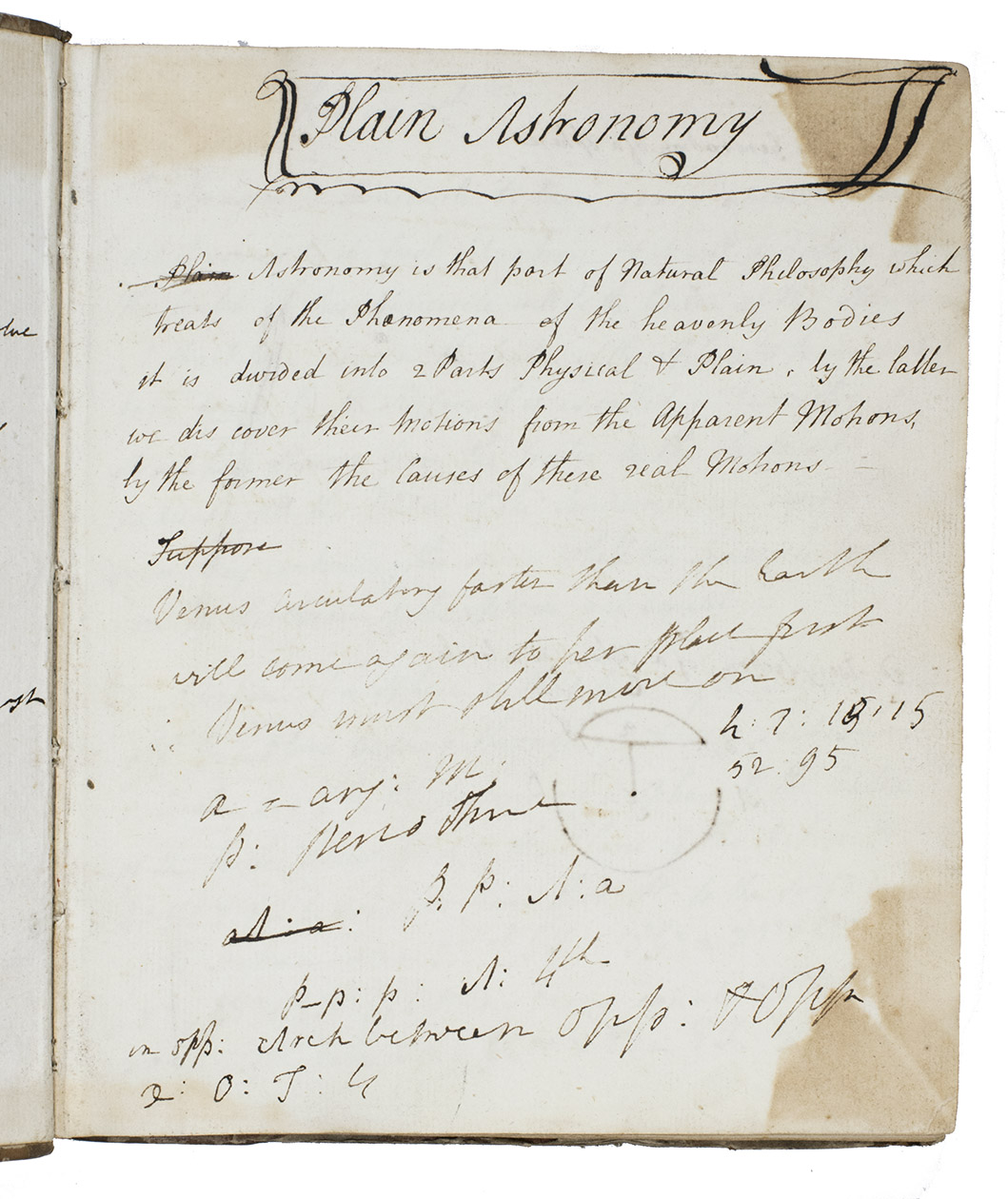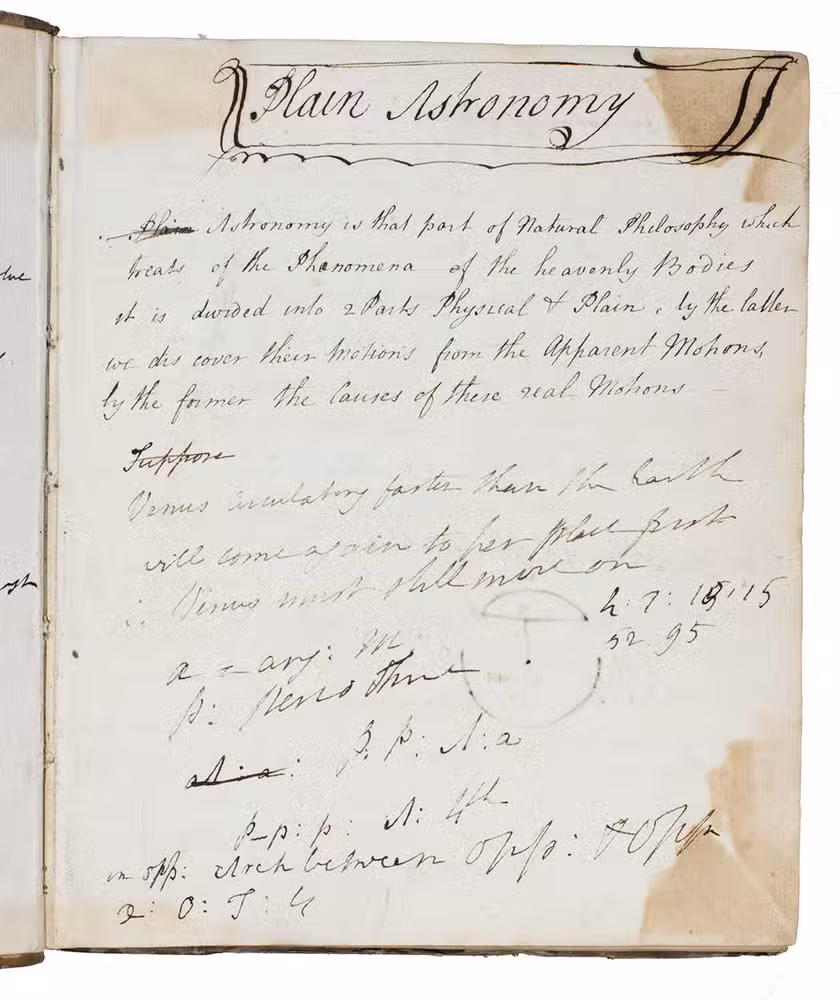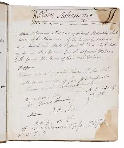 Plain astronomy. Manuscript volume of notes on practical astronomy and mathematics.