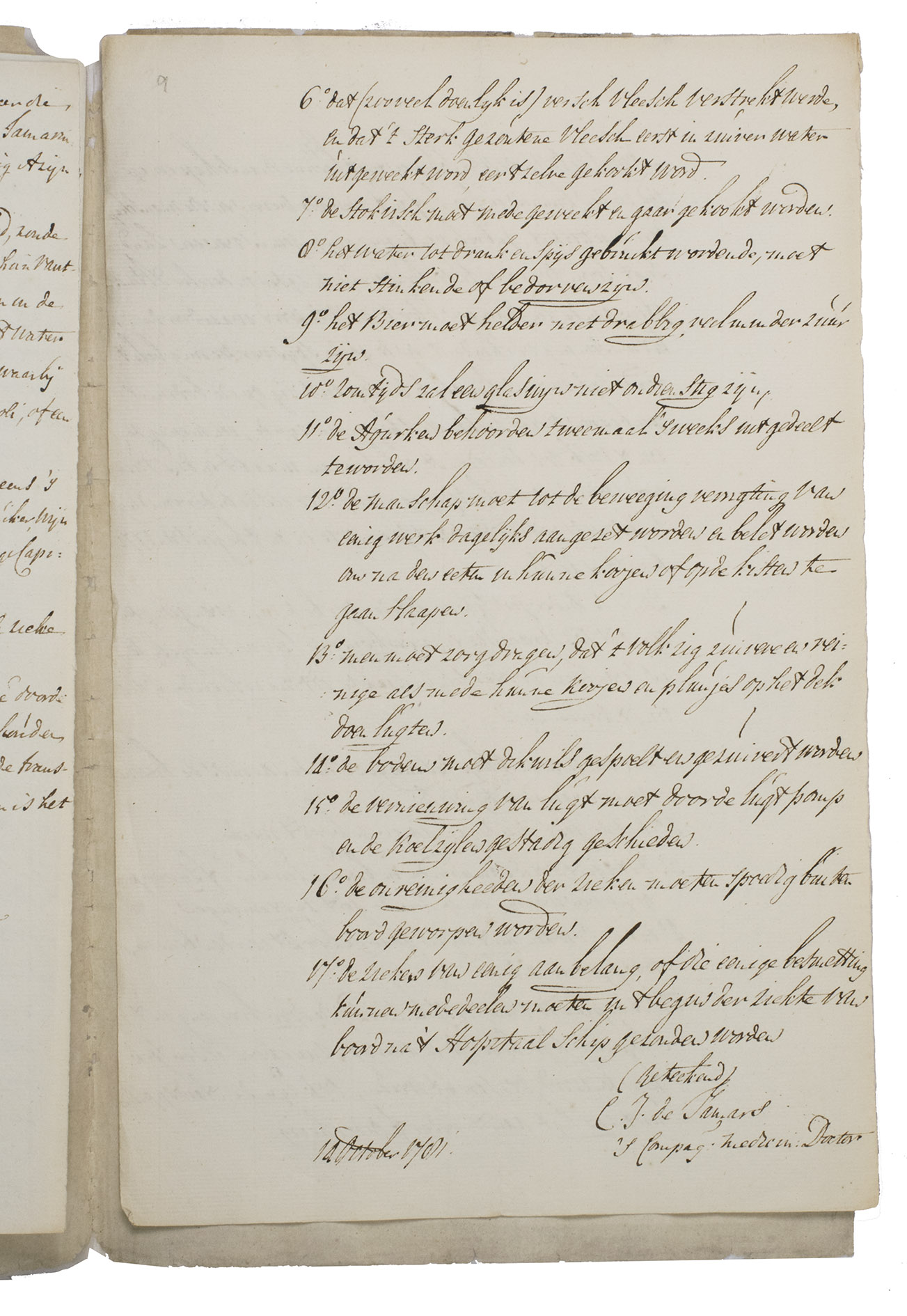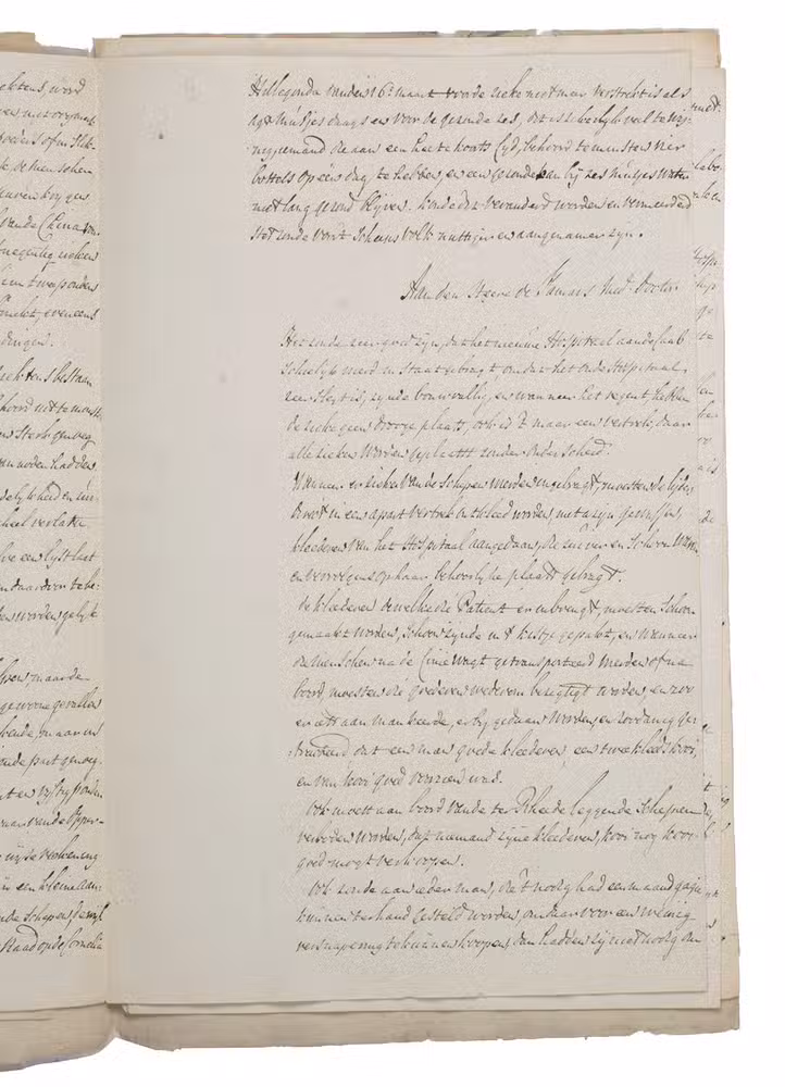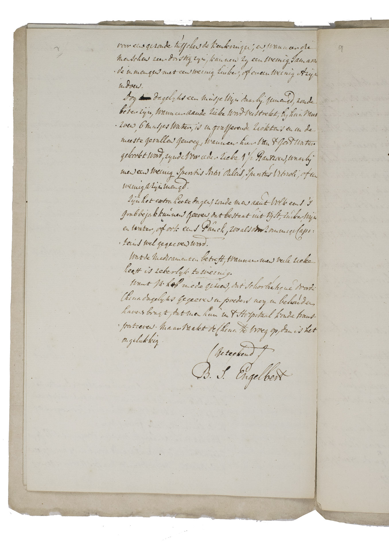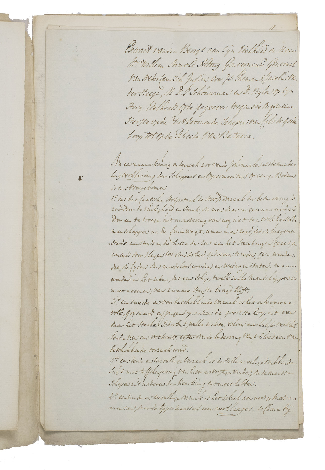 The second document is an extract of a report submitted to Mr Willem Arnold Alting (1724-1800), Governor-General of the VOC, by several medical officers, including B. S. Engelbert. It offers a detailed investigation into the heavy mortality on ships sailing from the Cape to Batavia.