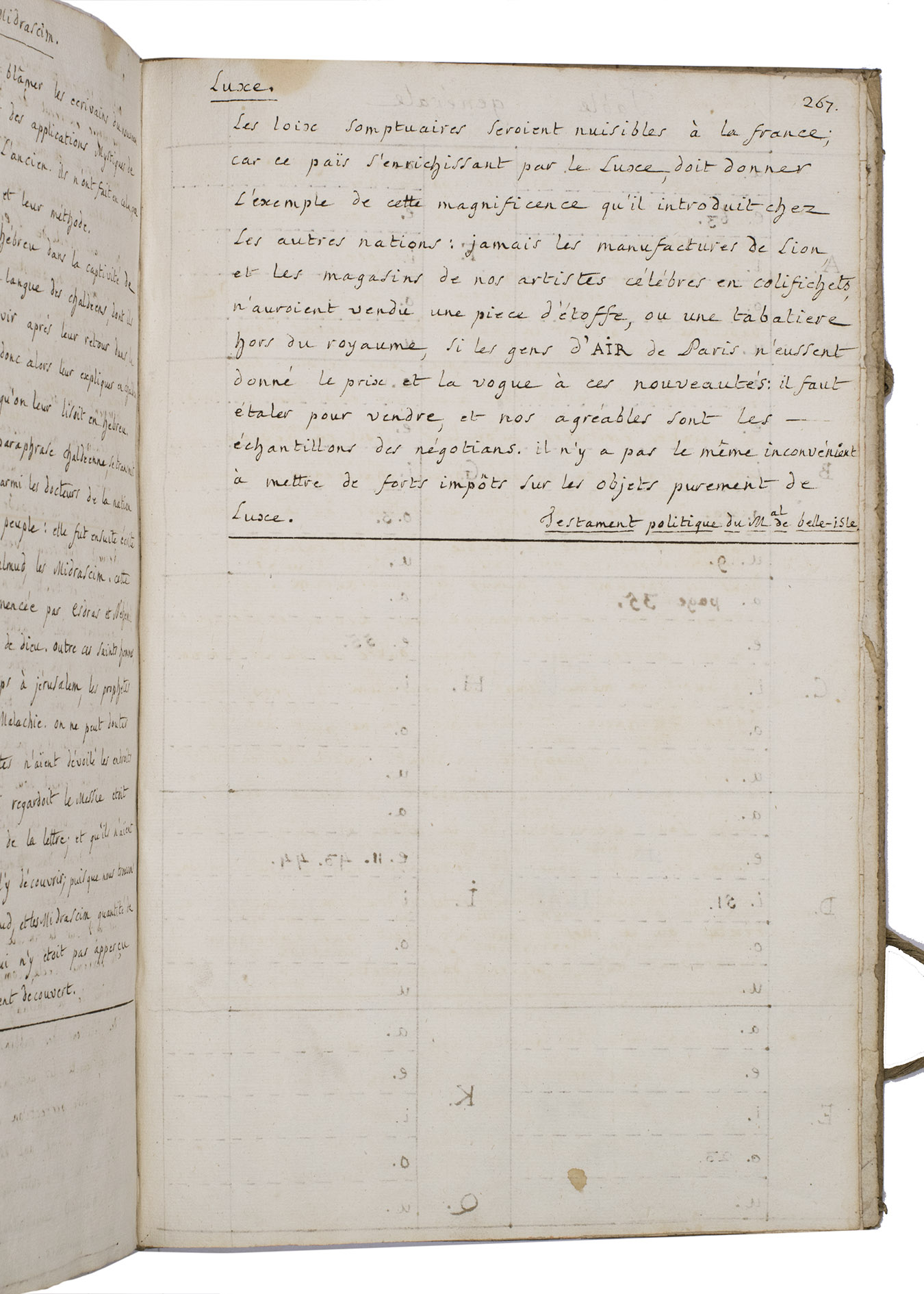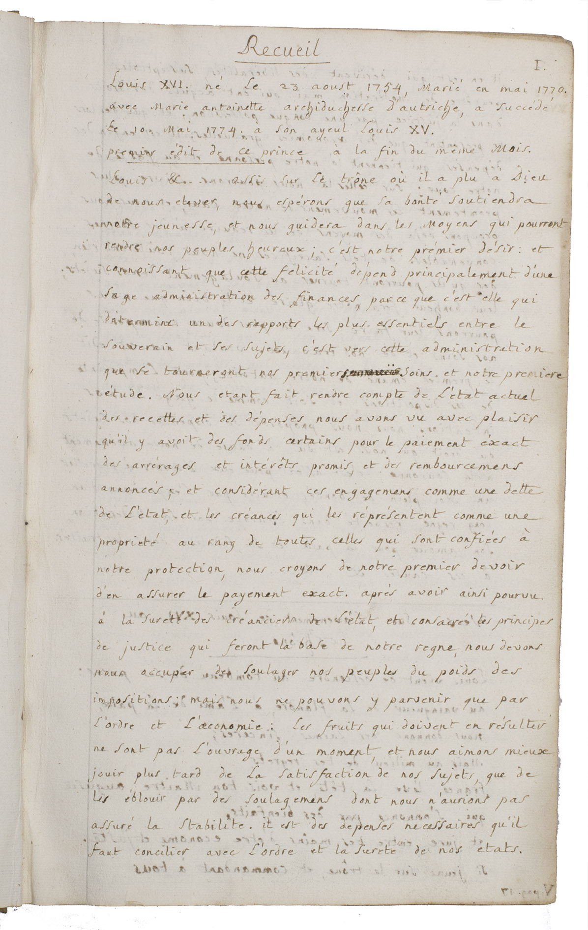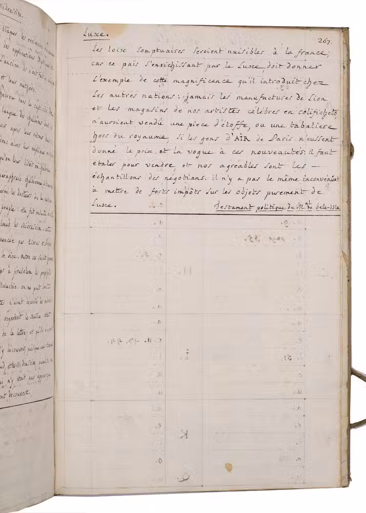 The political horizon of the present work is firmly anchored in the 1770s. It refers to the "lit de justice" held by Louis XVI (1754-1793) on 12 November 1774 to restore the Parlement suppressed under Louis XV (1710-1774), as well as to the 1775 address of Louis Joseph de Bourbon, prince de Conde (1736-1818) at the opening of the Estates of Burgundy. Extracts from Maximes du droit public François (1772) further confirm a date of compilation in the later 1770s, situating the manuscript within the tense pre-Revolutionary decade marked by debates on sovereignty, justice and public law.