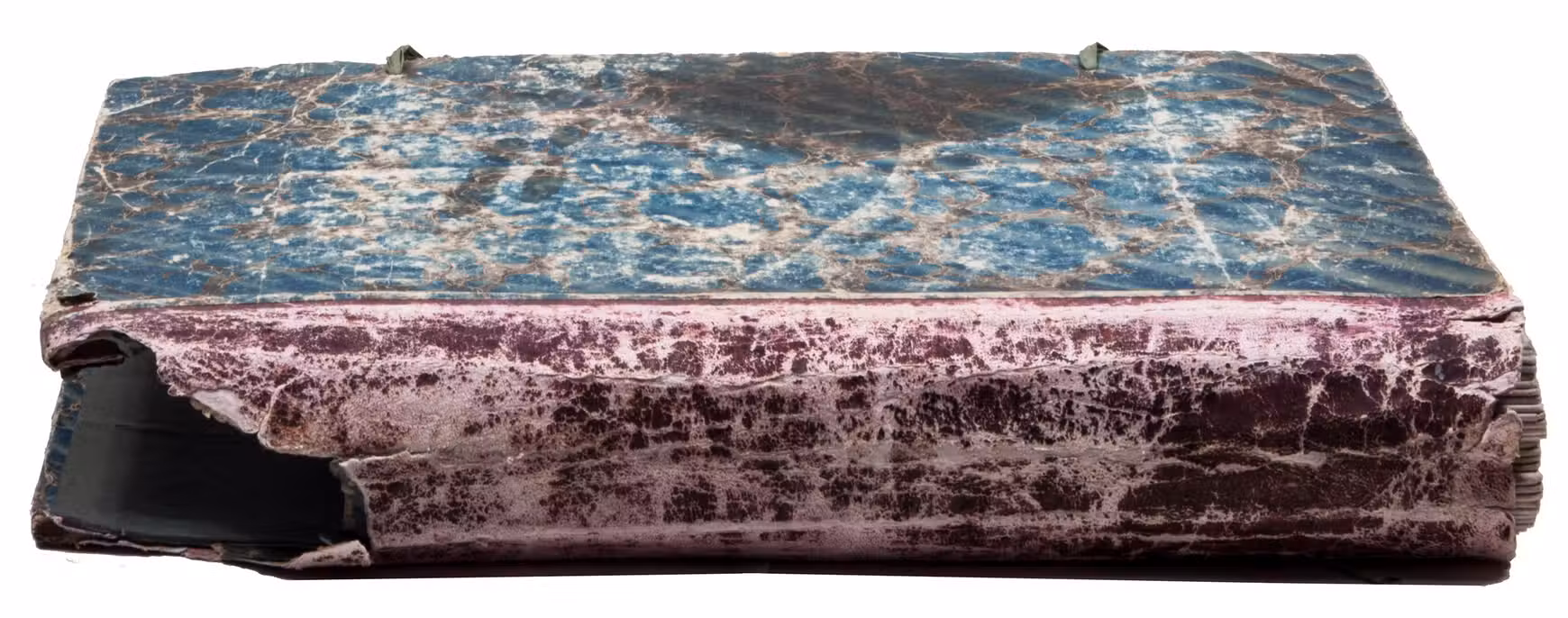 Adegeest (manor house at Voorschoten, between The Hague and Leiden), 1853. Large 4to (27 x 21.5 cm). Loose quires in cover: marbled boards joined together by a spine of red painted sheepskin, green ties. [2], V, 81, 120, VI, 132, 131 pp.