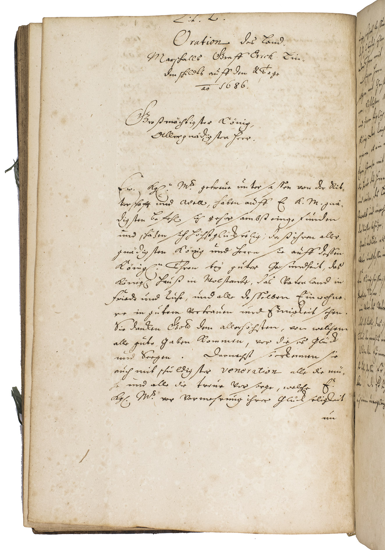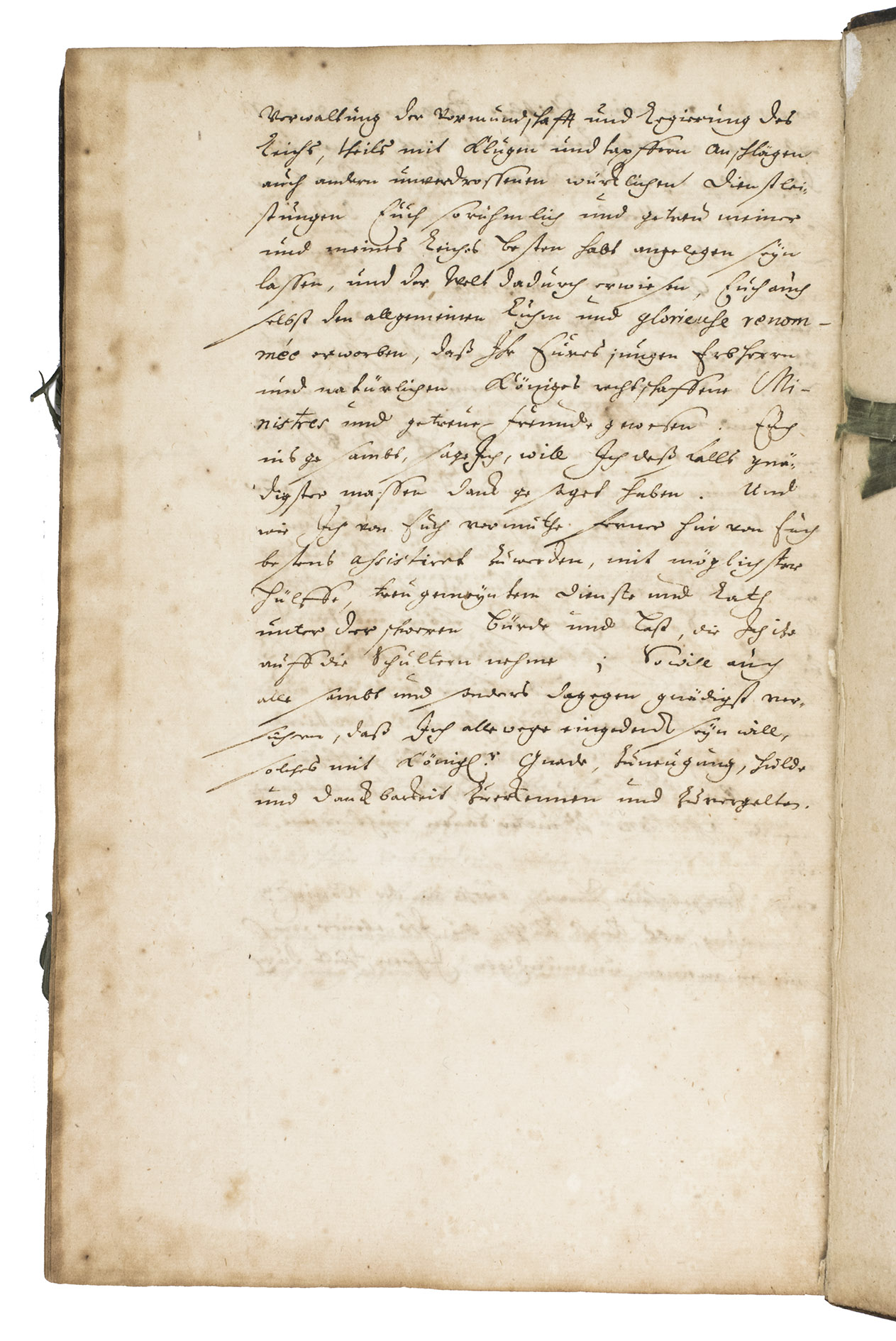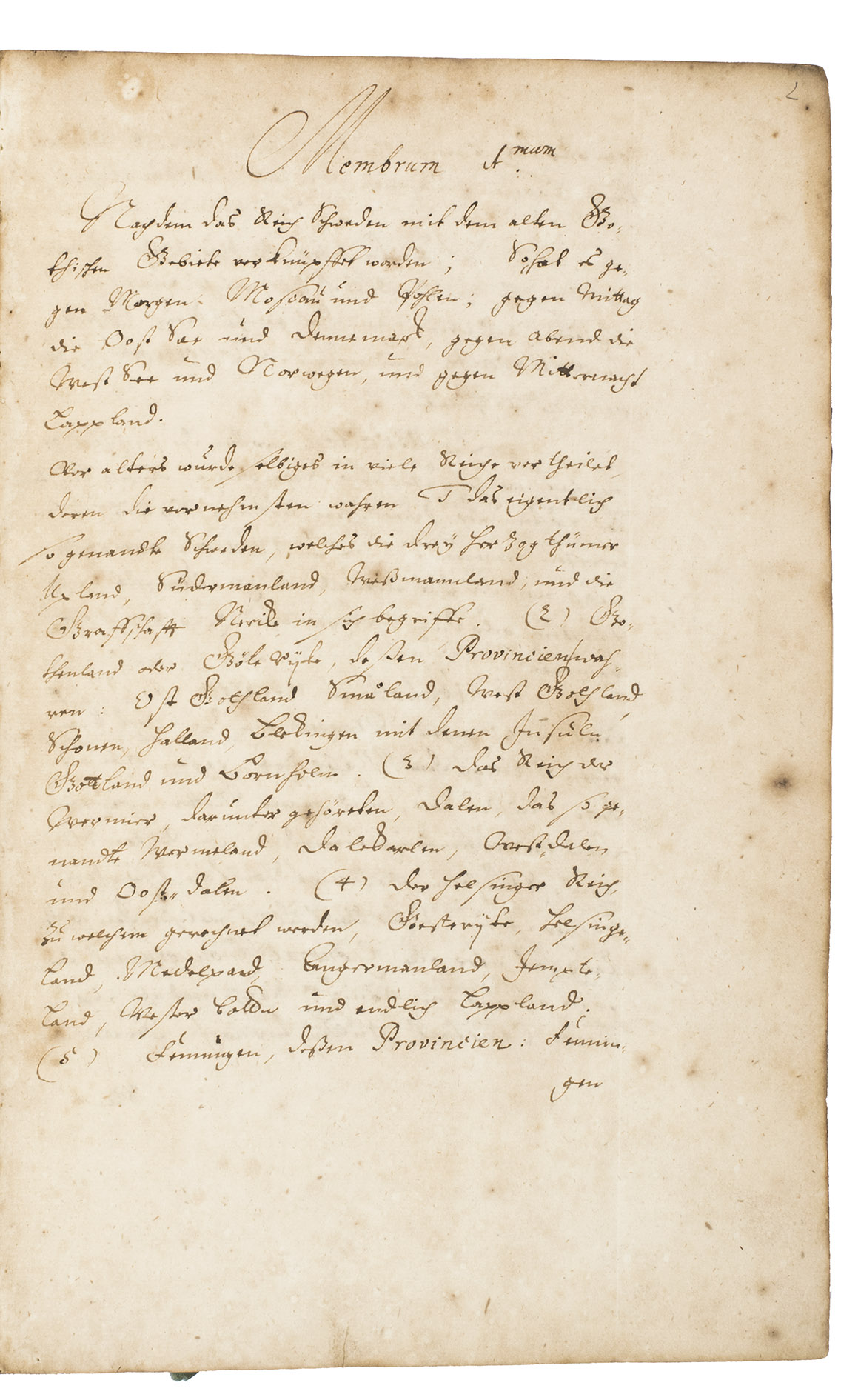 Remarkable manuscript on the history of Sweden in the 17th century, including the conclusion of the Russo-Swedish War (1656-1658). The work consists of two parts. The first is written in German and contains general descriptions of Sweden, excerpts on its governing structure, military system, the strength of the army, resolutions of the Swedish Rikstagen, and proclamations of King Charles XI (1660-1697) from the period 1672-1685. The second part, which starts on the recto of folio 109, is written in French, and contains a description and account of a Swedish embassy on their way to Russia in 1684, with descriptions of the members, the many gifts that were given to the Tsar and his daughter Princess Sophie, letters from the members of the embassy, and the text of the treaty.