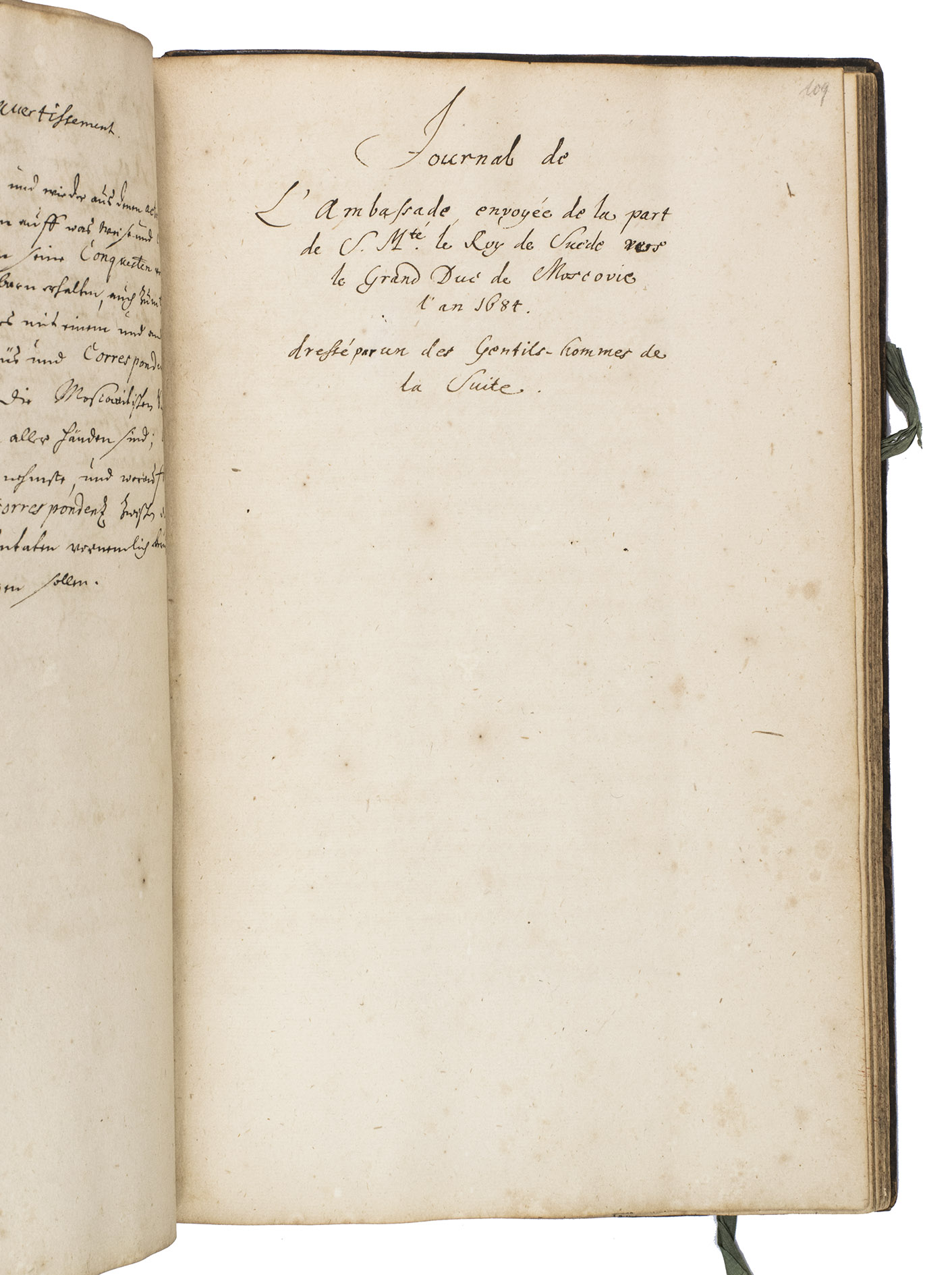 With: [MANUSCRIPT - FRENCH]. Journal de LAmbassade envoyée de la part de S. M.té le Roy de Suède vers le Grand Duc de Moscovie lan 1684, dressé par un des Gentils-hommes de la Suite.