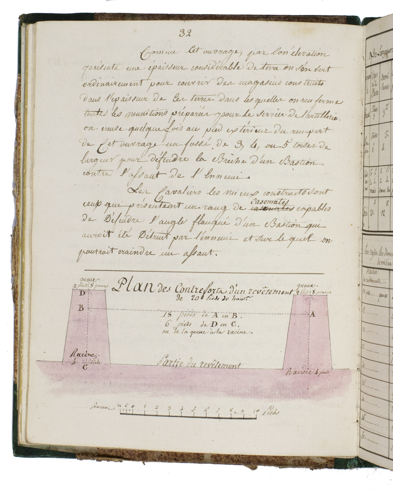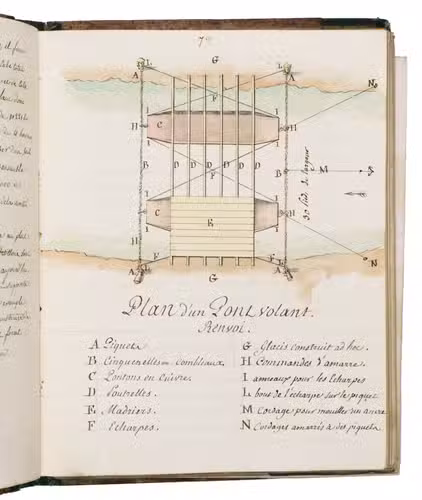 As aide major to the second regiment of mounted grenadiers, Morlot de Wengi was responsible for supporting the major of a heavy cavalry regiment, the specially trained horse-mounted soldiers who led vanguard assaults such as storming fortifications in the course of siege warfare. Thus, it was essential that he had expert knowledge of all aspects of warfare and especially of military engineering. It is not surprising that these subjects make up the majority of the contents of the present manuscript. The first chapter on general principles and definitions is followed by sections on fortification, the workings of a compass, general principles of mechanics and its military use, military hydrostatics, including the construction of a "flying" or floating bridge (pont volant), constructing a balloon, cosmography and geography, and artillery and the path of the projectiles.