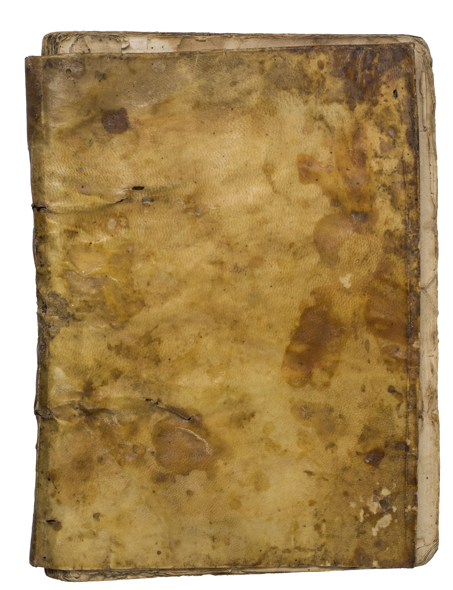 With a crossed out ownership annotation on the verso of the title page. The parchment is stained and wrinkled, with a few small holes, and is somewhat smaller than the paper leaves. The borders of the first two leaves are frayed, the manuscript is somewhat stained throughout. Otherwise in good condition. Cf. De Backer-Sommervogel (1894) V, 1284 (printed ed.).