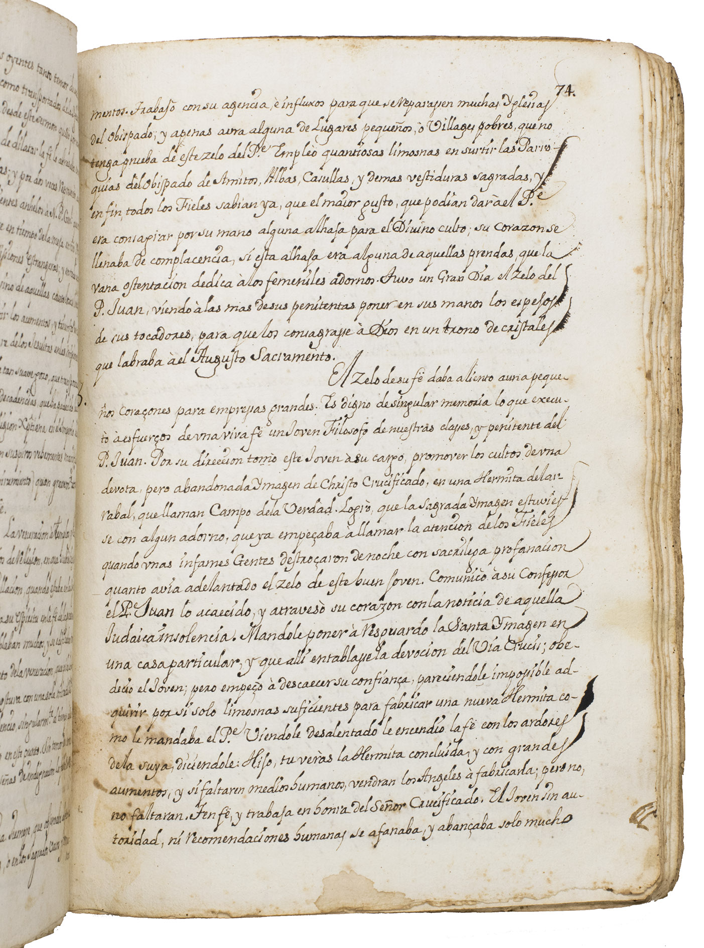 [Córdoba?], ca. 1770. 8vo. With a large engraving of Juan de Santiago on the second leaf and a pen drawing on page 102. Contemporary limp parchment. [4], "159" [= 162] pp.