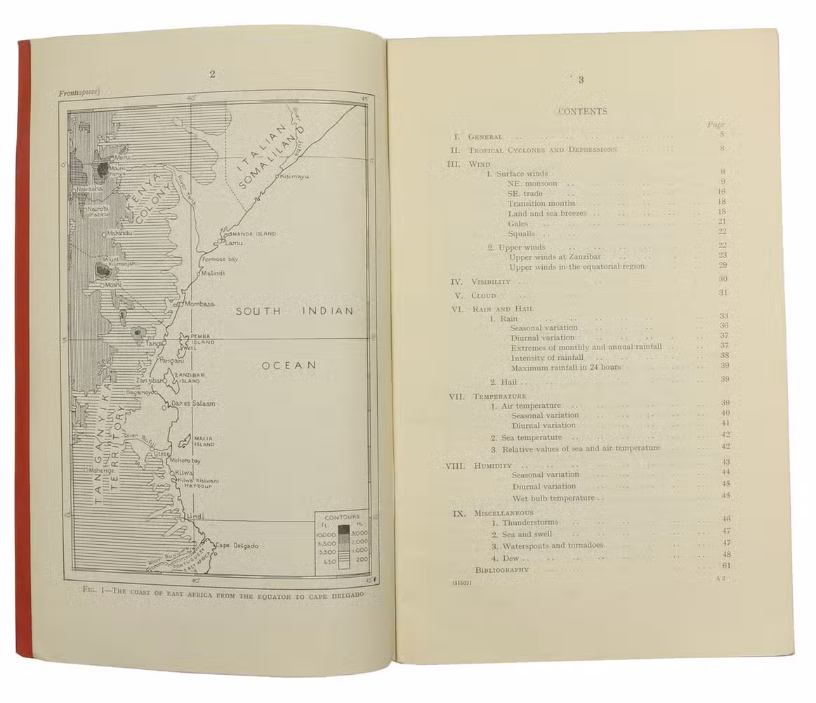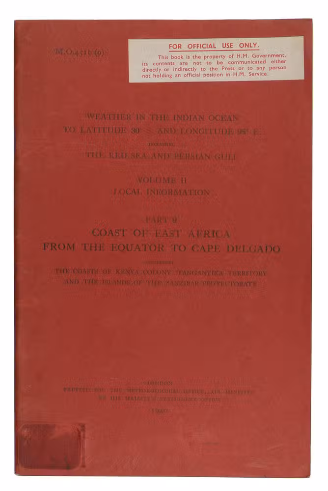 Weather in the Indian Ocean to Latitude 30° S. and Longitude 95° E. Including the Red Sea and Persian Gulf. Volume II. Local information. Part 9 Coast of East Africa from the equator to Cape Delgado [...].