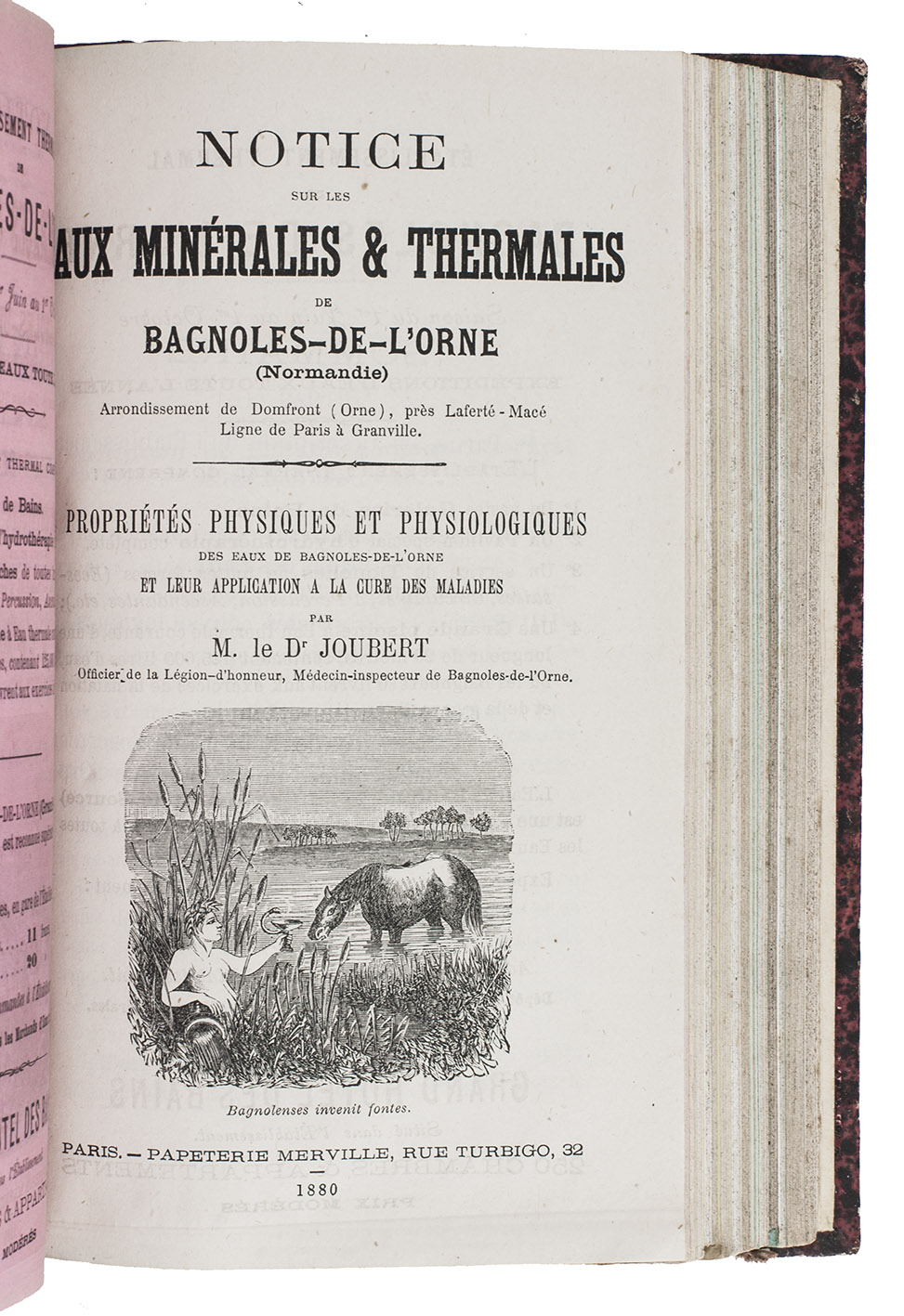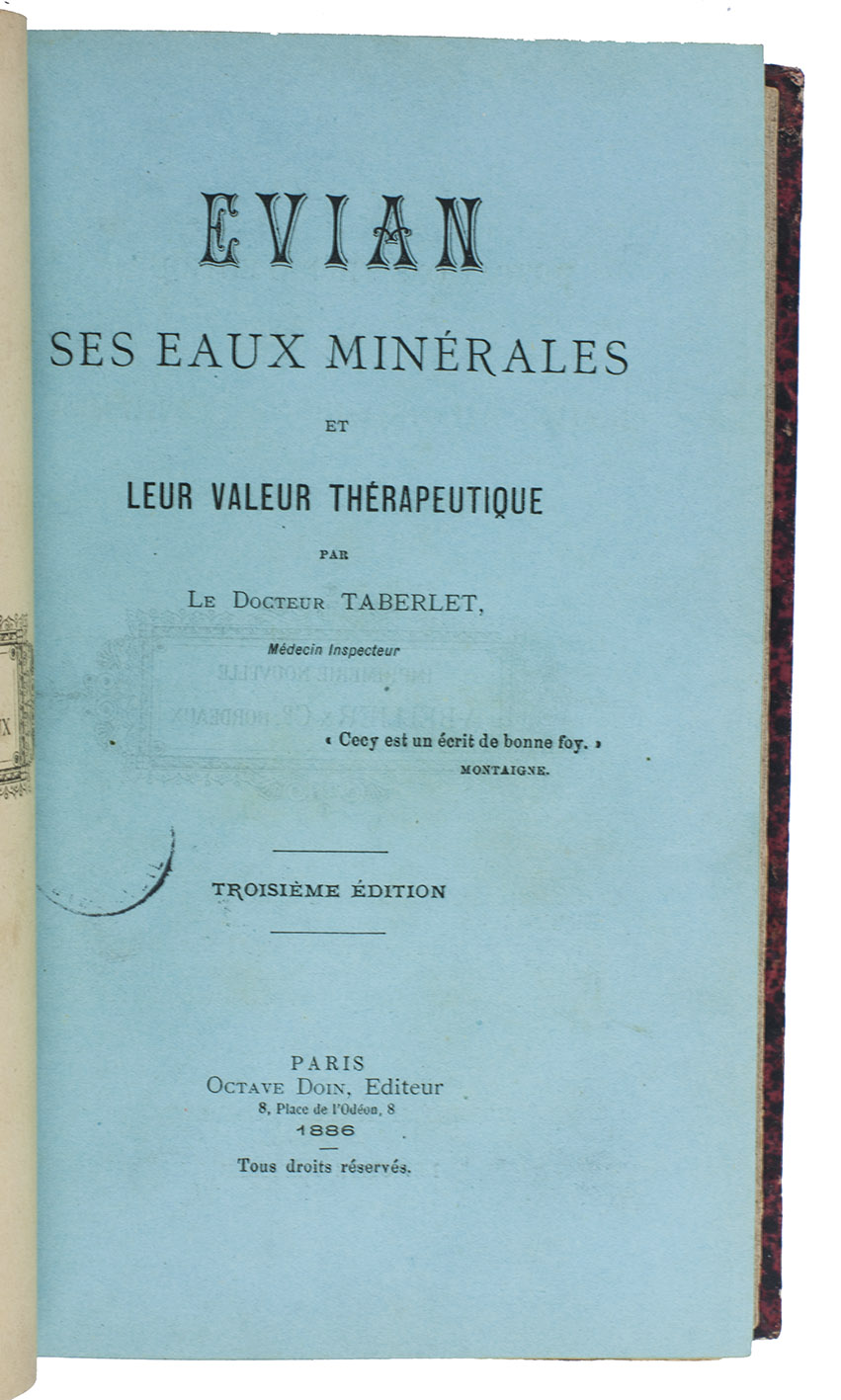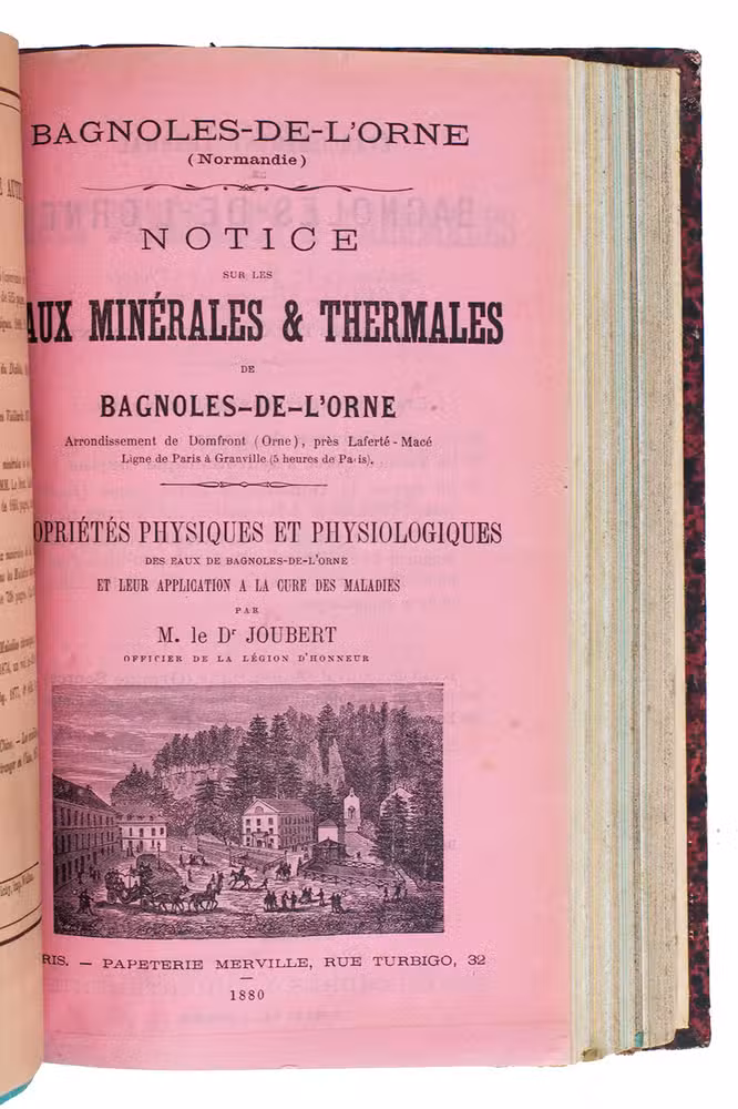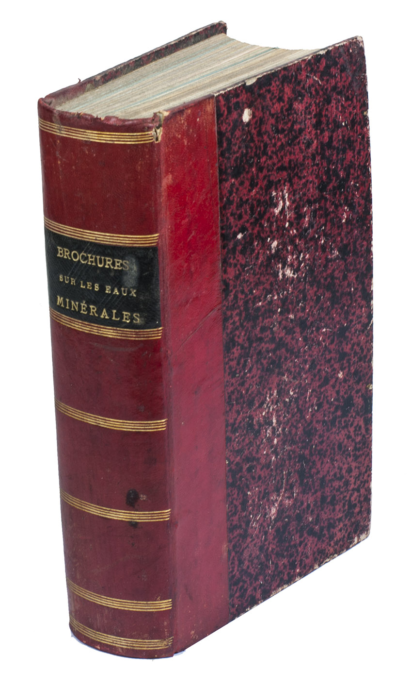 A collection of scientific and promotional publications on mineral springs in France from the end of the 19th-century. The therapeutic virtues of hydrotherapy have been known since antiquity, but the practice became less prevalent at the end of the 18th-century, until Priessnitz (1799-1851) revived it Germany. Because of the law against lay practice in France, the revival there was delayed. "Physicians of scientific attainment [then] entered upon the investigation of hydrotherapy in France with zeal, while in Germany the natural prejudice entertained by the medical profession against the empiricism of Priessnitz and his followers for a long time prevented educated physicians from attaching themselves to water establishments" (Baruch). The collection includes articles by Pidoux, Guyenot, Durand-Fardel, Joubert, Binet, Breuillard, Bouloumié and others.