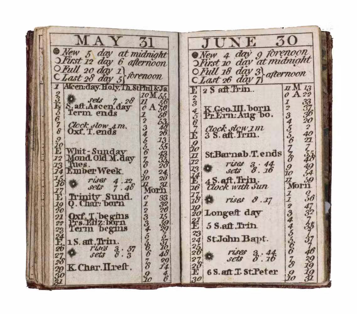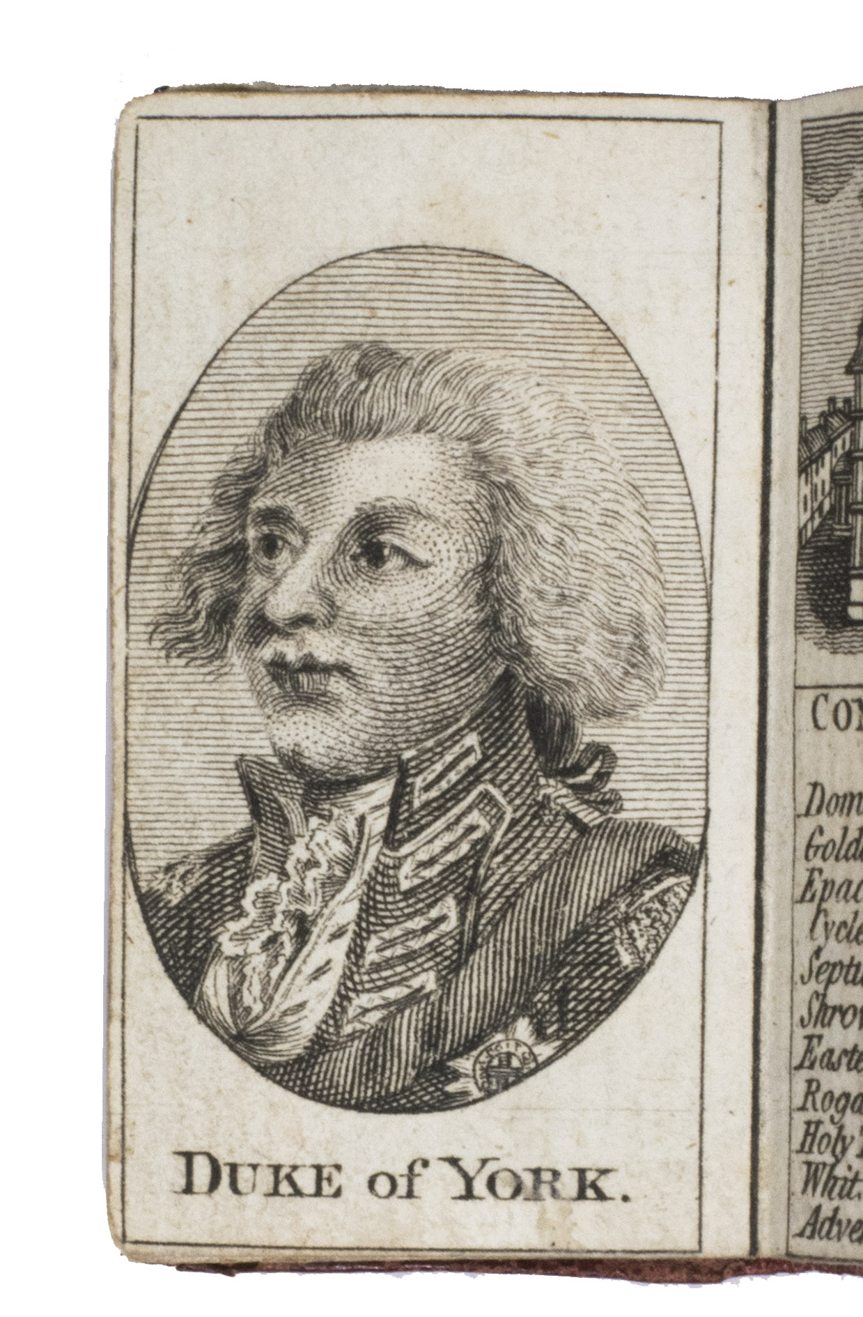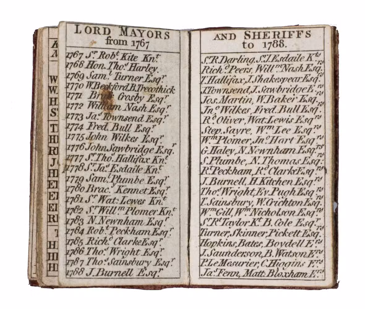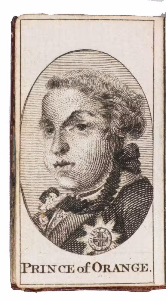 Rare remarkable "pocket" London almanack; an entirely engraved miniature publication for the year 1788. The almanac contains an explanation of its use on the title page, four full-page portraits of the King of Prussia, the Prince of Orange, the Duke of Brunswick, and the Duke of York, common notes (including the dominical letters, golden number, and religious festive days) for 1788 beneath a half-page view of St. Paul's Cathedral, a calendar, an overview of all British Kings and Queens and the dates of their reign, a list of mayors and sheriffs (1767-1788), one page listing bank holidays, and an overview of the Royal family (King George III and Queen Charlotte and their children) can be found on the final page. The long series of the London Almanack is, according to Bondy, of special interest for the beautiful bindings which were issued or commissioned by the publishers themselves.