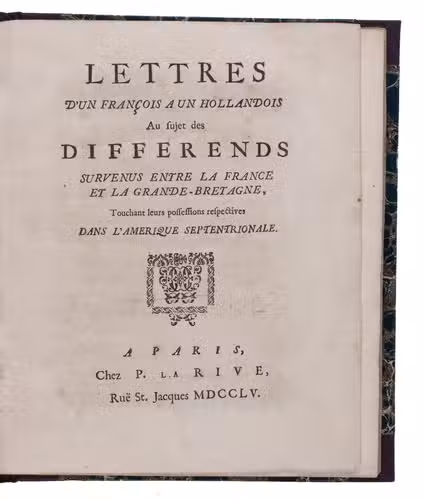 Lettres d'un François a un Hollandois au sujet des differends survenus entre la France et la Grande-Bretagne, touchant leurs possessions respectives dans l'Amerique Septentrionale.