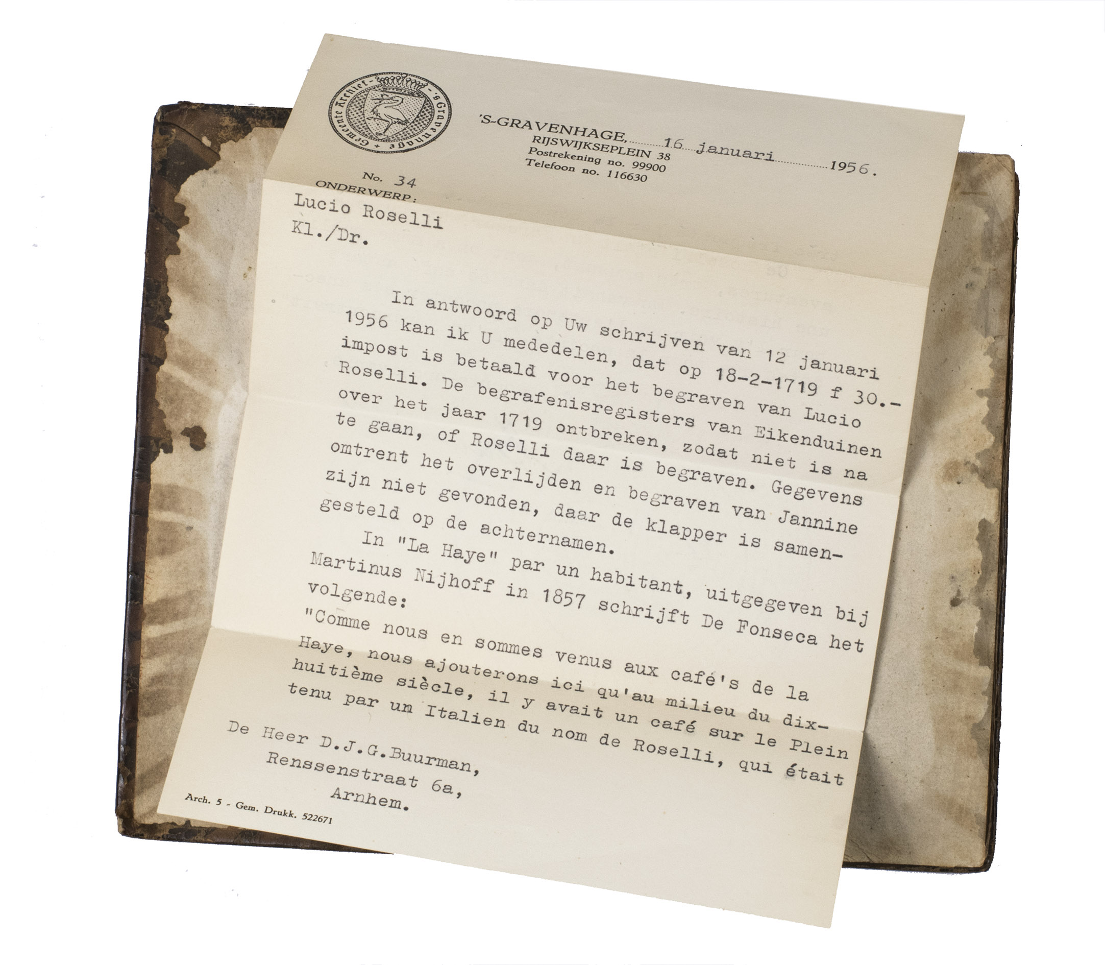 With a printed note from the city archive in The Hague about Rozelli's death, dated 16 January 1956, inserted at the front of the work, and an annotation in French on the first free flyleaf. The spine is somewhat worn, with a hole in the middle, the edges and corners of the boards are somewhat scuffed, the boards are rubbed, the joints are splitting at the head, but the structural integrity of the binding is still intact. The work is somewhat browned throughout, the lower left blank corner of the frontispiece has been torn off. Otherwise in good condition. Buisman 1739-42 (Dutch eds. of 1710, 1716, 1722 and 1725); Muller 157; Scheepers II, 666; STCN 237342464 (2 copies, does not mention the 3rd part for this ed.); Waller 1263; cf. Gay-Lemmonnyer II, col. 658 (French eds.).