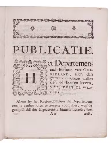 Publicatie van het departementaal bestuur van Gelderland, houdende verordeningen op de uitoeffening van alle de takken der geneeskunde in het departem. Gelderland. Gearresteerd den 9 december 1802.