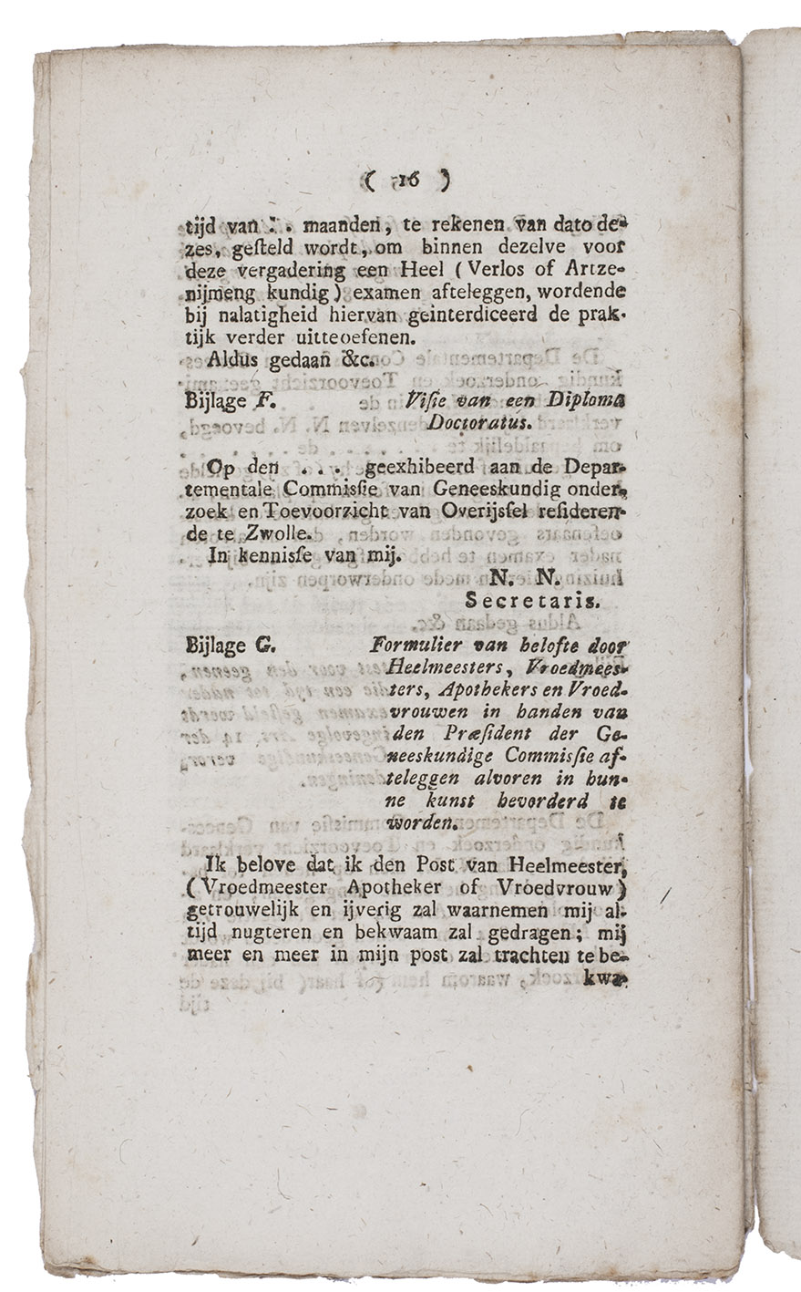 Official publication of the "Departement van Overijssel" concerning the medical exams which all doctors, physicians, apothecaries and midwives have to pass.