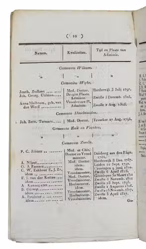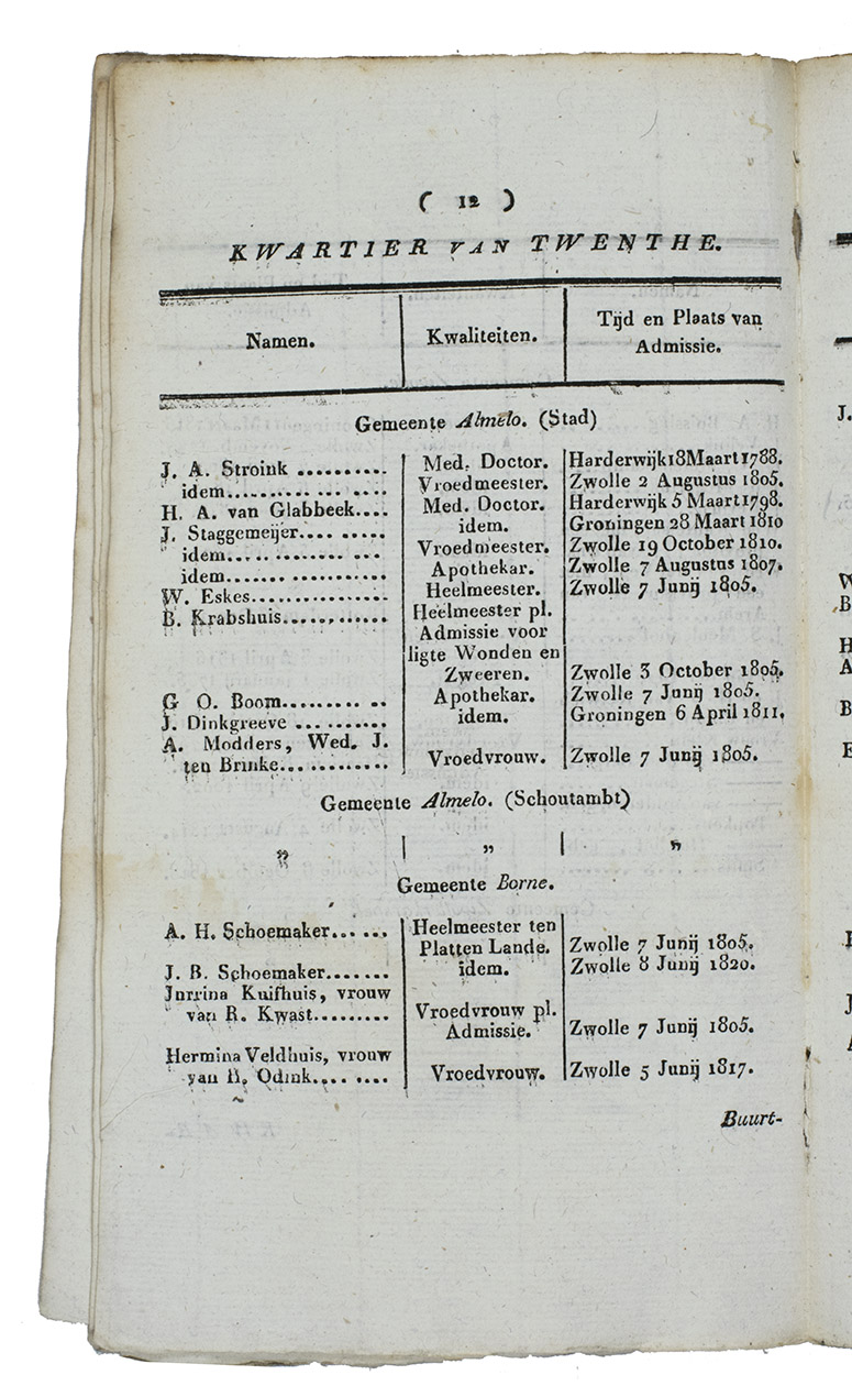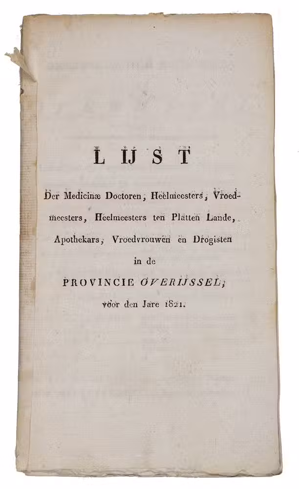 List of the qualified physicians, midwives, pharmacists etc. in the Dutch province Overijssel in 1821
