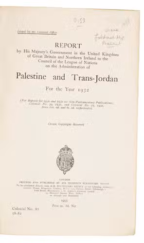 Report by His Majesty's Government in the United Kingdom of Great Britain and Northern Ireland to the Council of the League of Nations on the Administration of Palestine and Trans-Jordan for the Year 1932 ... Colonial no. 82, 58-82.