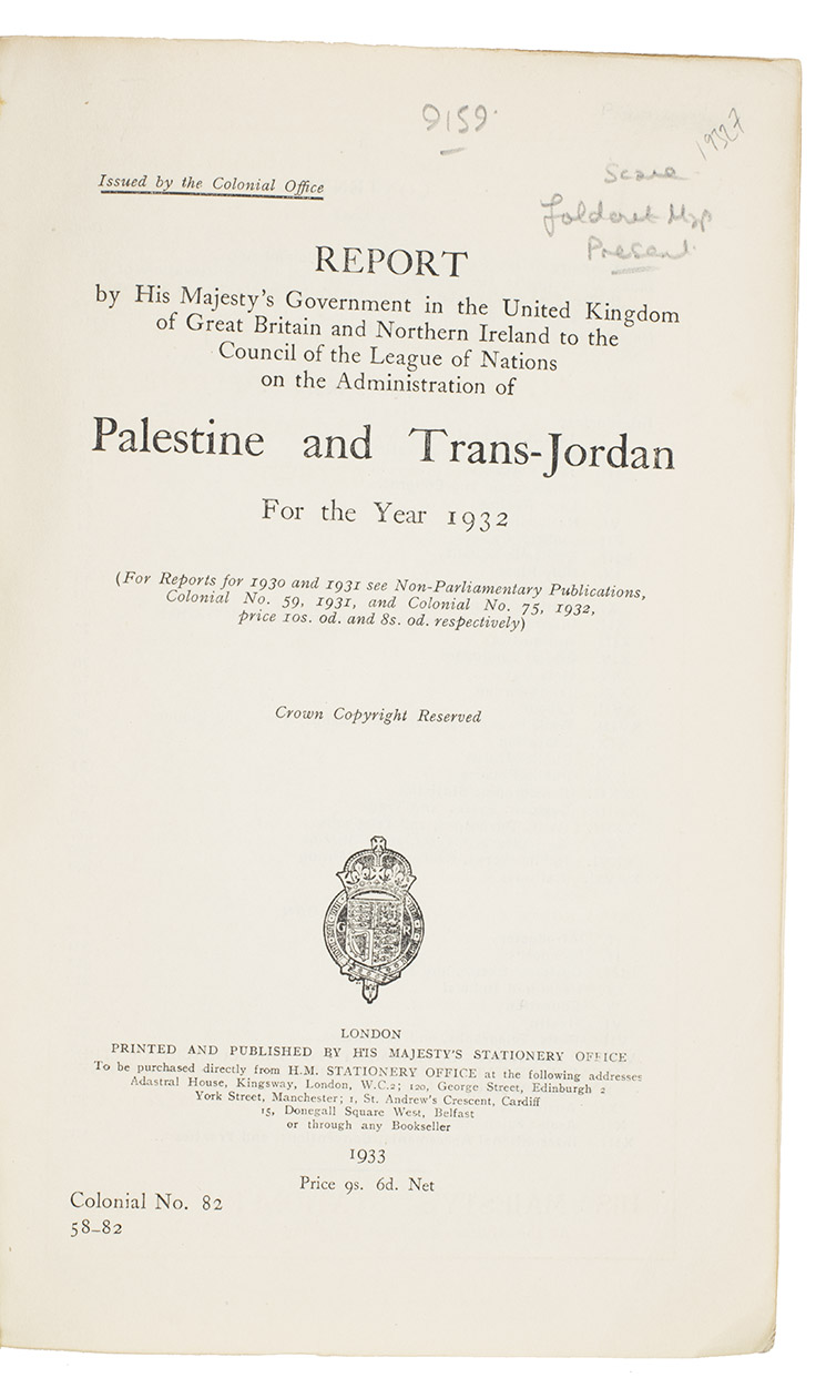 [PALESTINE]. UNITED KINGDOM COLONIAL OFFICE.