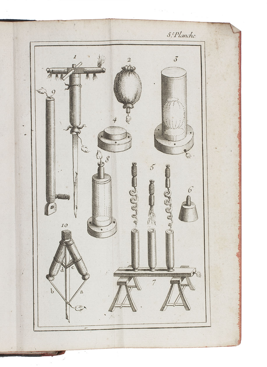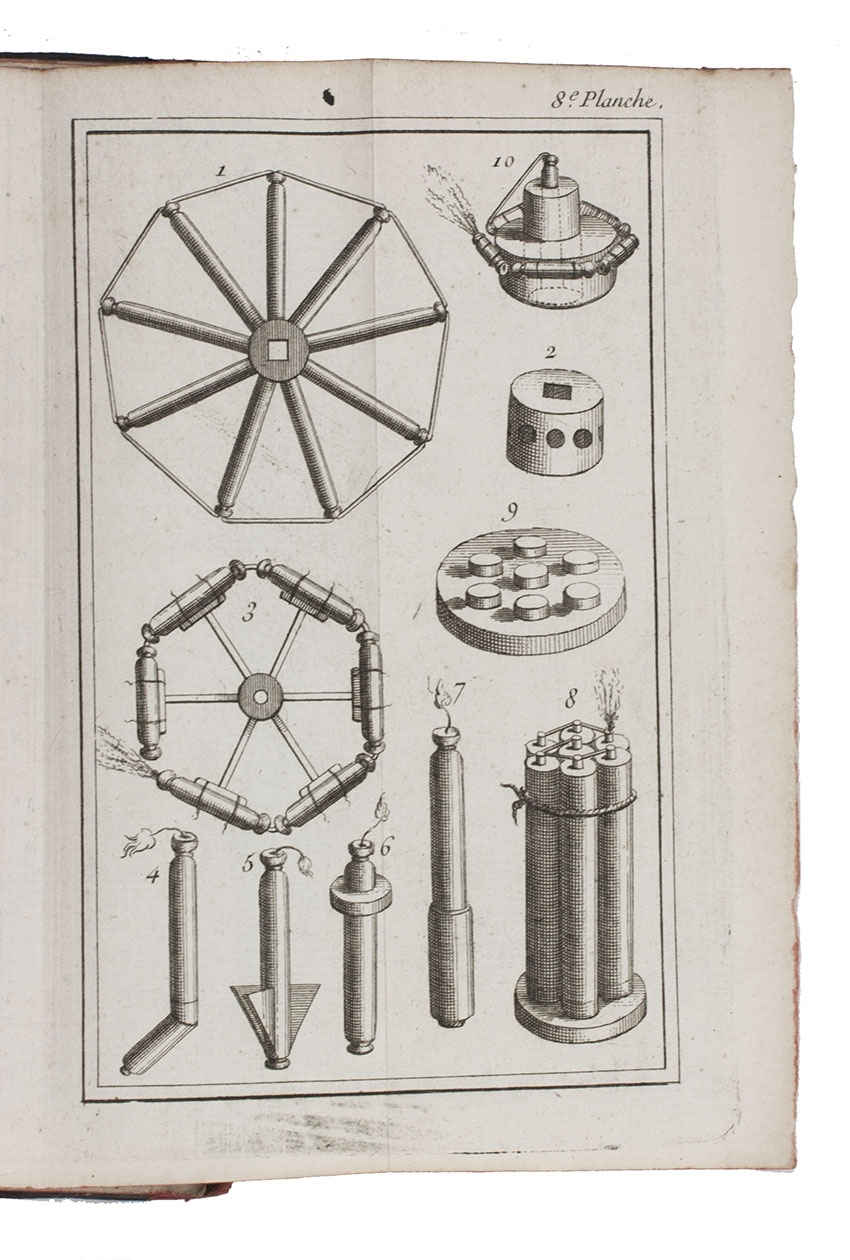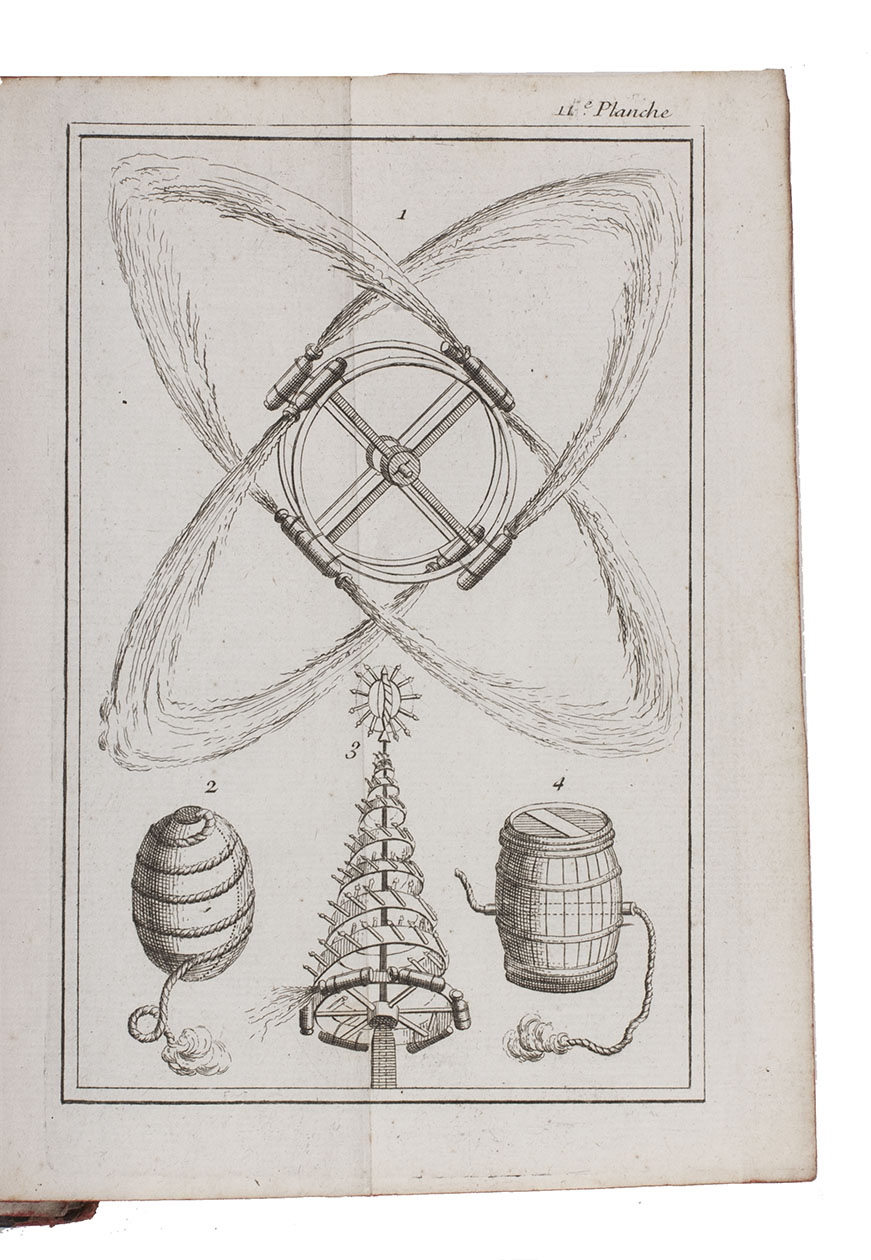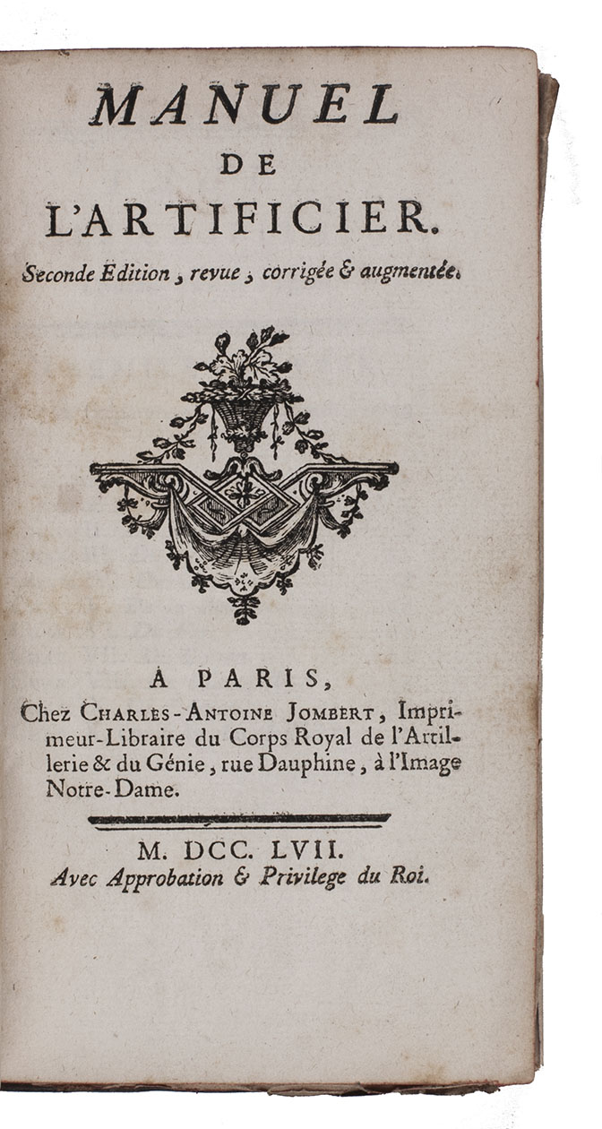 Second, revised and corrected edition of a popular pyrotechnic manual by Jean Charles Perrinet d'Orval (1707-1780), who was an officer in the French army Corps of Engineers. It was first published in 1755 and includes a large section on Chinese fireworks.