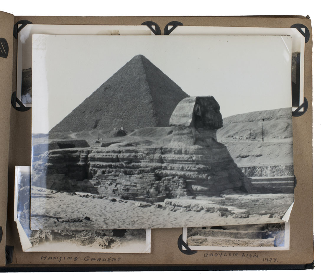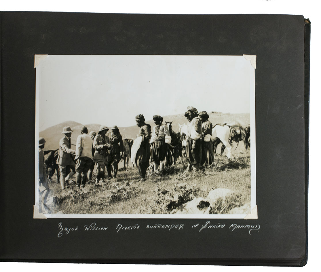 A collection of about 275 photographs made by an RAF pilot, Sergeant William Reynish, during his service in Iraq ca. 1928-1933 and Malta 1933, and during a brief visit to Egypt. Most have captions written on the album leaves clearly identifying the scenes. Some photos show scenes of daily life in Iraq (Bagdad, Hinaidi, Mosul and other cities, as well as the surrounding countryside) with local people, shops, buildings, landscapes, ruins, monuments, etc. Others show the British troops and their activities, vehicles, airplanes (including crashed ones), etc. The portraits include an unidentified sheik with a falcon and an Arabic man smoking a hookha water pipe. The Kurdish Sheik Mahmud Barzanji of Sulaimaniyah, rebelled against the Iraqi army around June 1930 but the RAF bombed his people's villages from September 1930 to April 1931, when he finally surrendered to Major W.C.F.A. Wilson, administrative inspector at Mosul. Several photographs cover the sheik and his surrender.