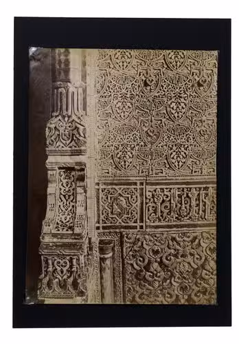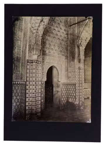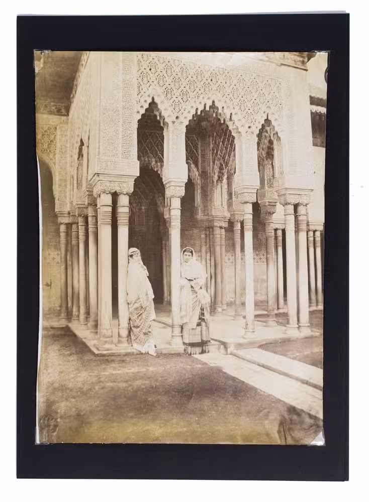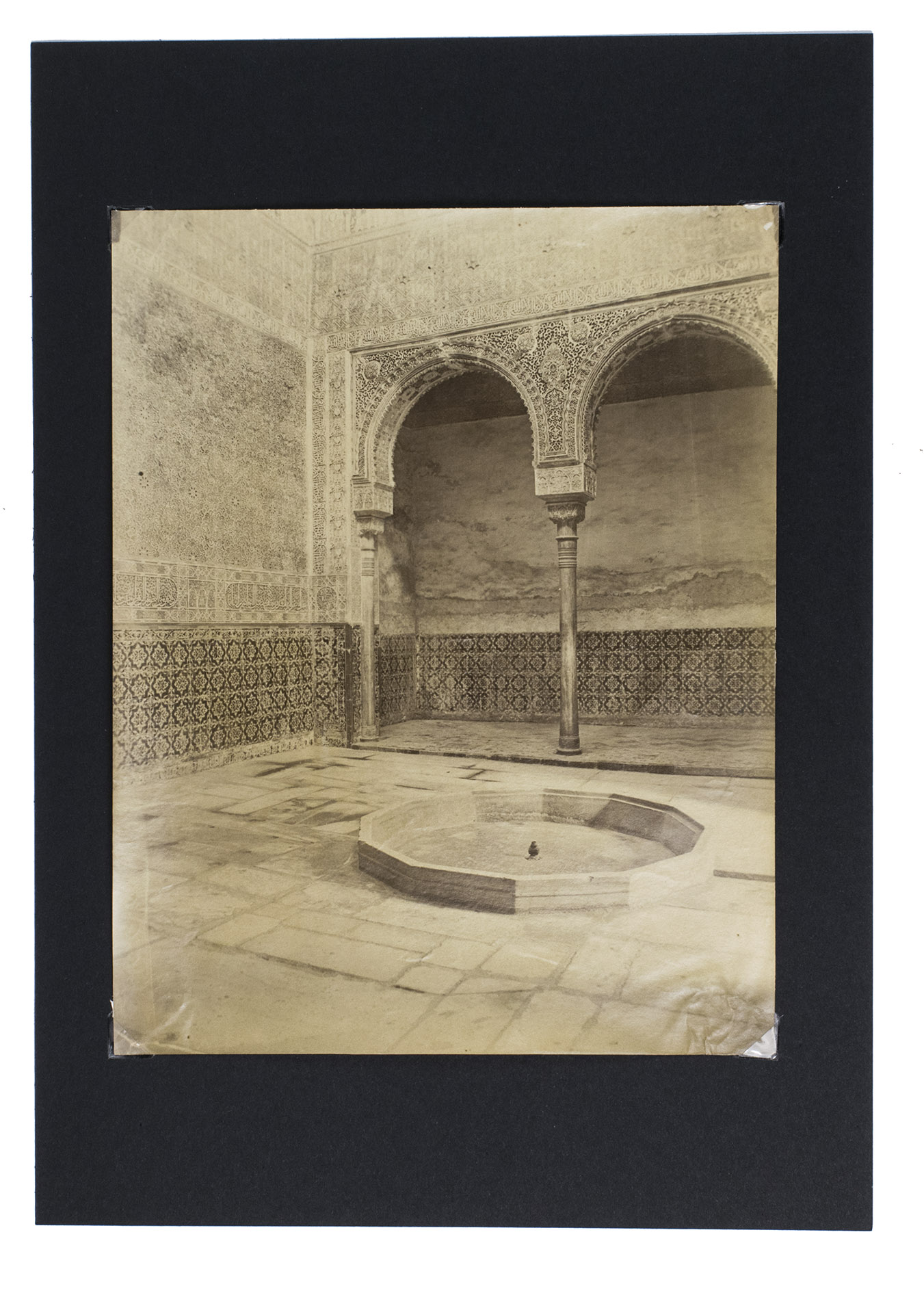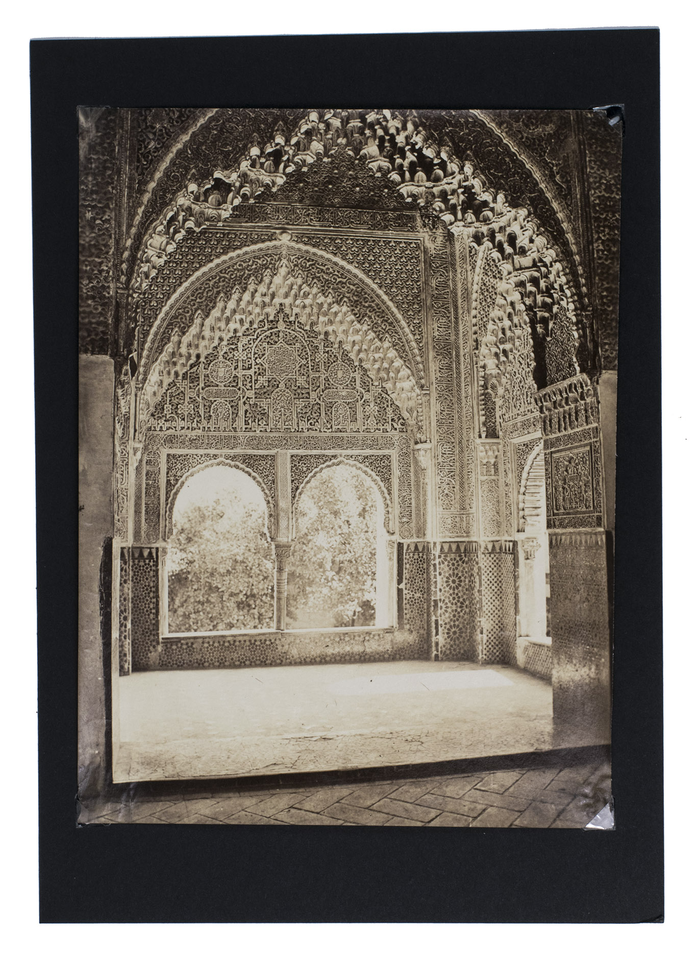 The prints are slightly yellowed and some images were possibly overexposed or have faded slightly, all prints show clear signs of having previously been mounted on another surface. Some prints have small tears in the edges. The print of the 2 Moroccan women in the Alhambra is probably by a different photographer, but the name has been cut off. The collection gives a beautiful insight into 19th-century photography in the Iberian Peninsula - showing off the beautiful Arabic- and Muslim-influences architecture in Granada.