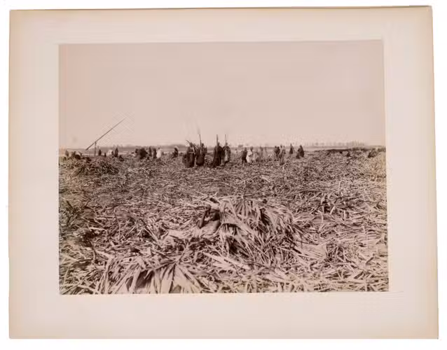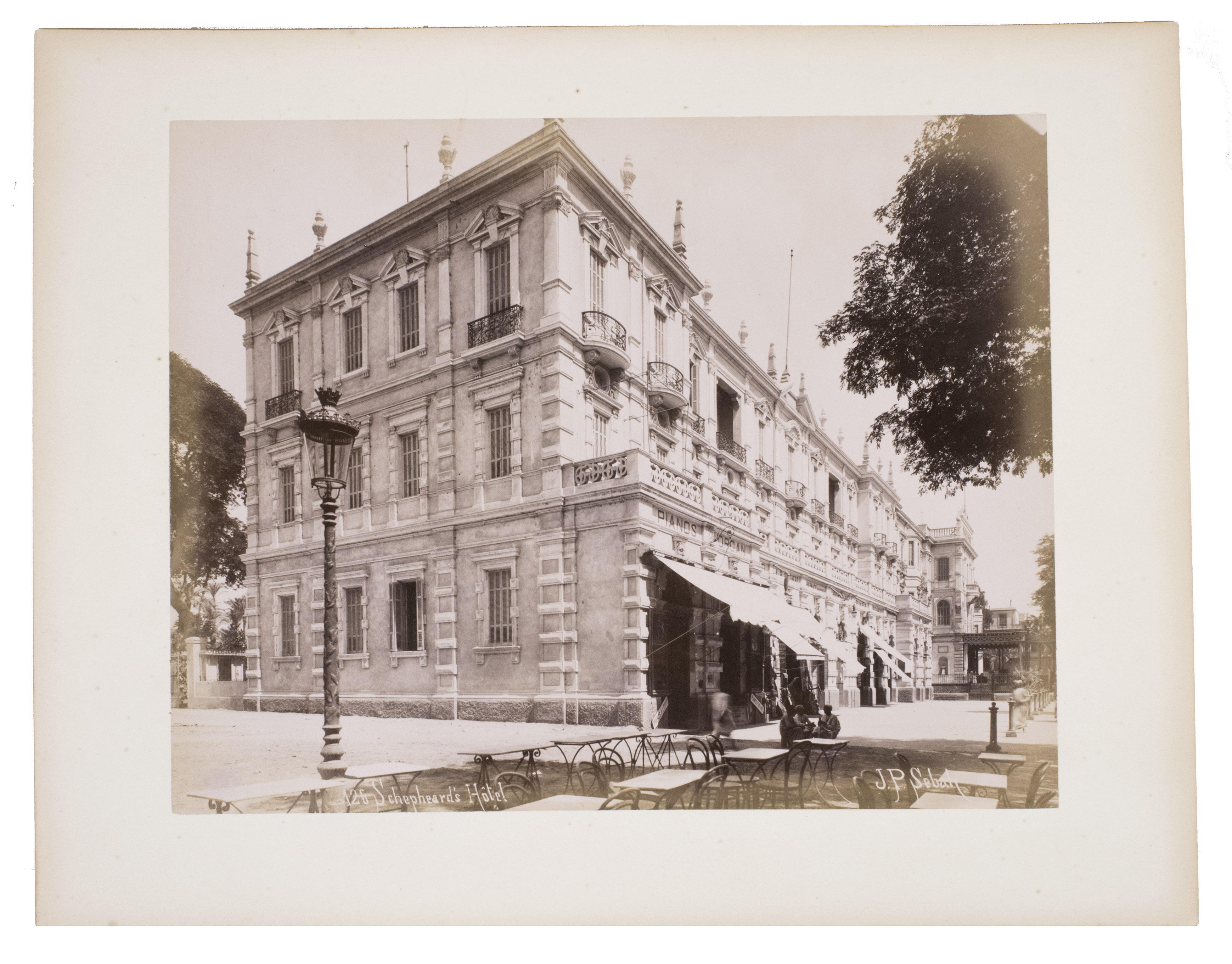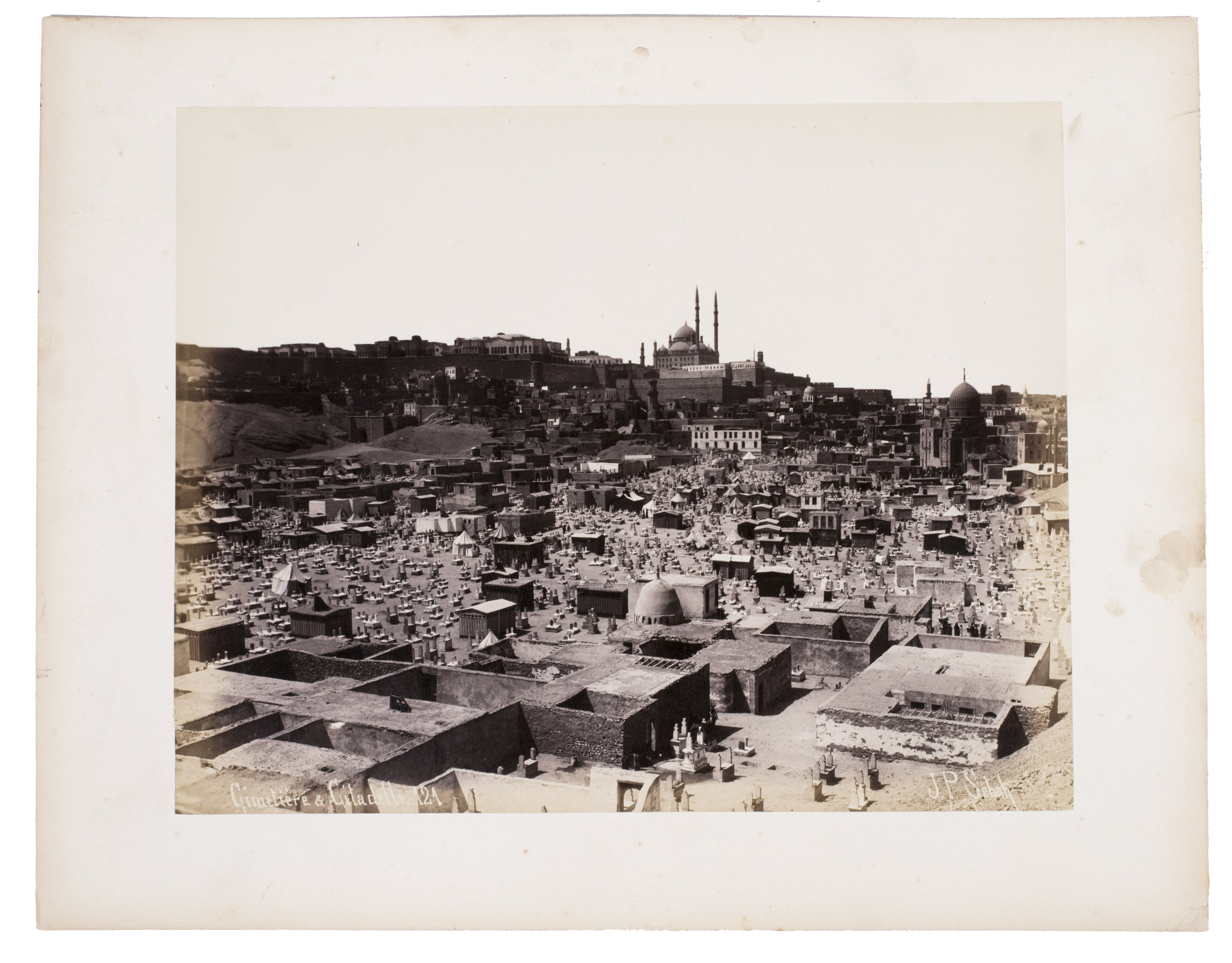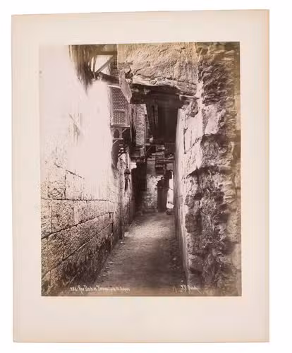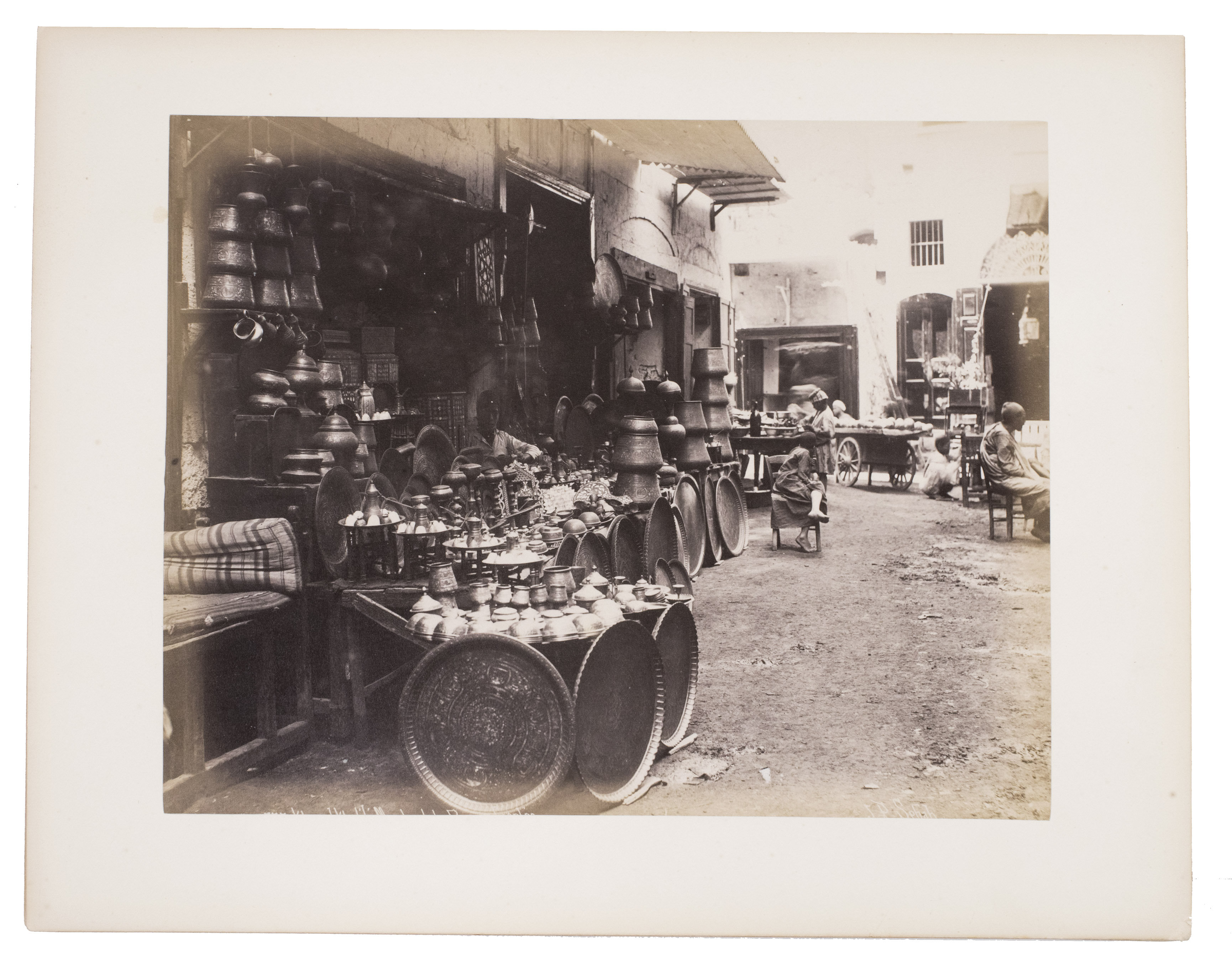 Sébah continued the business of his father Pascal Sébah (1823-1886), one of the first photographers working in Egypt. Pascal rose to prominence because of his well-organized compositions, careful lighting and quality of his prints. The majority of his photographs are of tourist destinations and locals. Jean Pascal inherited his father's good eye, but was more interested in depicting lesser known locations. His photos of people also appear more spontaneous. The present collection includes photographs of El-Souroughieh street and the Khalig canal in Cairo, the Virgin Mary's tree in Matariya, a local with a buffalo, a group of seated men in a mosque, a sugarcane market, locals working on a sugarcane field, a group of boys fishing and the hustle and bustle along the Nile.