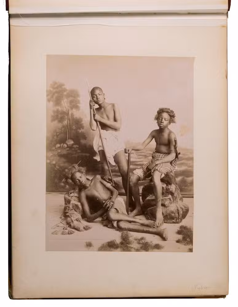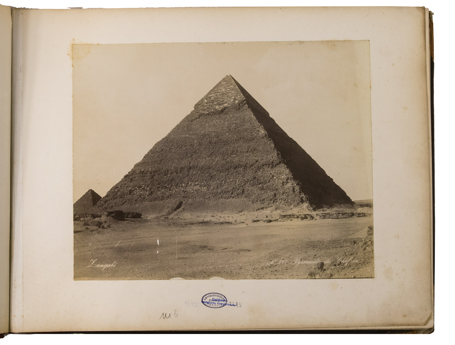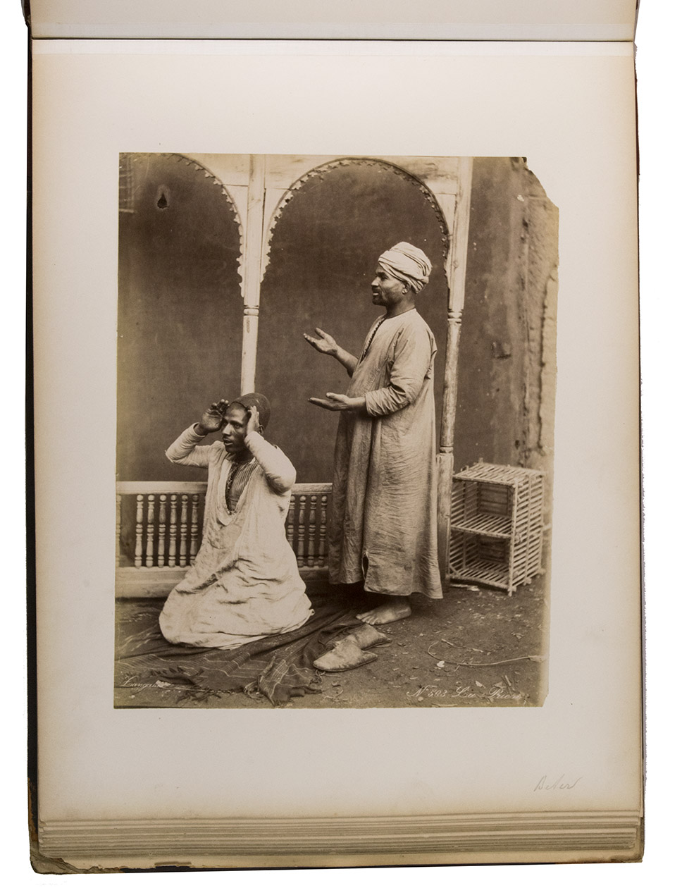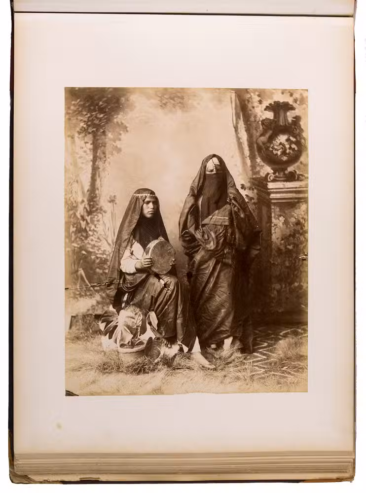 A large German album with 34 albumen prints of Egypt. The Greek brothers G. and C. Zangaki were photographers who worked in Egypt in the second half of the 19th century. Due to increased tourism to this region after the opening of the Suez Canal, there was a large demand for souvenir photographs. Photographers like the Zangaki brothers, as well as Sebah & Joallier, catered to this. The Zangakis were among the first commercial photographers to produce large-scale images of Egypt. They travelled through the country with a portable darkroom to capture high-quality images of famous monuments and daily life, though the latter were usually posed. These images were then printed and sold to tourists, either separately or compiled into albums. According to John Hannavy, the brothers "produced some of the finest images of late Victorian Egypt".