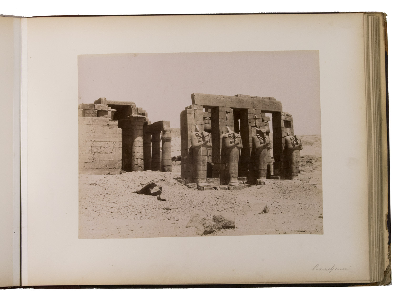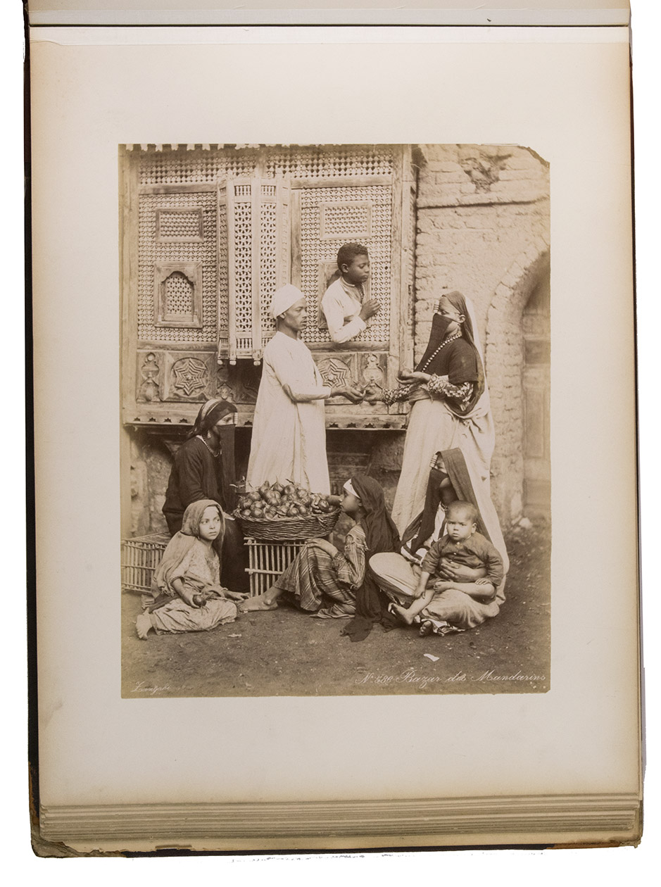 With two small library stamps on the first page, not affecting the photograph. The book has been rebacked. The left side of the front board has faded and the corners are worn. Minor browning around the edges of the leaves. Back flyleaf loose. The photos are crisp and clear and the book is otherwise in good condition. Erdem, Views of Egypt by Georgios and Constantinos Zangaki: Examining a late nineteenth-century photographic album at the Art Gallery of Ontario (thesis), 2006; Hannavy, Encyclopedia of Nineteenth Century Photography, pp. 1036, 1093 & 1521.