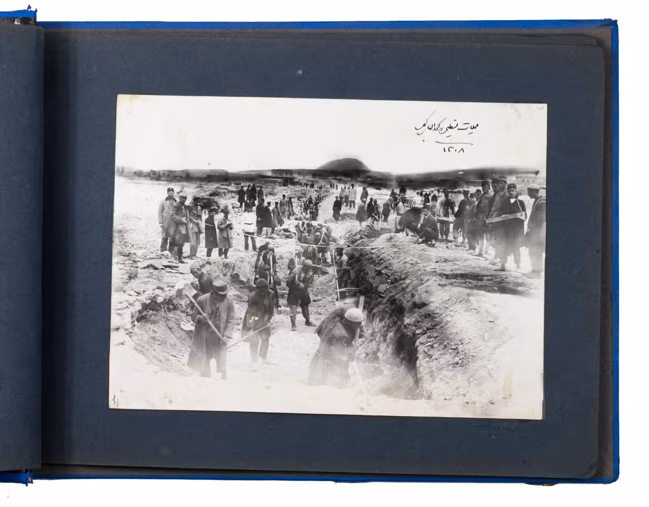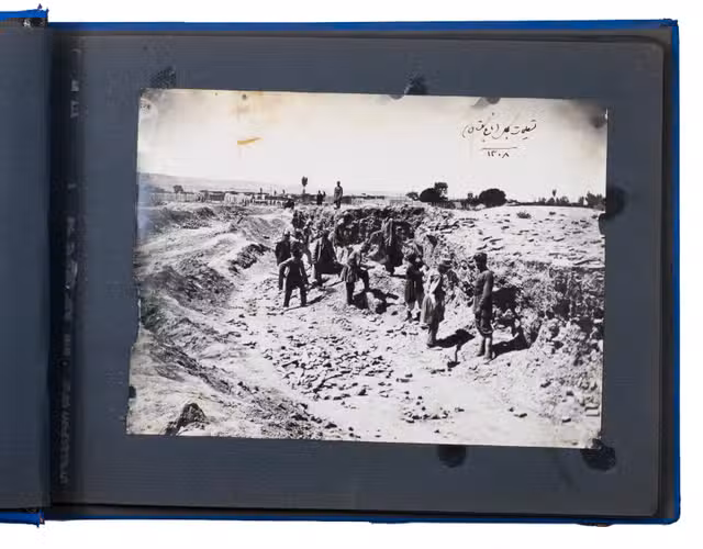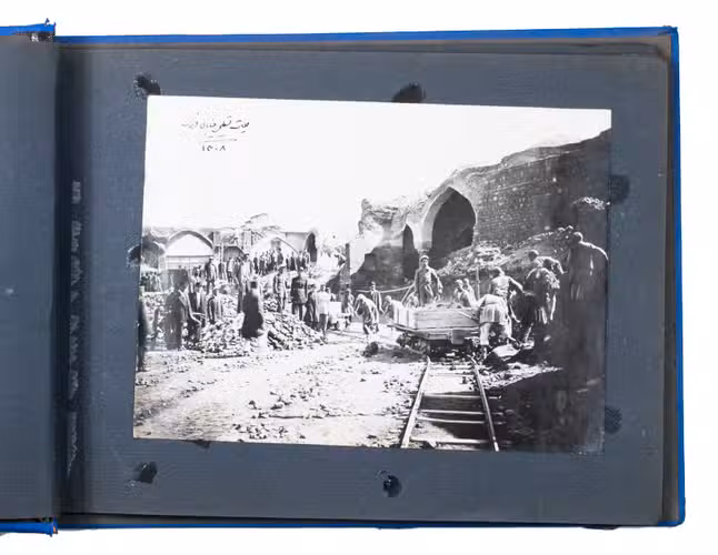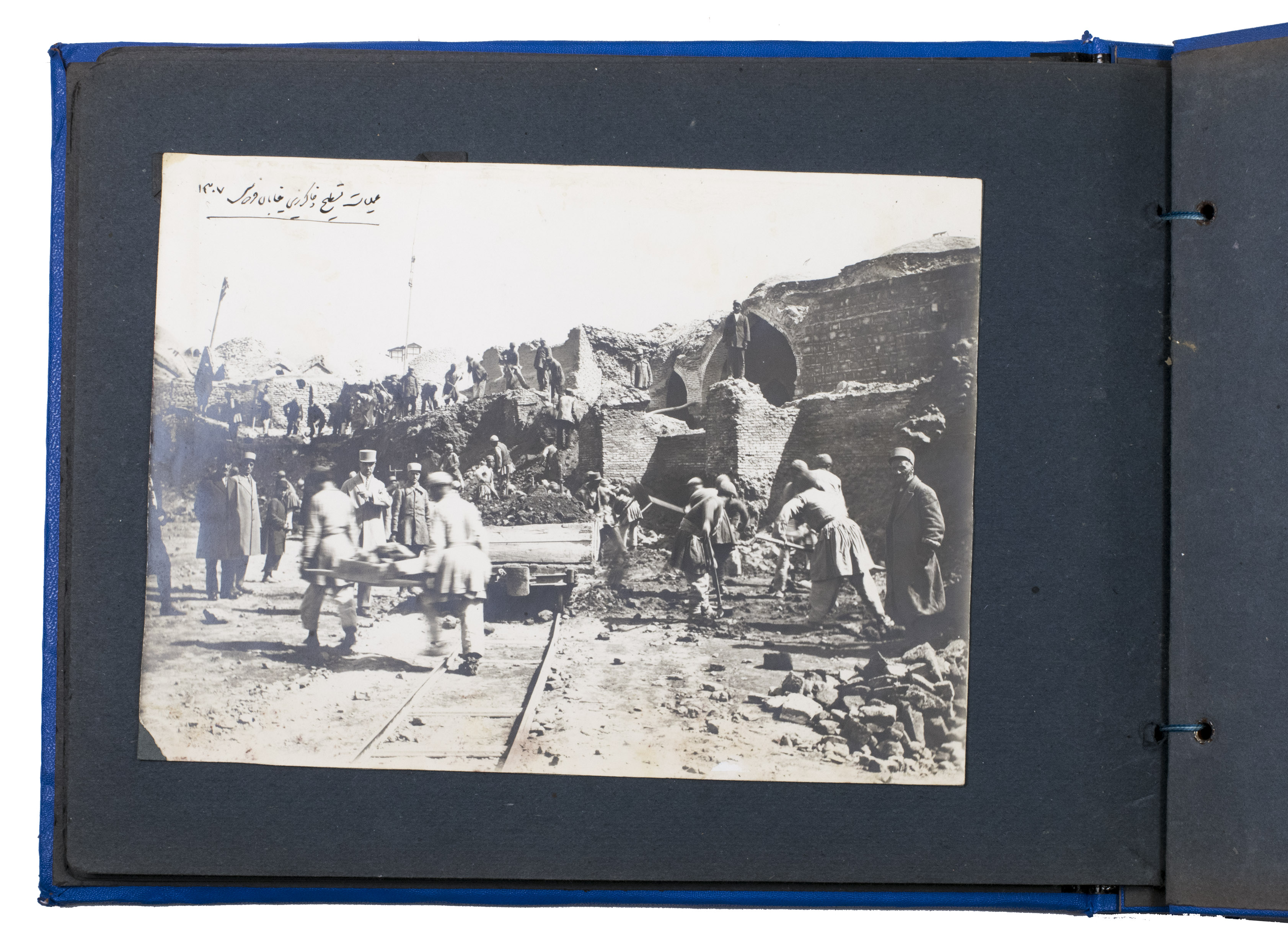 The album documents large-scale engineering works and urban modernisation in Iran during the early years of the Pahlavi dynasty (1925-1941) under Reza Shah Pahlavi (1878-1944). In this period, cities such as Tabriz underwent significant restructuring and infrastructural development as part of broader state-led reforms.