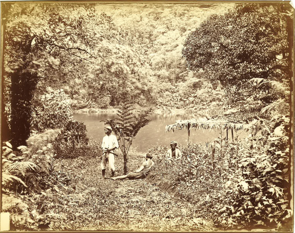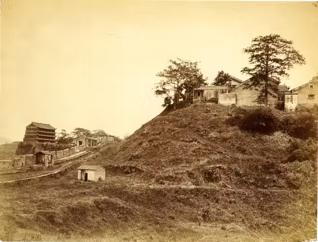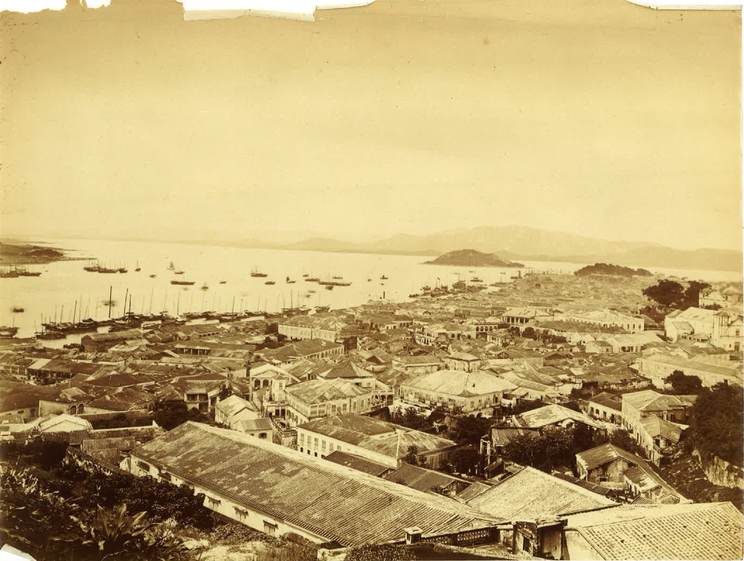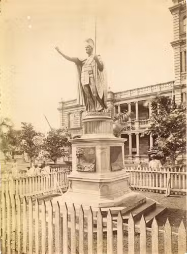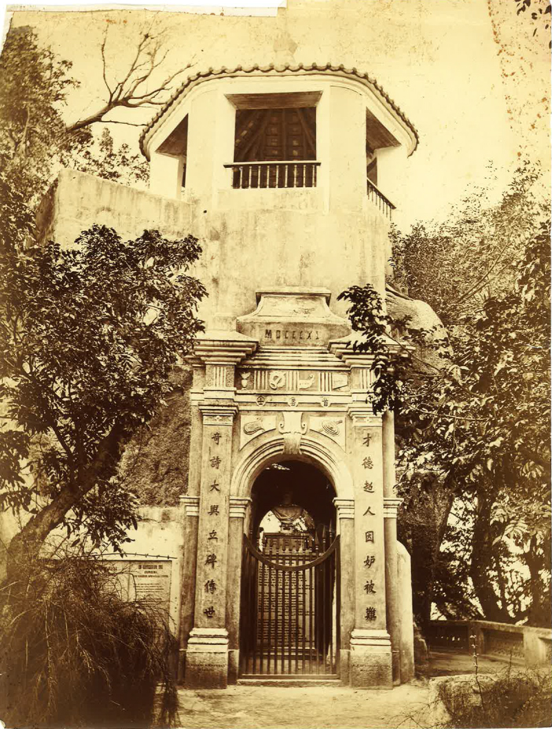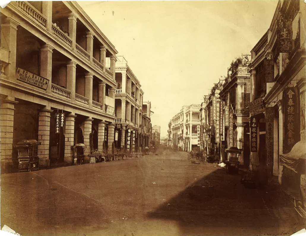 Collection of 12 vintage photographs from the late 19th century showing China, Indonesia, the Hawaiian Islands, California and Egypt. Of the 4 photographs of China, 2 show Hong Kong, including one, possibly by the famous Chinese photographer Lai Fong (ca. 1839-1890), showing Queen's Road Central. The two rarest photographs show several of the 7500 imperial examination cubicles in Canton (Guangzhou), while a photograph by A Chan (Ya Zhen) shows the famous five-story pagoda on Kun Yam Hill in 1870. The Indonesian island Java can be seen on 3 photographs, including one of lake Telaga Warna by the British firm Woodbury & Page, based in Batavia (Jakarta). Taken further to the west, were 3 photographs of Hawaii, probably all taken in or near Honolulu. A rare undated photograph of the statue of King Kamehameha was taken probably right after the unveiling ceremony in 1883, as it shows a small wooden fence around the statue which can be seen in an illustration in The Graphic (28 April 1883) but is absent from all later images. Of the 2 final images, one by Isaiah West Taber (1830-1912) shows Midway Point in Monterey, California and the other, by Hippolyte Arnoux (fl. 1860-1890), a group of Arabs and camels waiting for the ferry near El Qantara in Egypt.