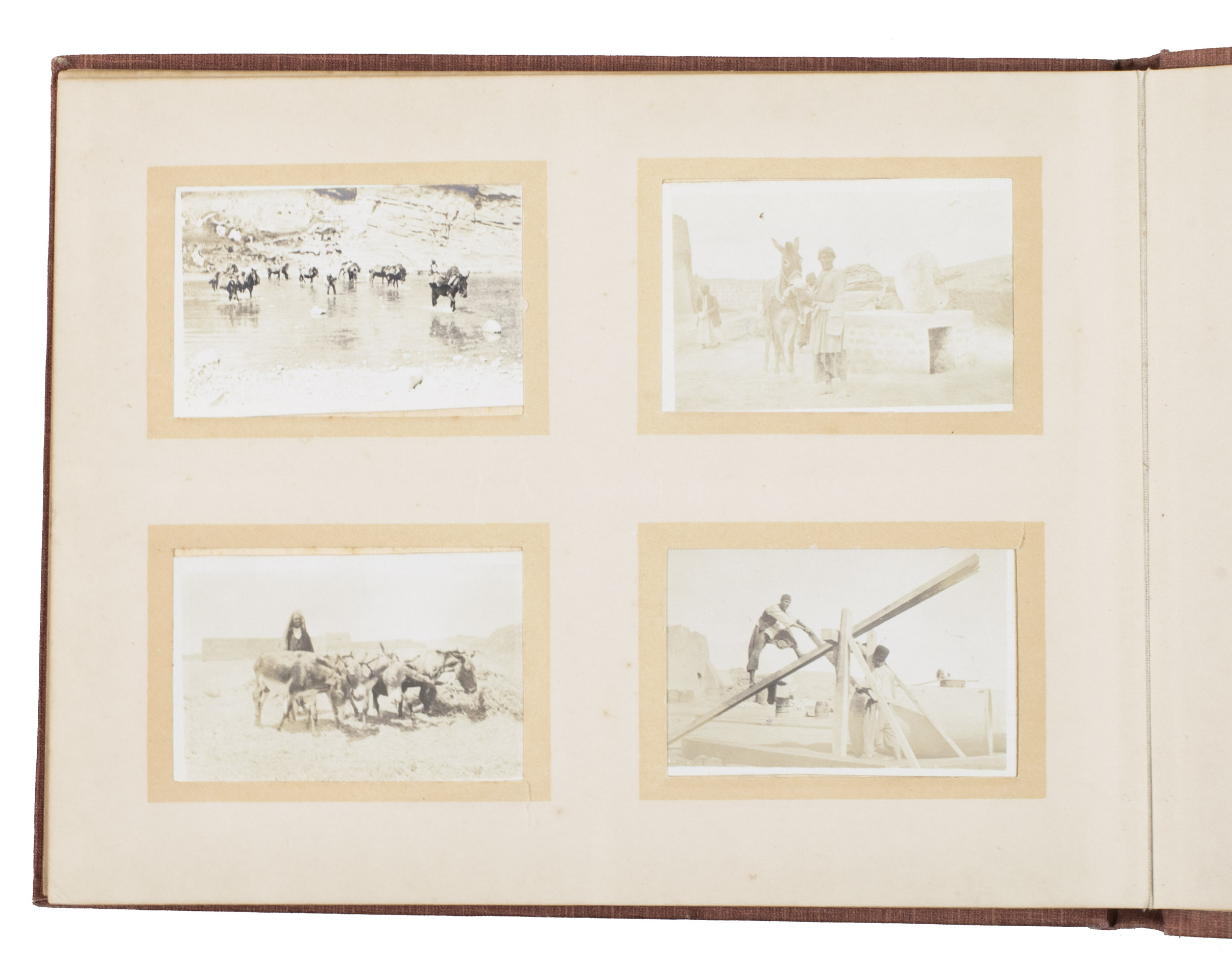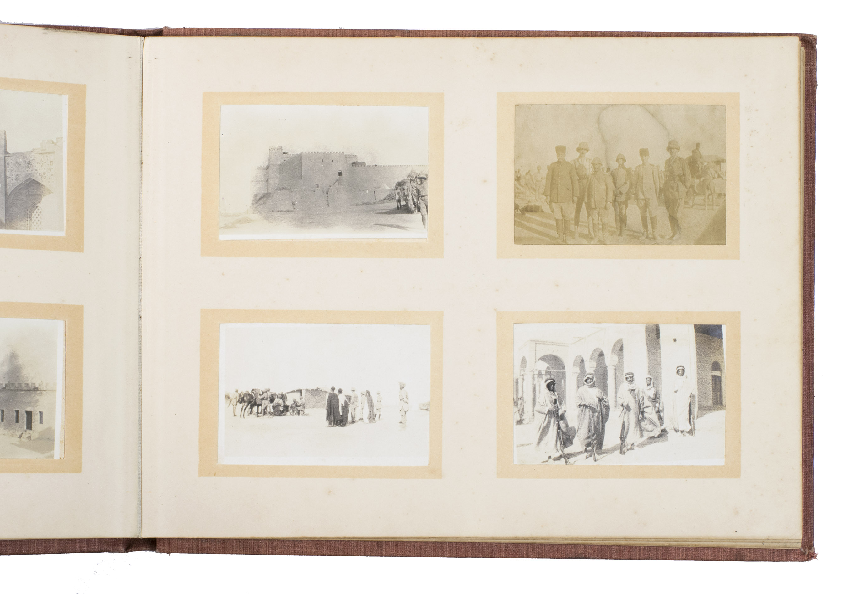 [Iran and Iraq, ca. 1917-1918]. 2 volumes. Oblong 8vo (ca. 15.5 x 20 cm). With 191 (resp. 95 and 96) gelatin silver prints (all ca. 4 x 6 cm). Contemporary cloth, one album in in red and one in grey, with 'Kodak' lettered in gold on the front board, and a black classical meander border tooled near the foot. The albums are kept together by a black ribbon. [12]; [12] ll.
