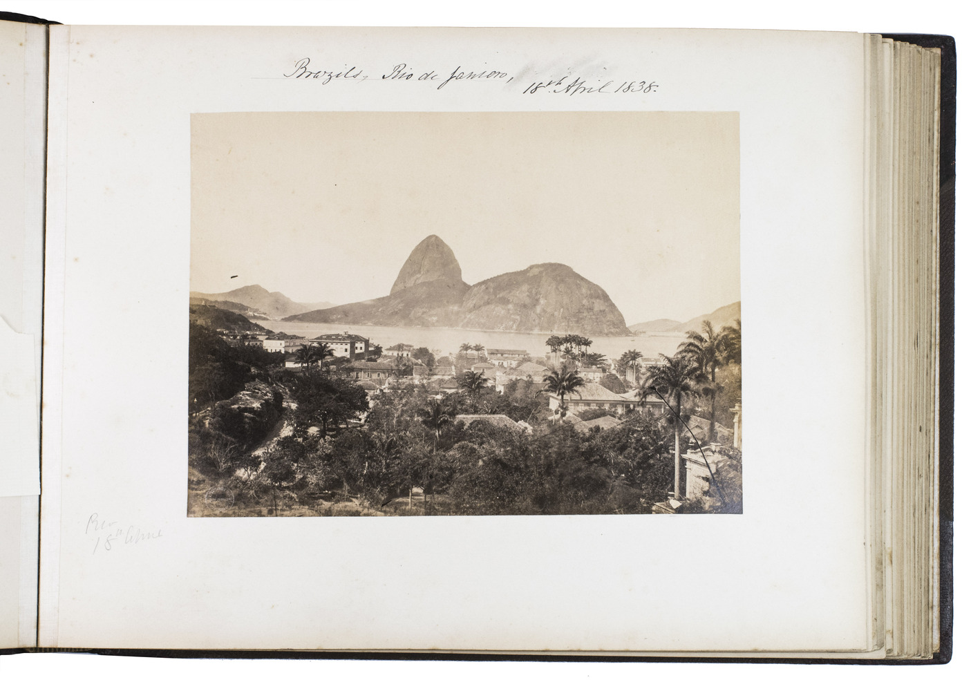 The plates in the album were taken from other works, such as Journal of a voyage to Brazil (1824) by Maria Graham, and A history of the Brazil (1821) by James Henderson. The photographs were taken in the 1880s, which means the album must have been compiled several decades after this particular voyage of the Calliope. However, as some of the annotations mention that a location looked different on the plate than when the Calliope arrived, the album must have been compiled by a crew member.