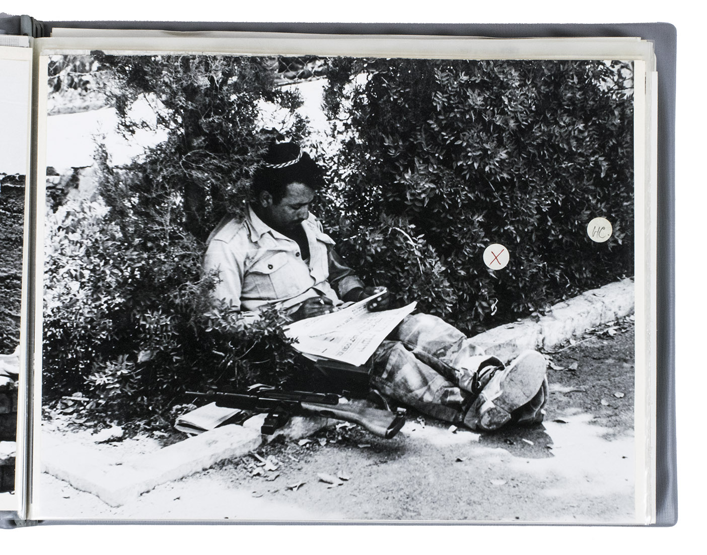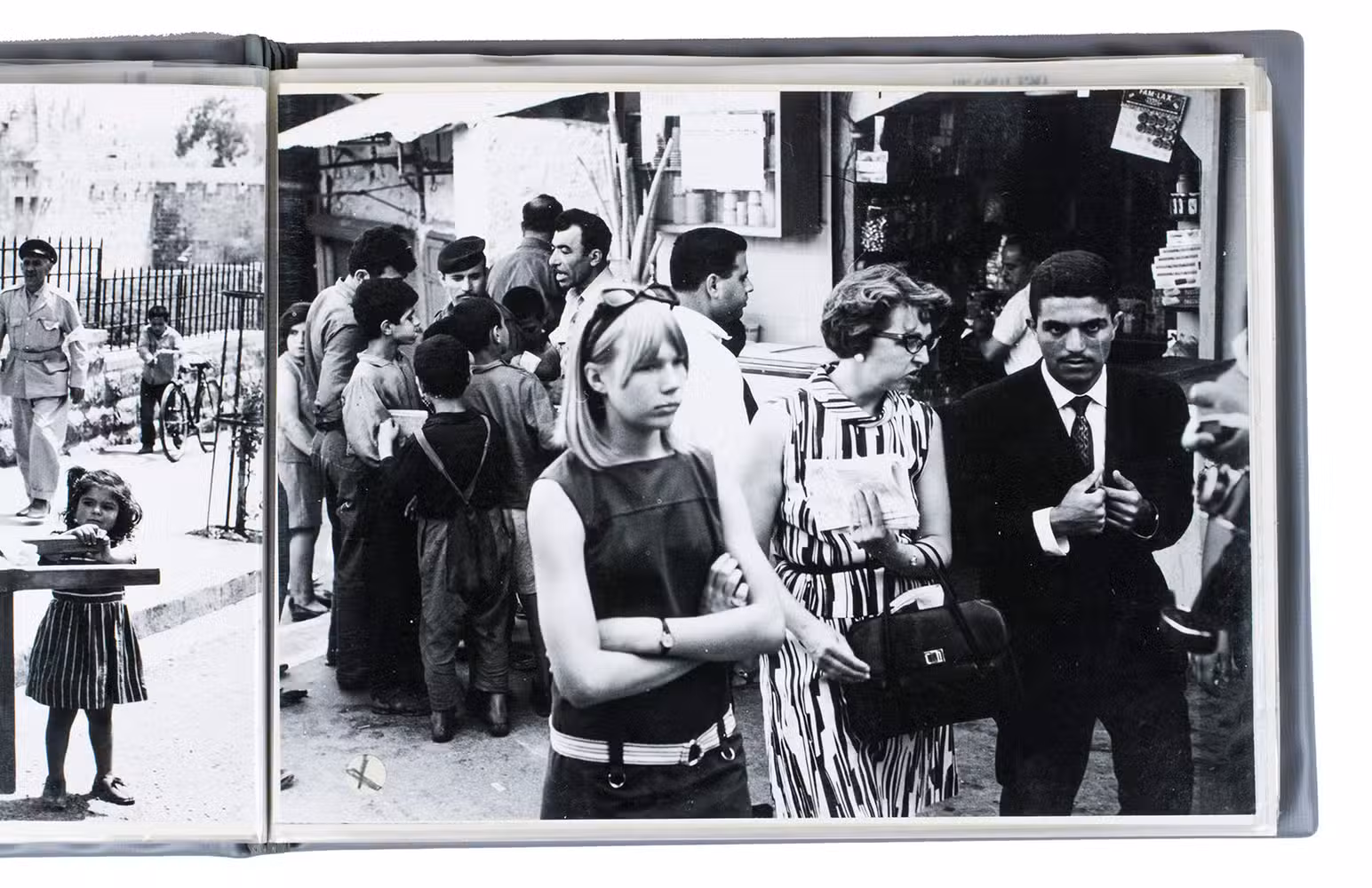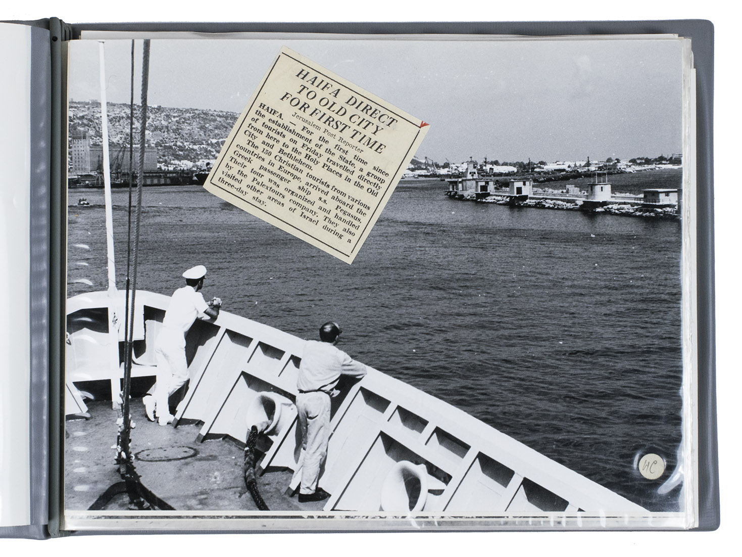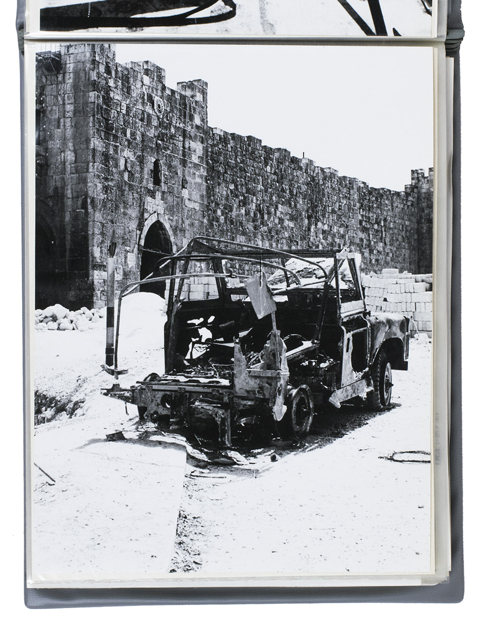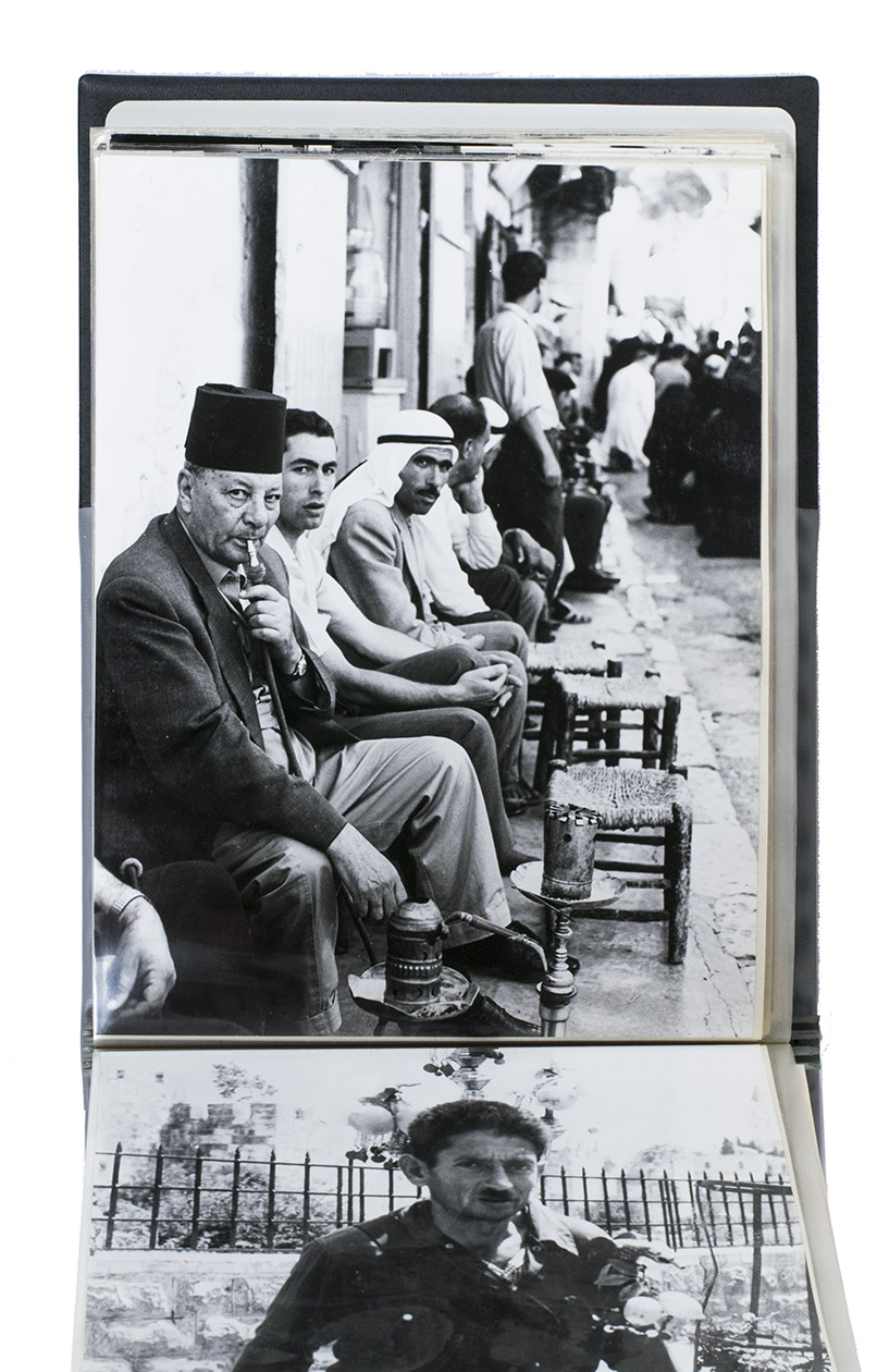 A rare collection of fascinating original photographs capturing the first Western tourists in Israel and Israeli captured territories approximately a month after the Six-Day War in 1967 by Dutch journalist and photographer Bianca Maria Dony. The 44 photos in the album show the passenger ship SS Pegasus, soldiers, local people in the streets of Jerusalem and other cities, an early war monument, checkpoints, destroyed military vehicles and other remnants of the war. The album is from the archive of the photographer; some of these photographs were sold to and published in national (Dutch) and international newspapers and magazines, while others remained unpublished.