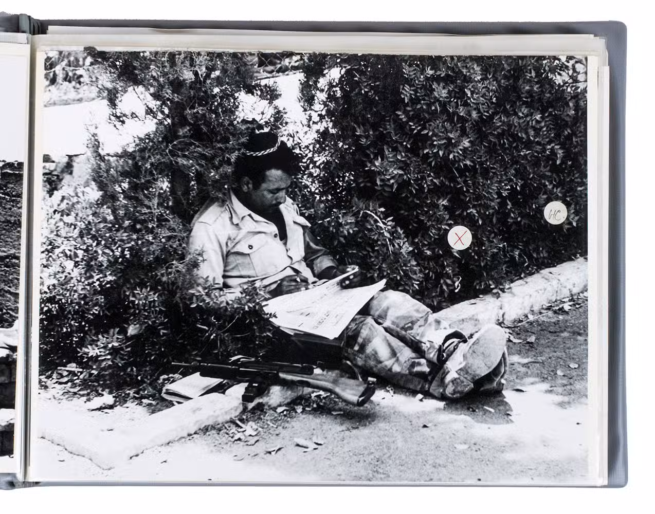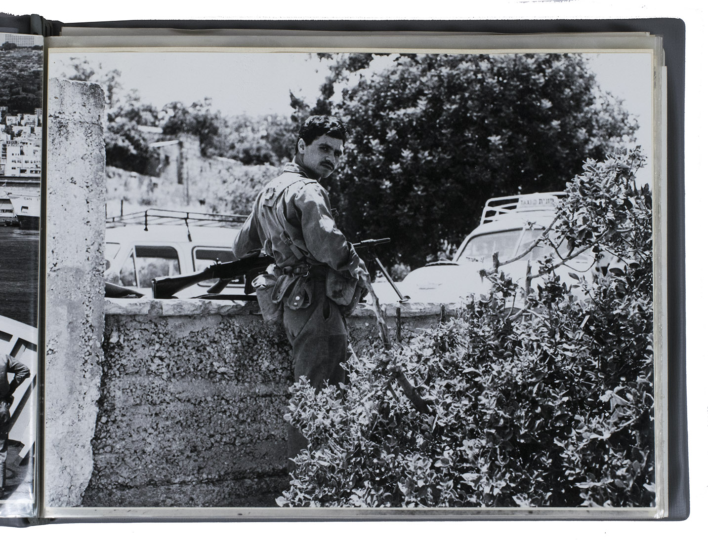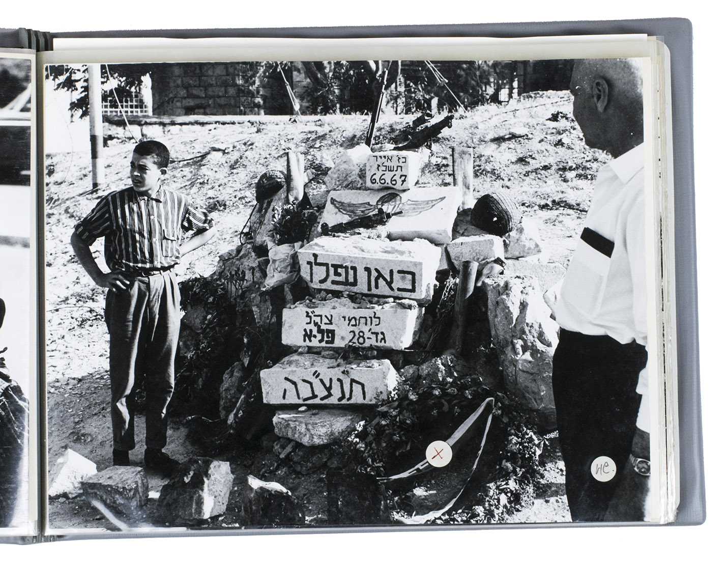 Israel, 1967. Oblong album (ca. 20 x 26 cm); photographs in slightly varying sizes (ca. 18.5 x 24 cm). 44 silver gelatin photographs (including 2 duplicates and 1 other loosely inserted). Grey faux-leather photo album with a small white label on the front board: "42 x Israël 1967 23-24-25 Juli". 44 photographs in an album with 30 clear plastic inserts.