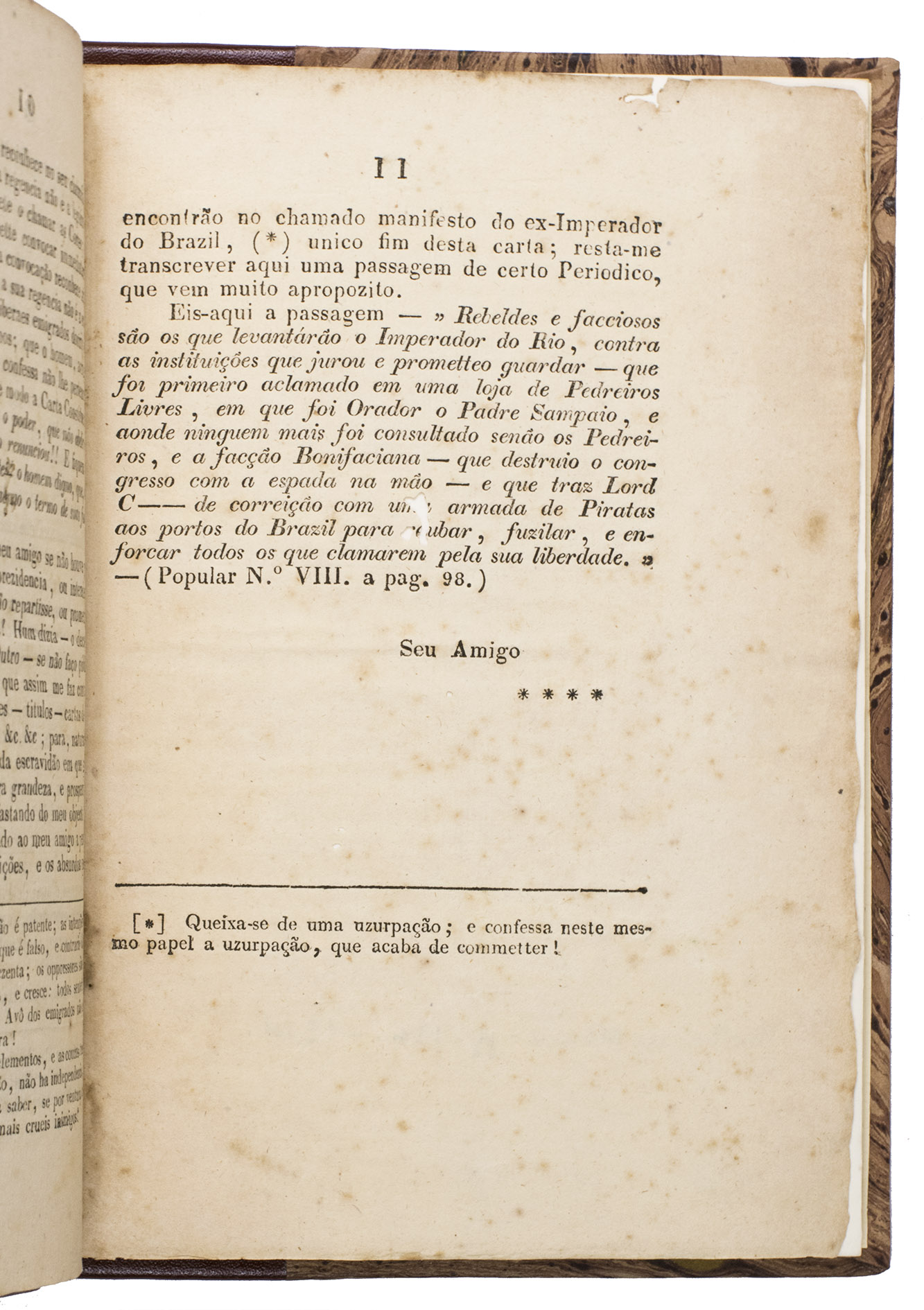 A fierce attack on the recently resigned Emperor of Brazil, Dom Pedro I