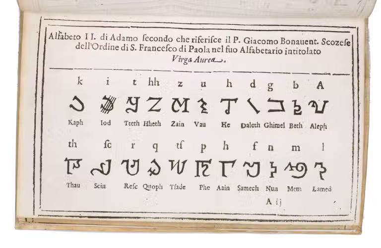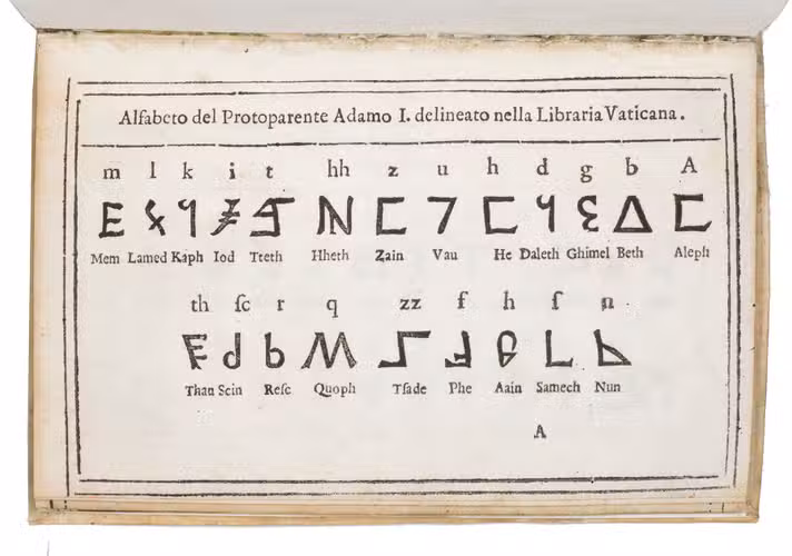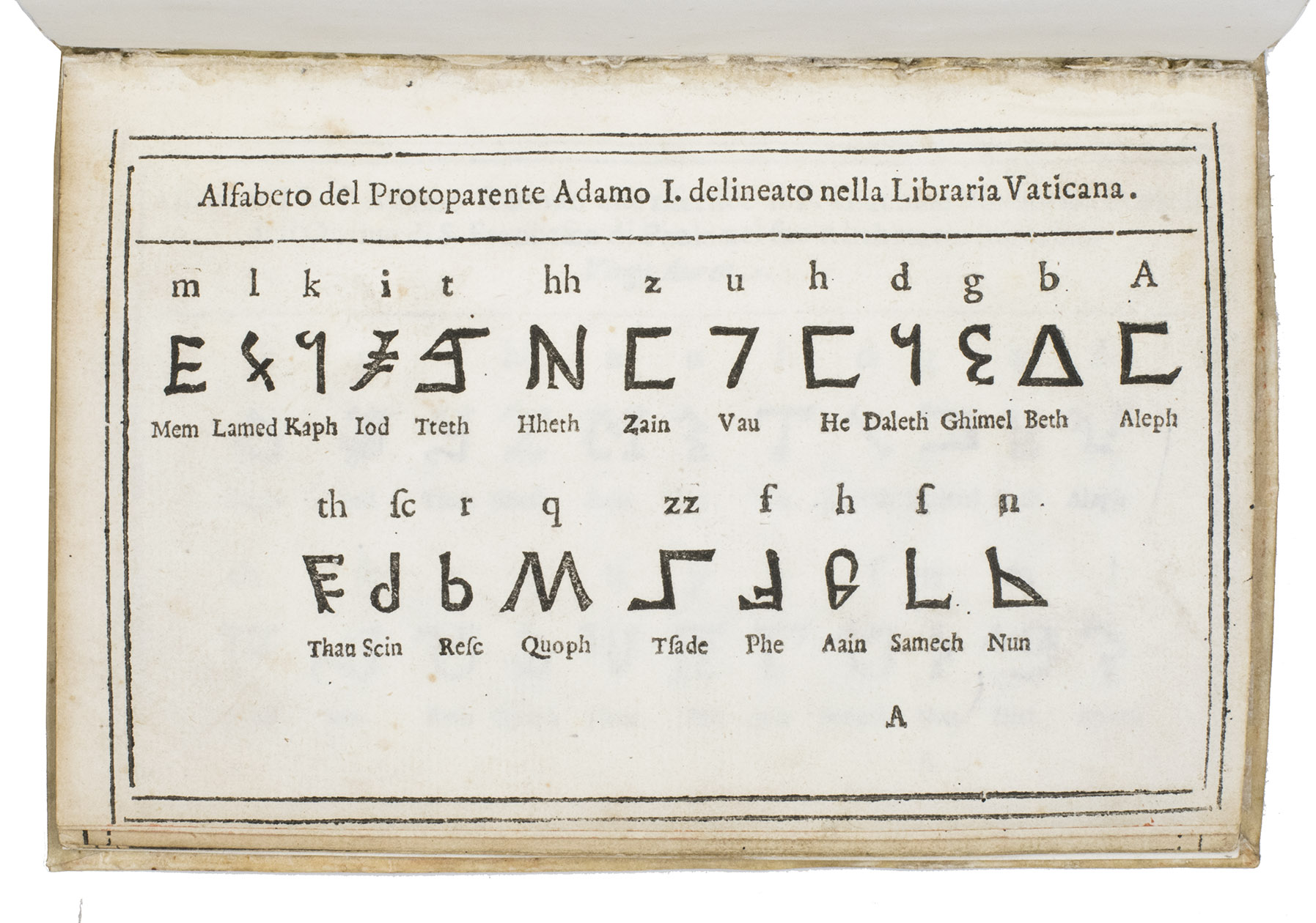 A1: Alfabeto del protoparente Adamo I. delineato nella libraria Vaticana. [woodcut characters]