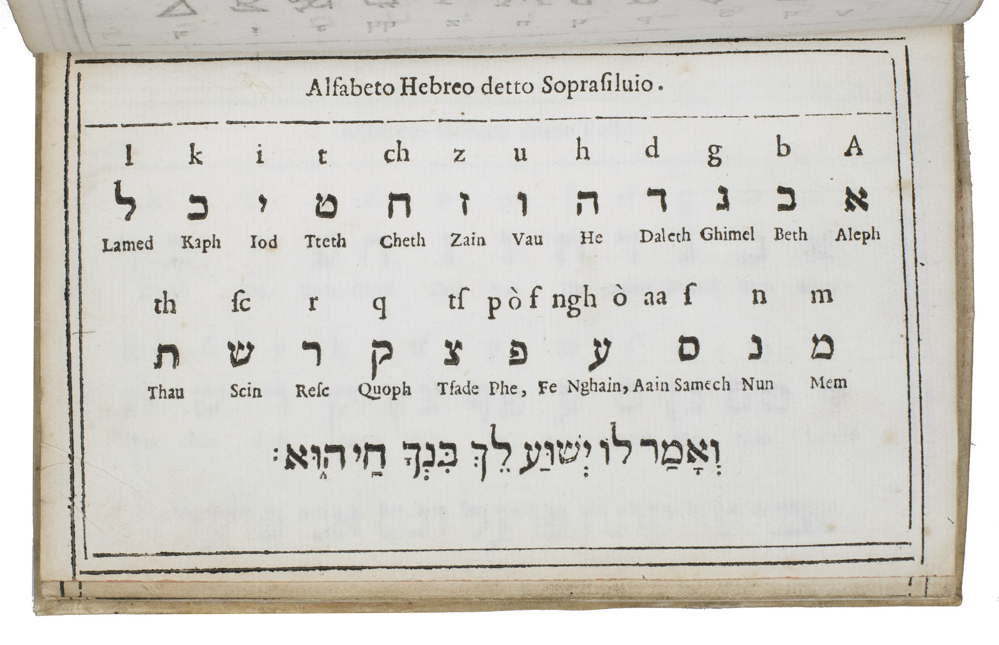 A4: Alfabeto Hebreo detto Soprasilvio. [meruba (square) Hebrew type]