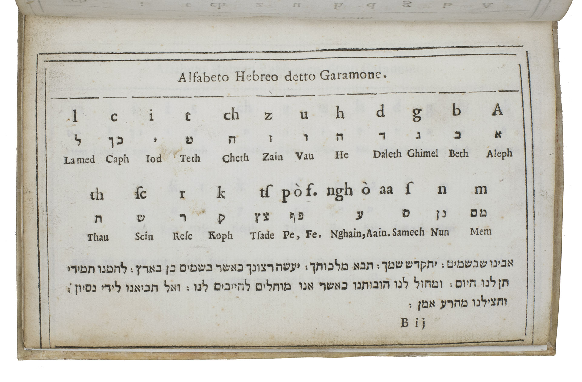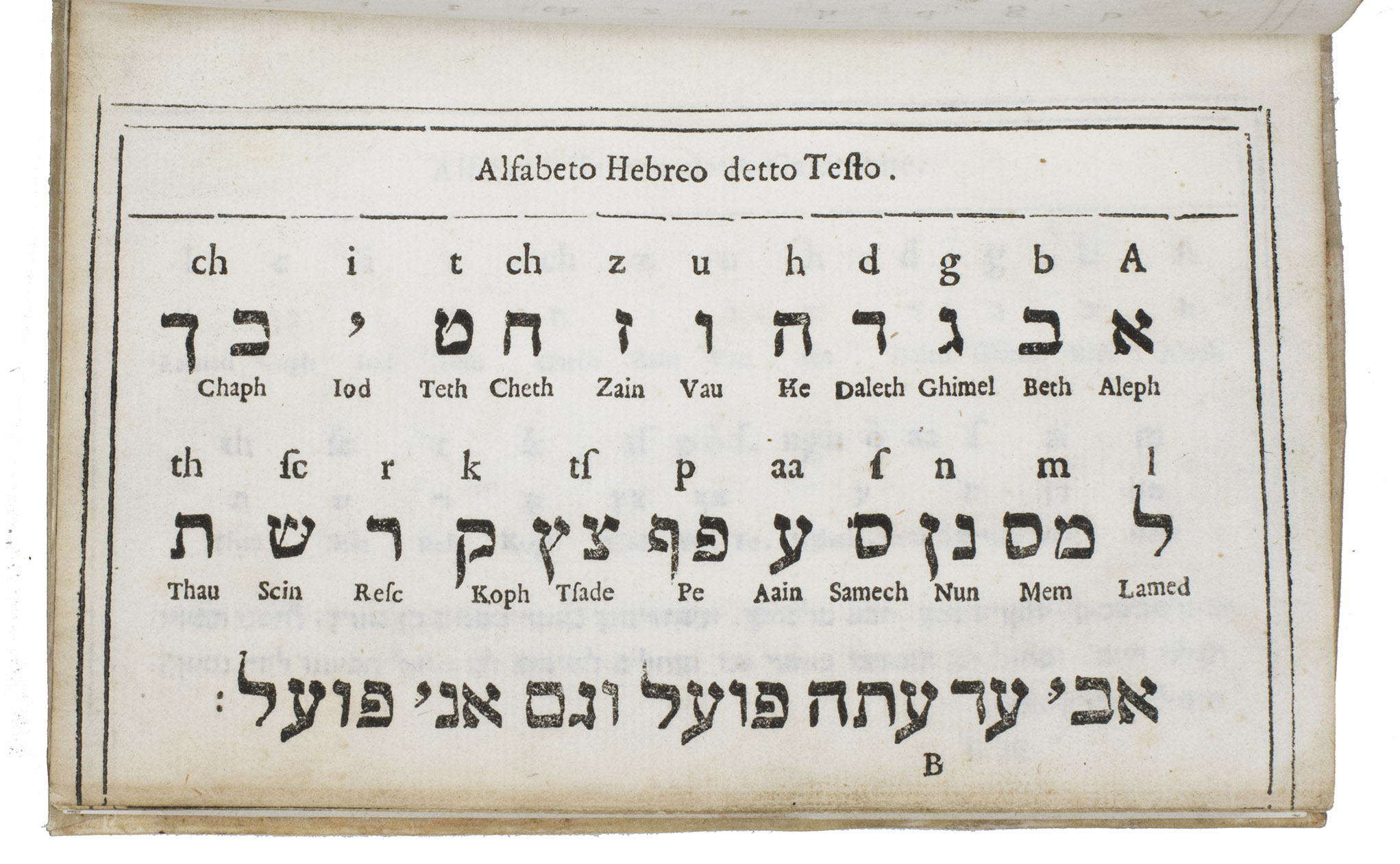 B3: Alfabeto Hebreo rabbinico detto Garamone. [rabbinical (semi-cursive) Hebrew type]