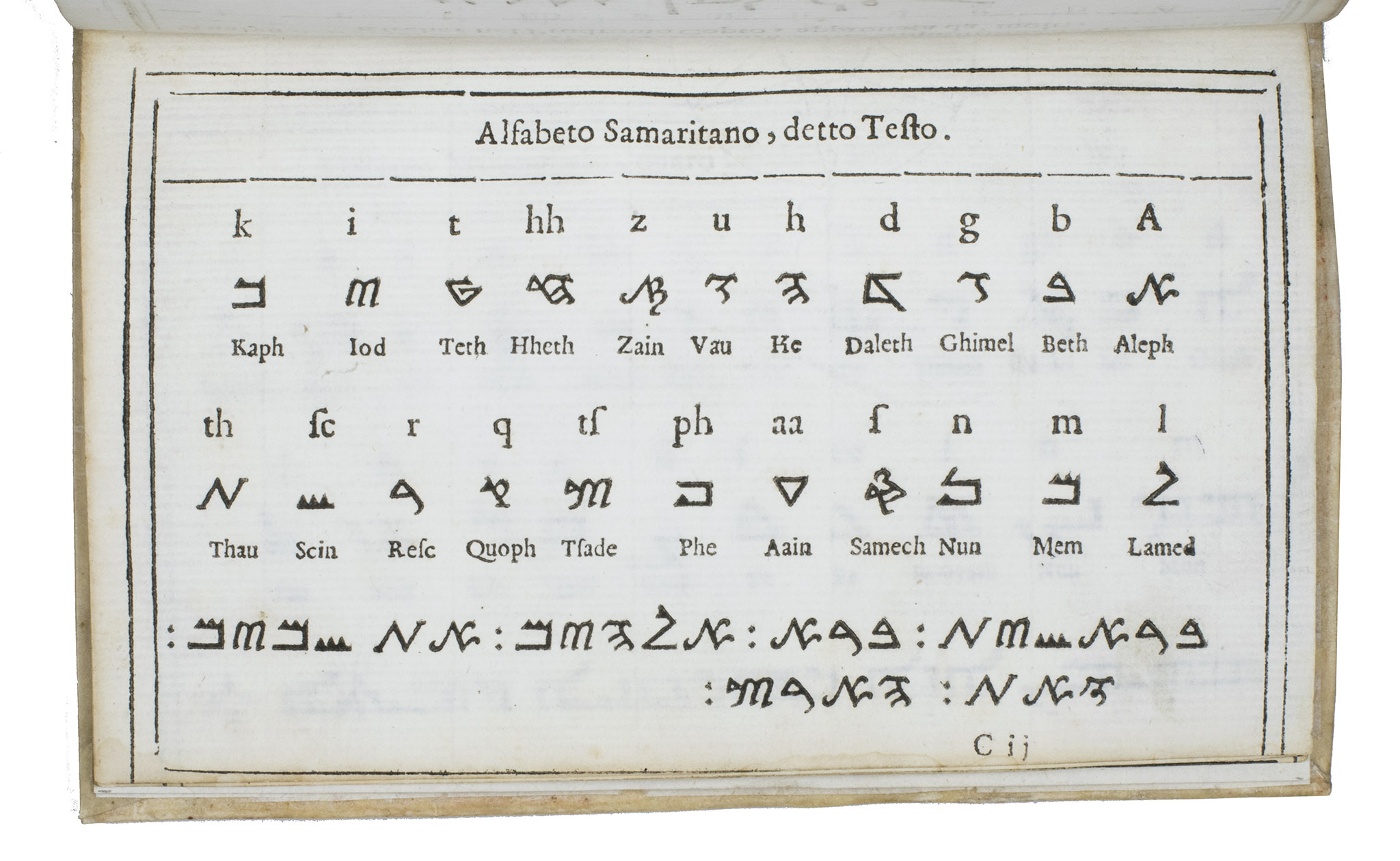 C2: Alfabeto Samaritano, detto Testo. [majuscule Samaritan type (1636)]
