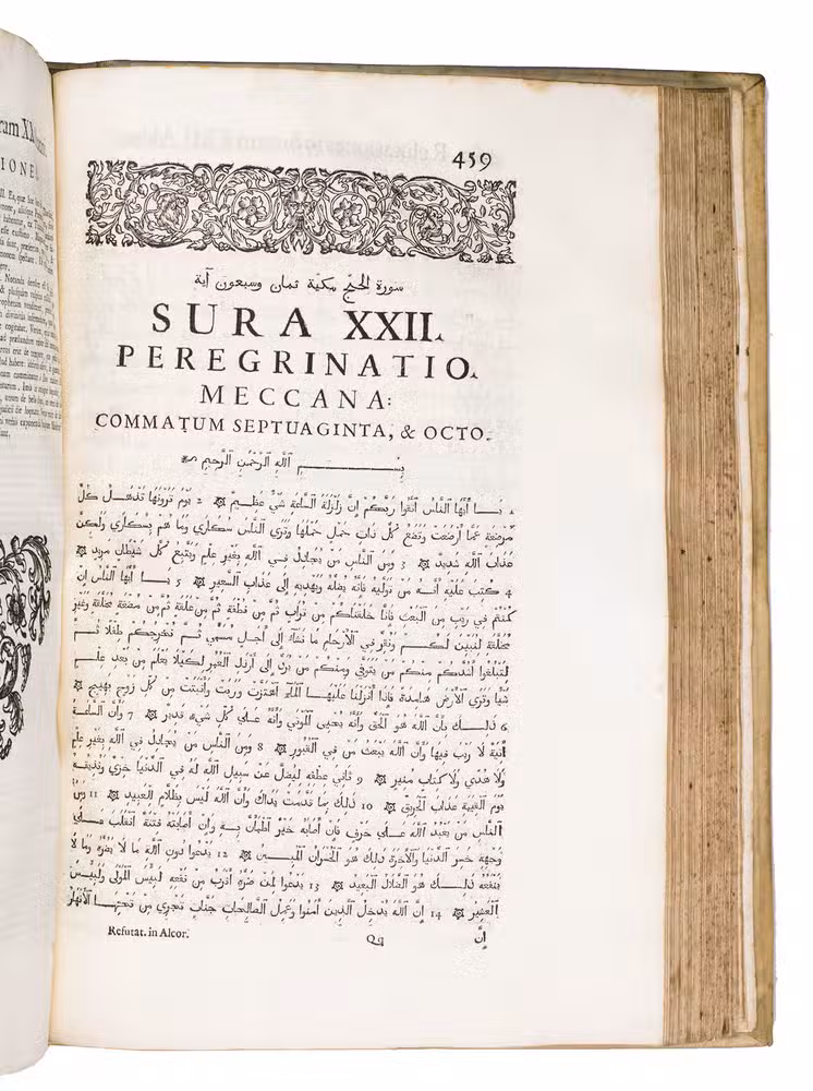 First accurate printed Quran (both the Arabic text and the Latin translation), with extensive valuable notes