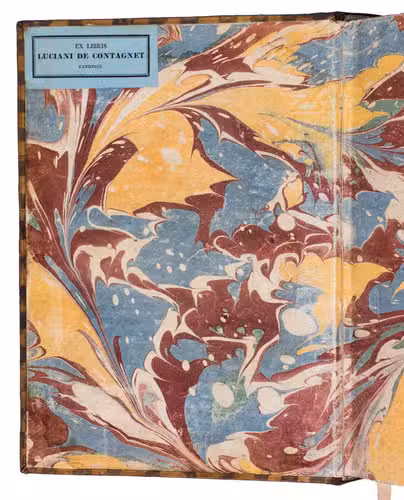 With the blue bookplate of Luciani de Contagnet on the front pastedown, a manuscript inscription in brown ink on the verso of the first free end leaf, with the author's name added in manuscript to the title-page, a manuscript inscription on the verso of the title-page in black ink, and a 19th-century manuscript sales note on the recto of the last free end leaf ("Vente du 14 Xbre [Octobre] 1843 ..."). The binding is slightly rubbed, occasionally lightly foxed and stained. Otherwise in very good condition. Bibl. Americana 1332; Beinecke 46; Chadenat 7153 (ed. of 1681); JCB II, 484; Sabin 72314; STCN 840124384 (11 copies); USTC 18/39432 (11 copies, incl. 9 also in STCN); cf. Tiele 926 (1662 ed.).